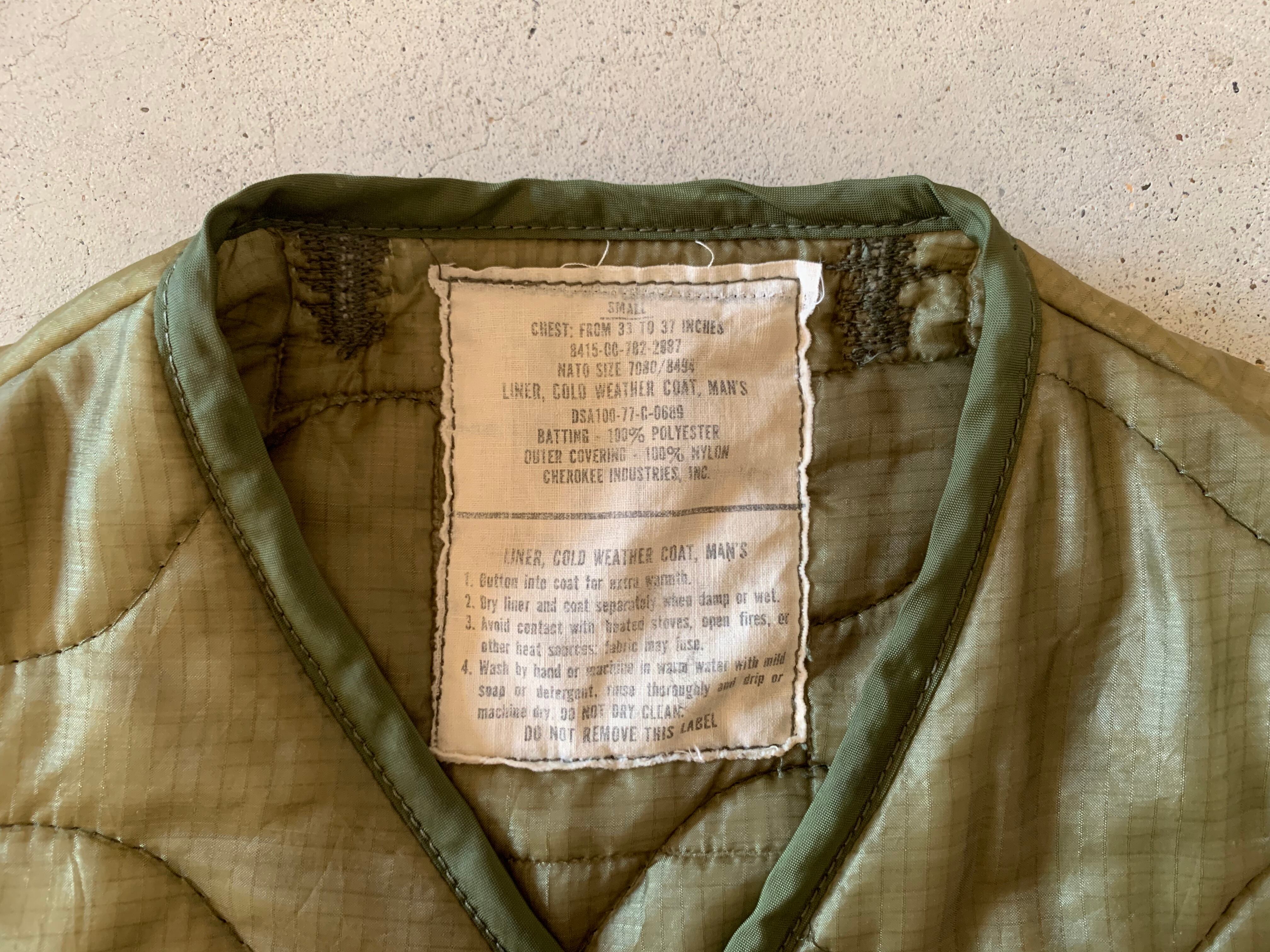 ボディーは米軍に1977年に納入された、ジャケットの中に取り付ける、キルティングライナー。