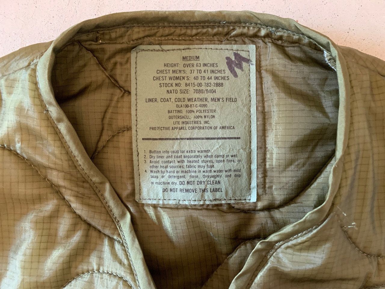 ボディーは米軍に1987年に納入された、ジャケットの中に取り付ける、キルティングライナー。