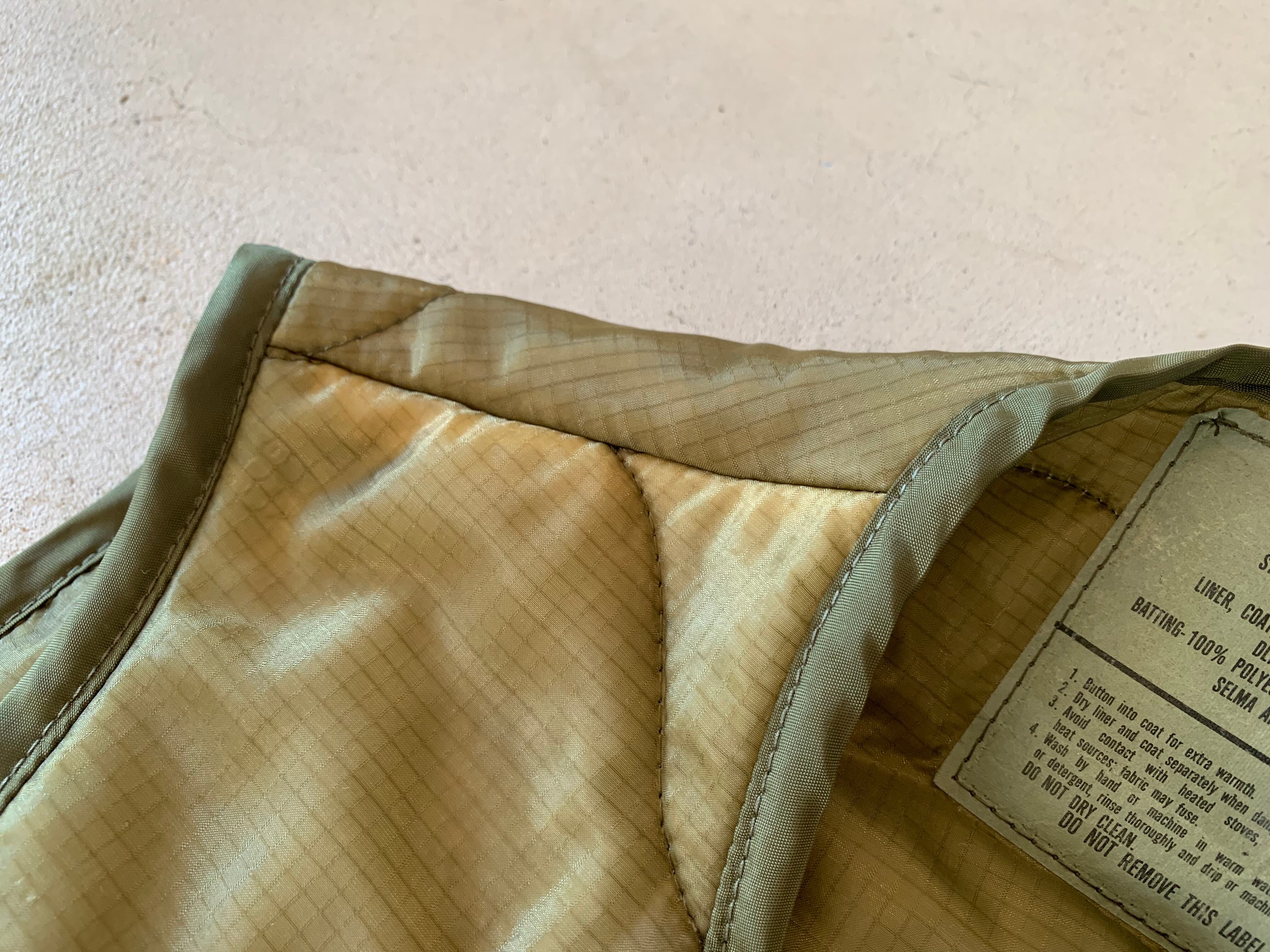 ボディーは米軍に1984年に納入された、ジャケットの中に取り付ける、キルティングライナー。