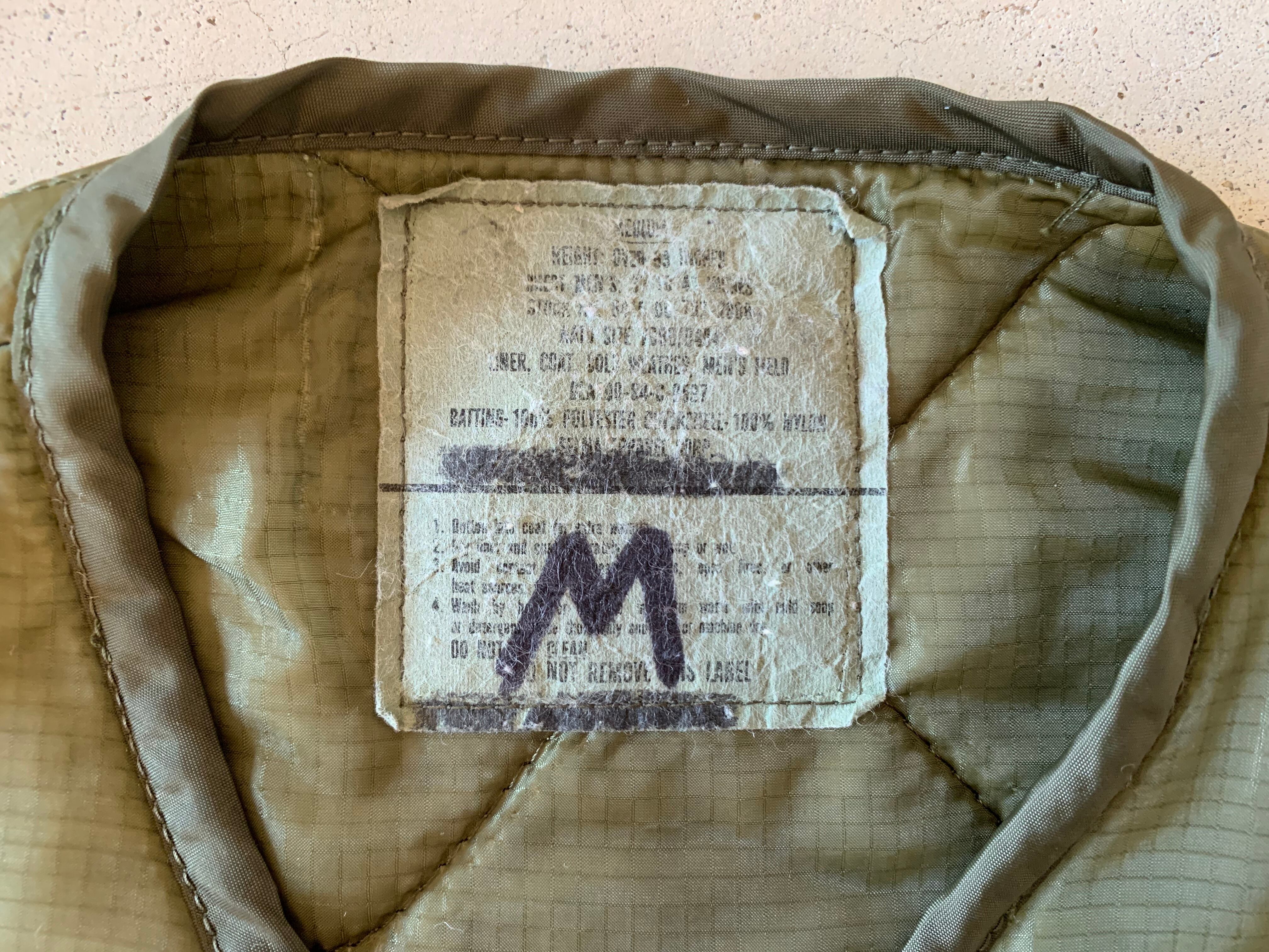 ボディーは米軍に1984年に納入された、ジャケットの中に取り付ける、キルティングライナー。