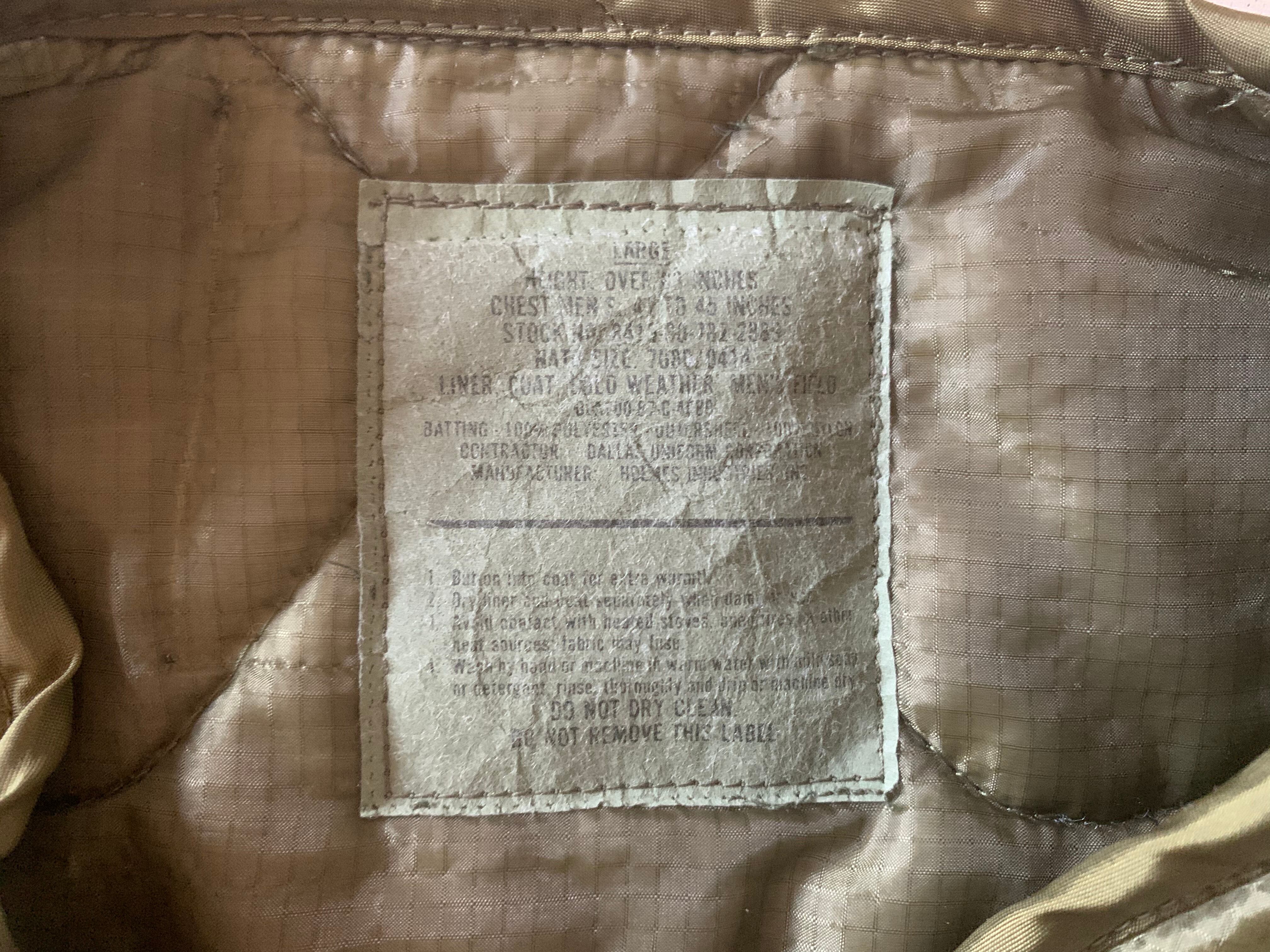 ボディーは米軍に1987年に納入された、ジャケットの中に取り付ける、キルティングライナー。