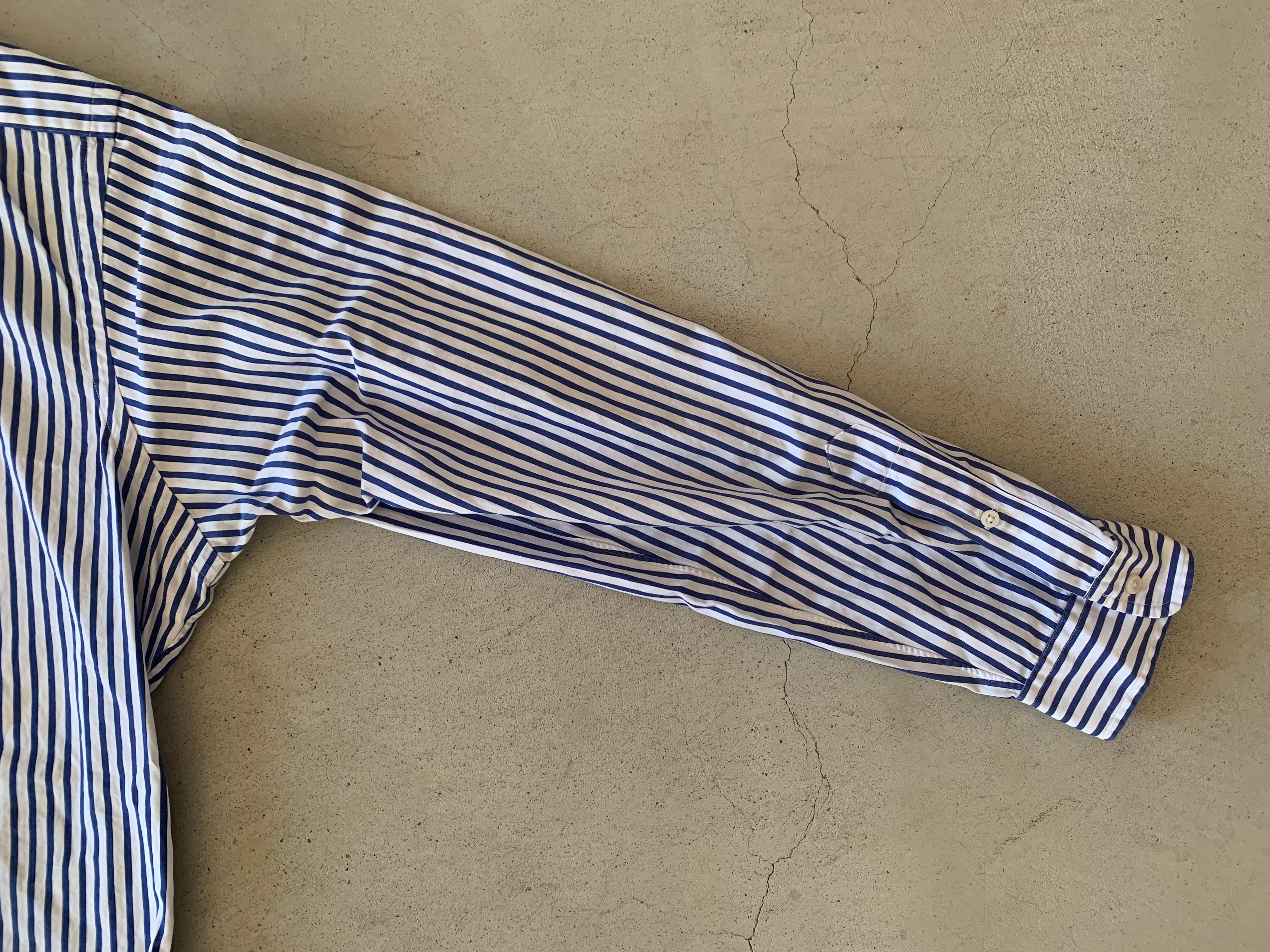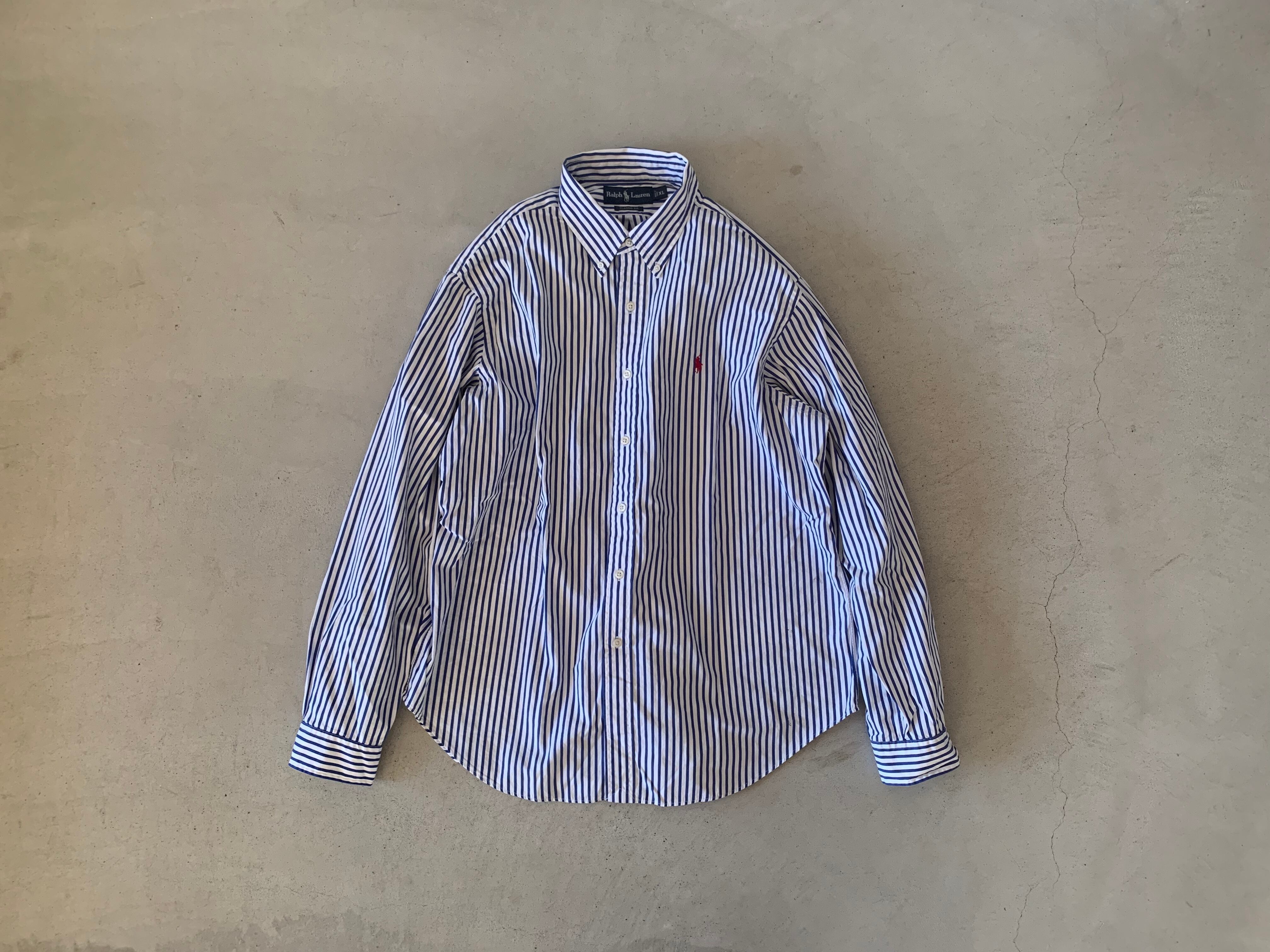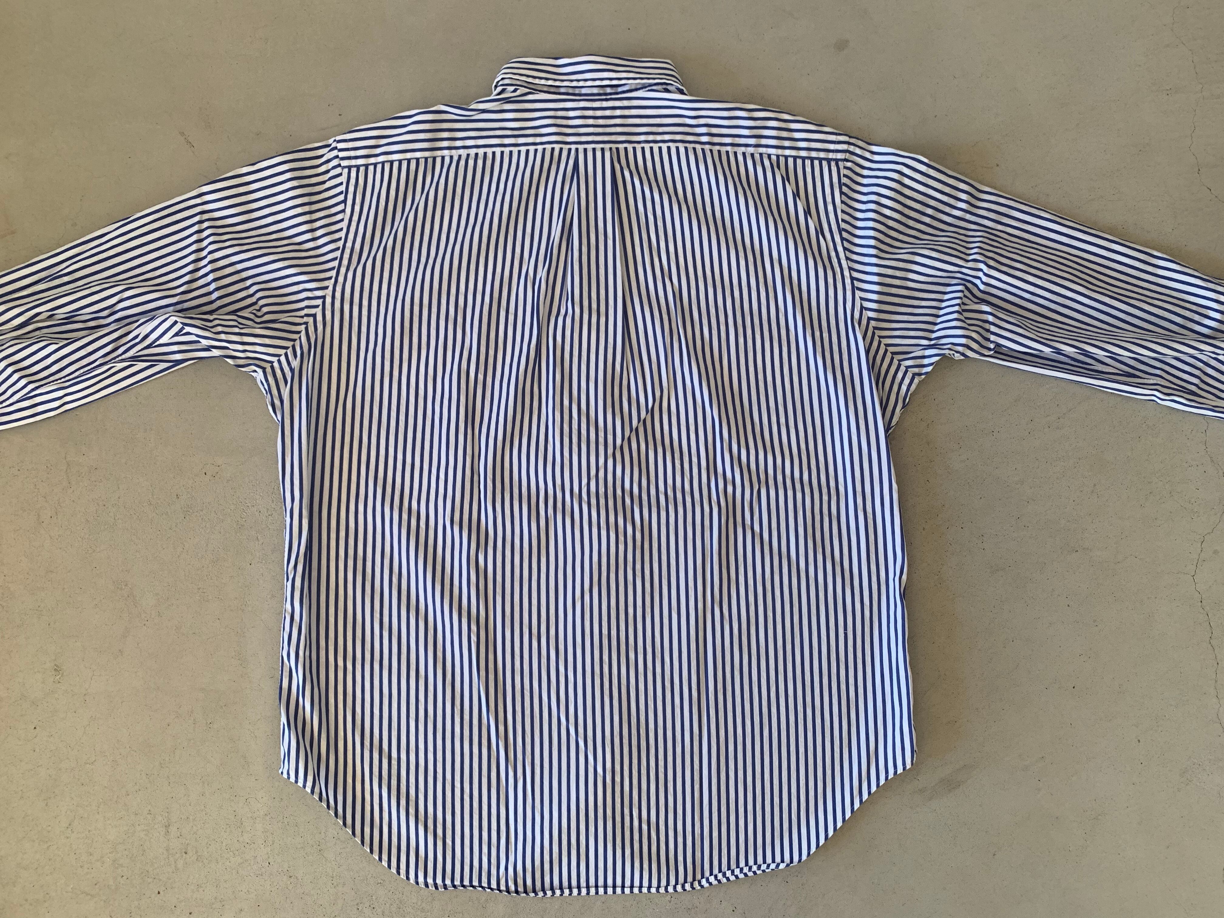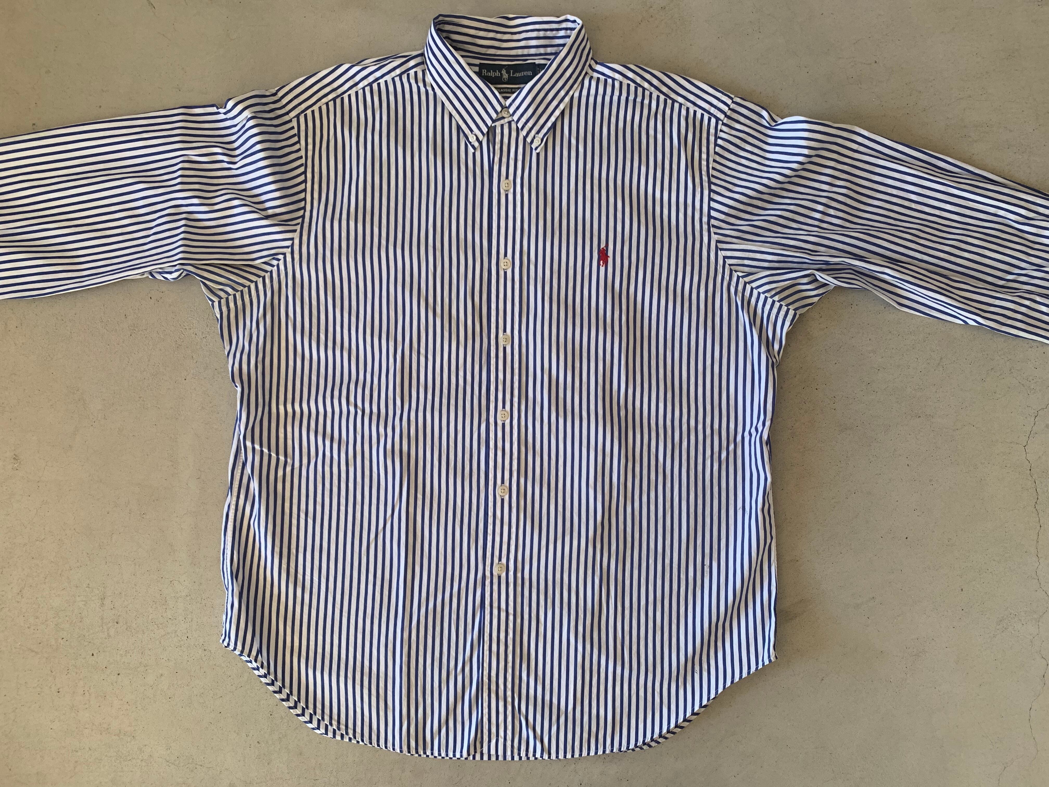 90〜00年代頃のオールドタグがつく、ラルフローレンのストライプシャツ。ラルフローレンのストライプシャツは古着屋でもいっっっぱいありますが、いざ、このピッチのストライプを探そうとすると、なかなか出てはきません!ましてやこの90年代から2014年頃まで使われていたオールドタグの物で状態の良い物となると、さらに出てきません。。。そんなシャツです。サイズが合われる方は是非!