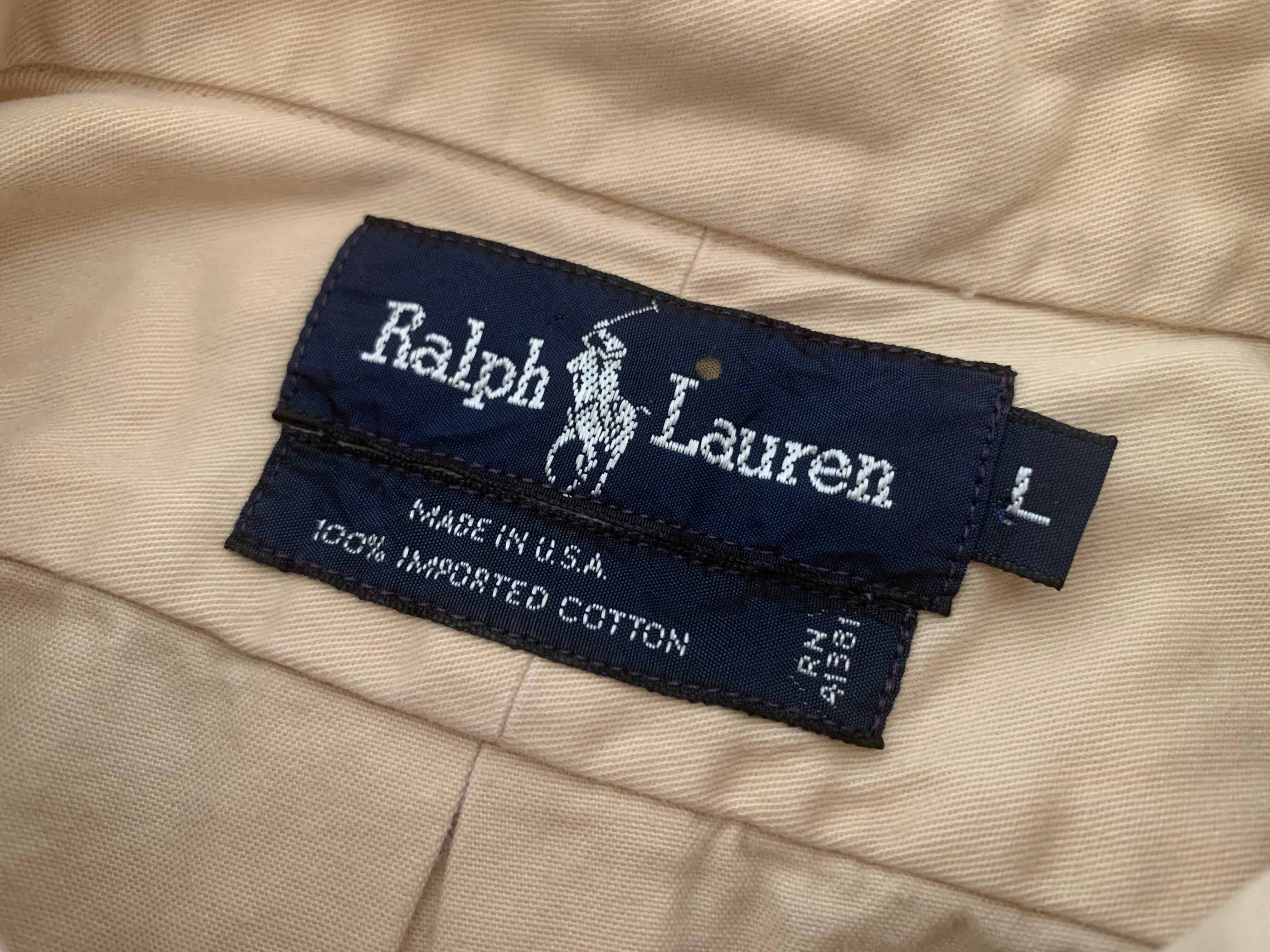 80年代、アメリカ製のラルフローレンのプレーンシャツ。袖口が少し黒ずんでいます。画像でご確認ください。