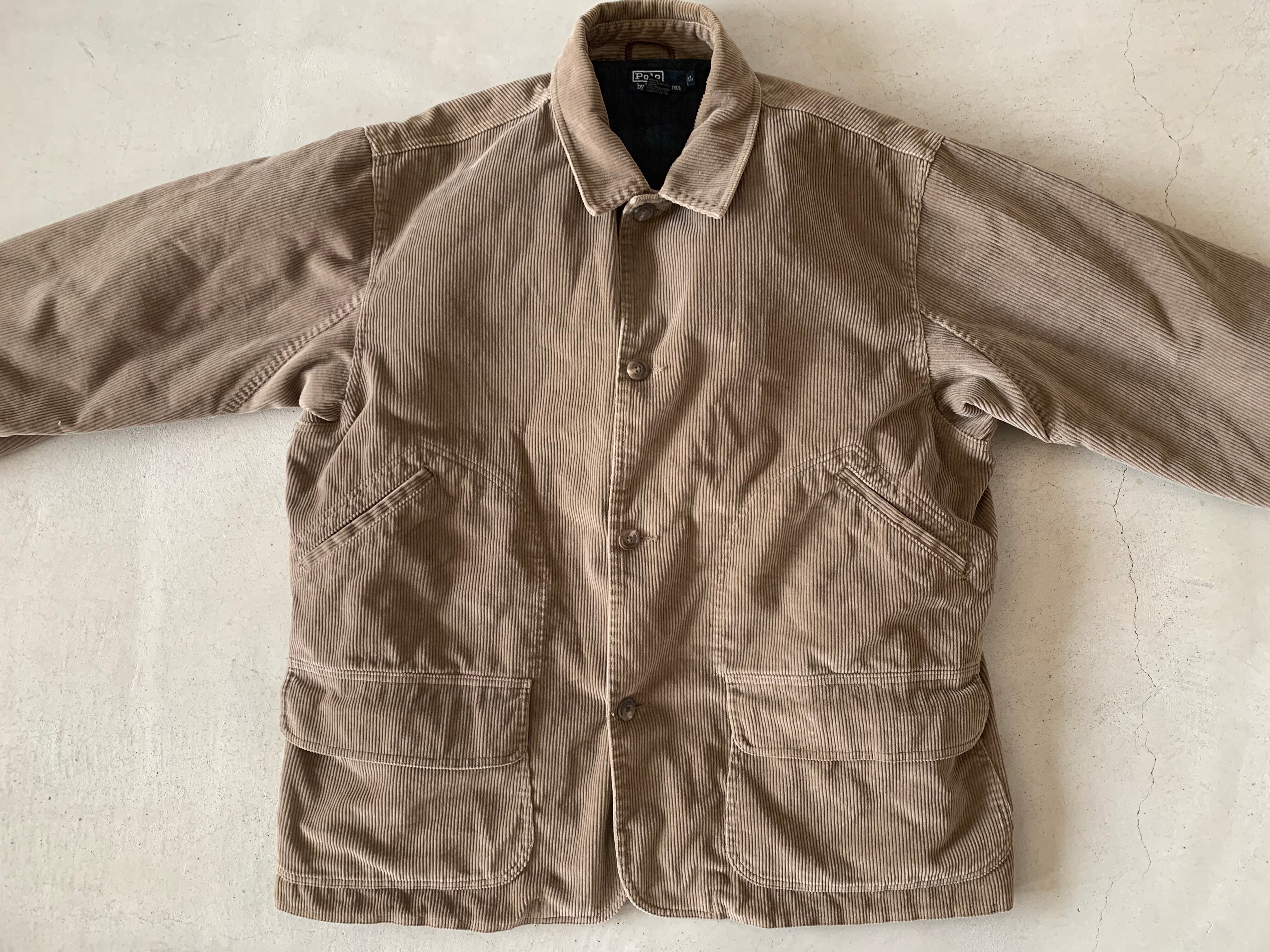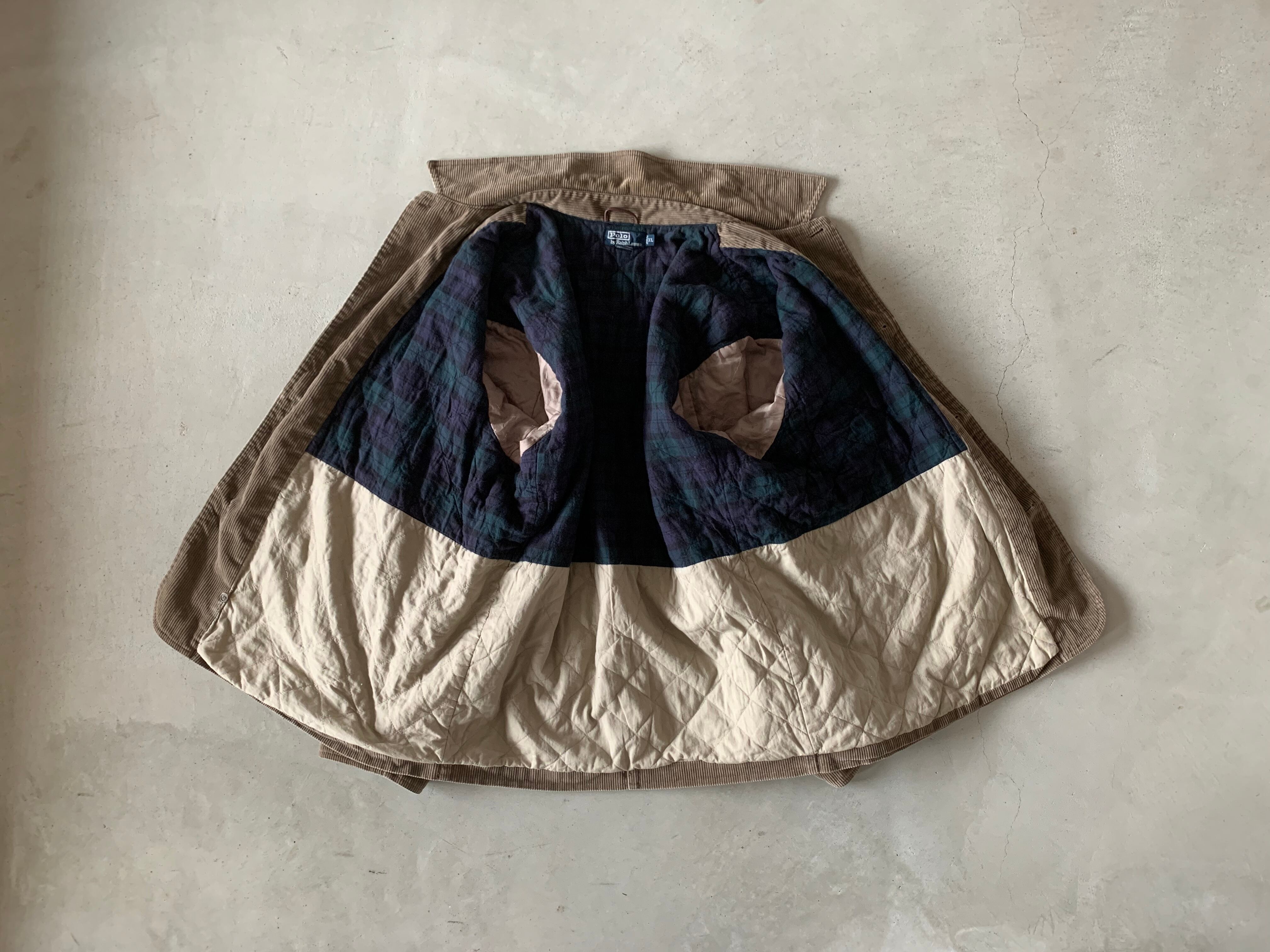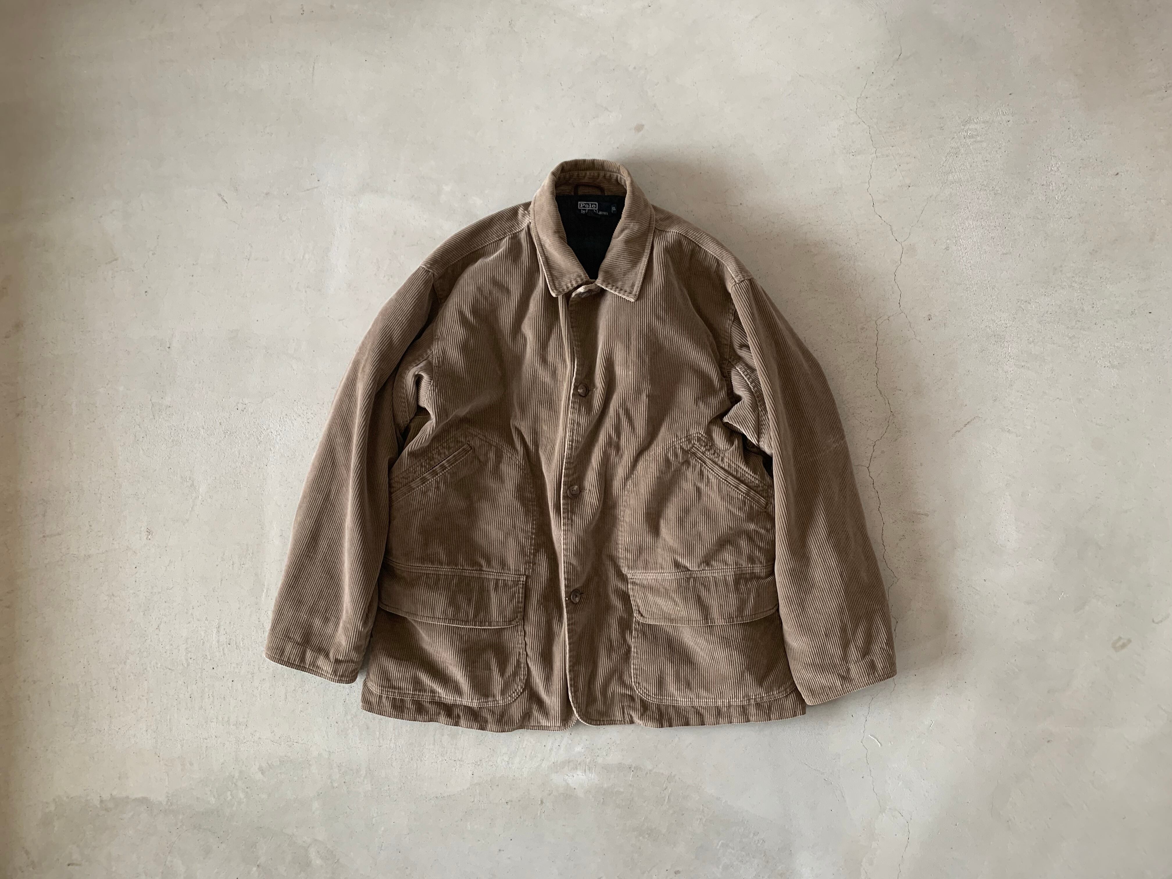 ラルフローレンのオールドタグがつく、コーデュロイ素材のハンティングジャケット。内側は中綿のキルティング仕様になっているので、防寒性も高いです。