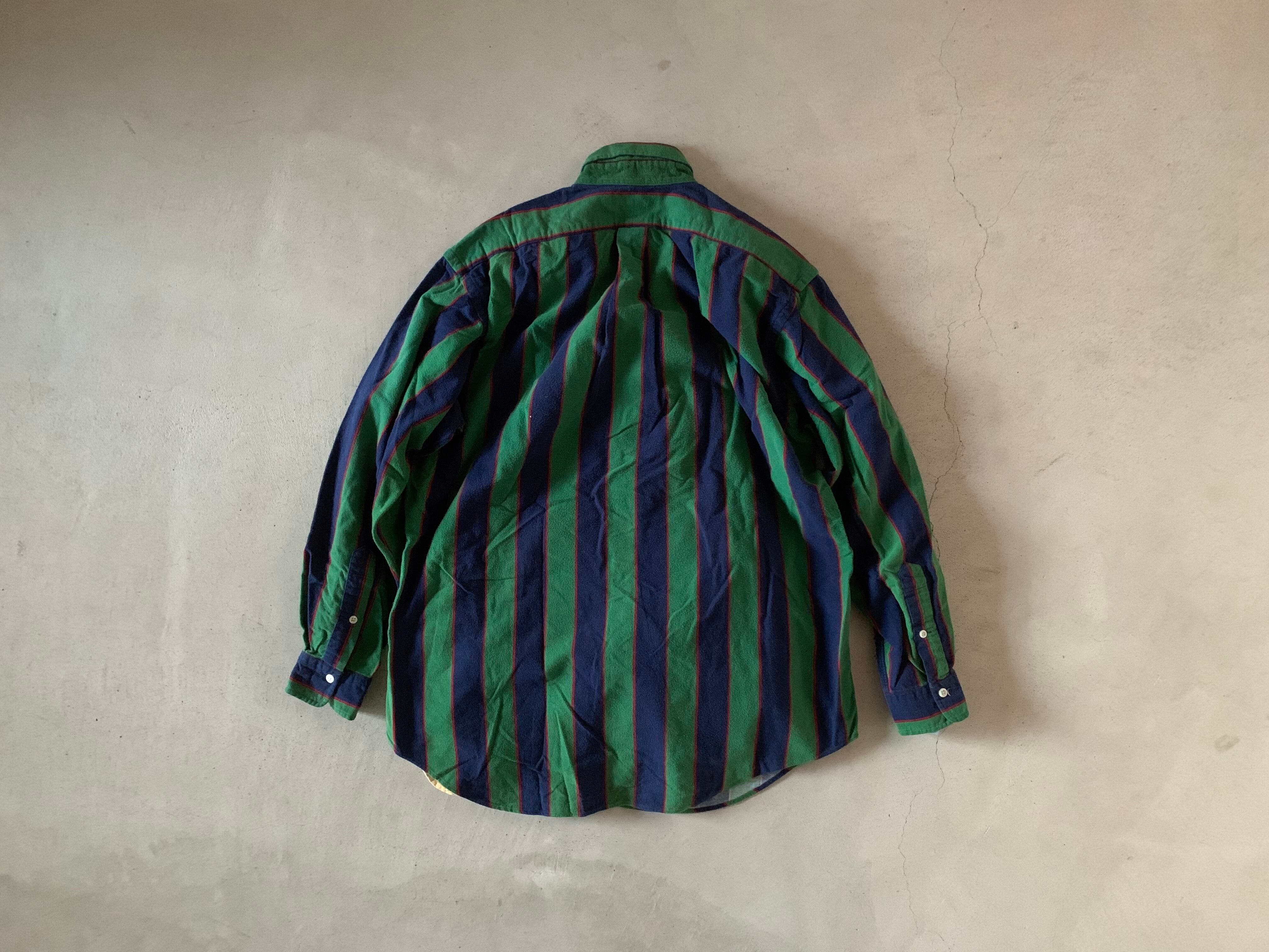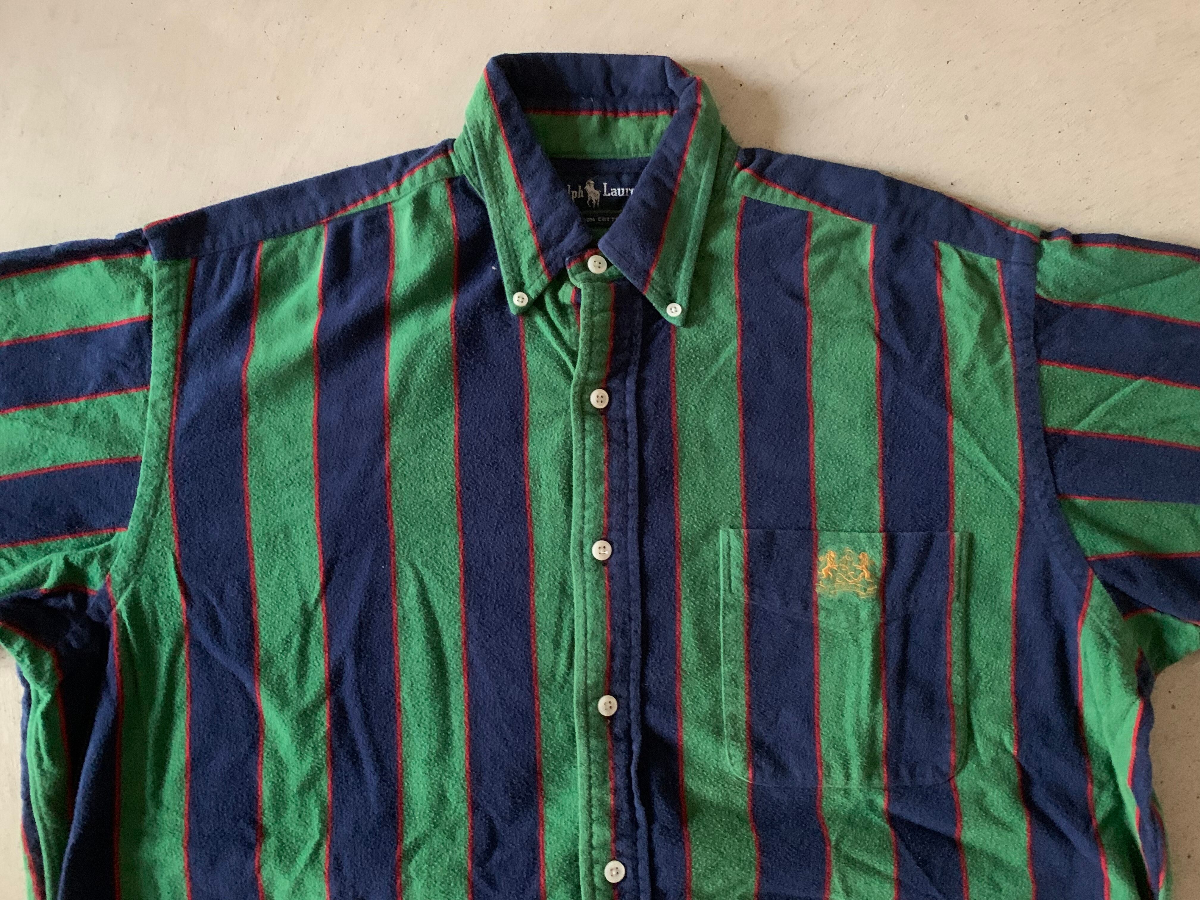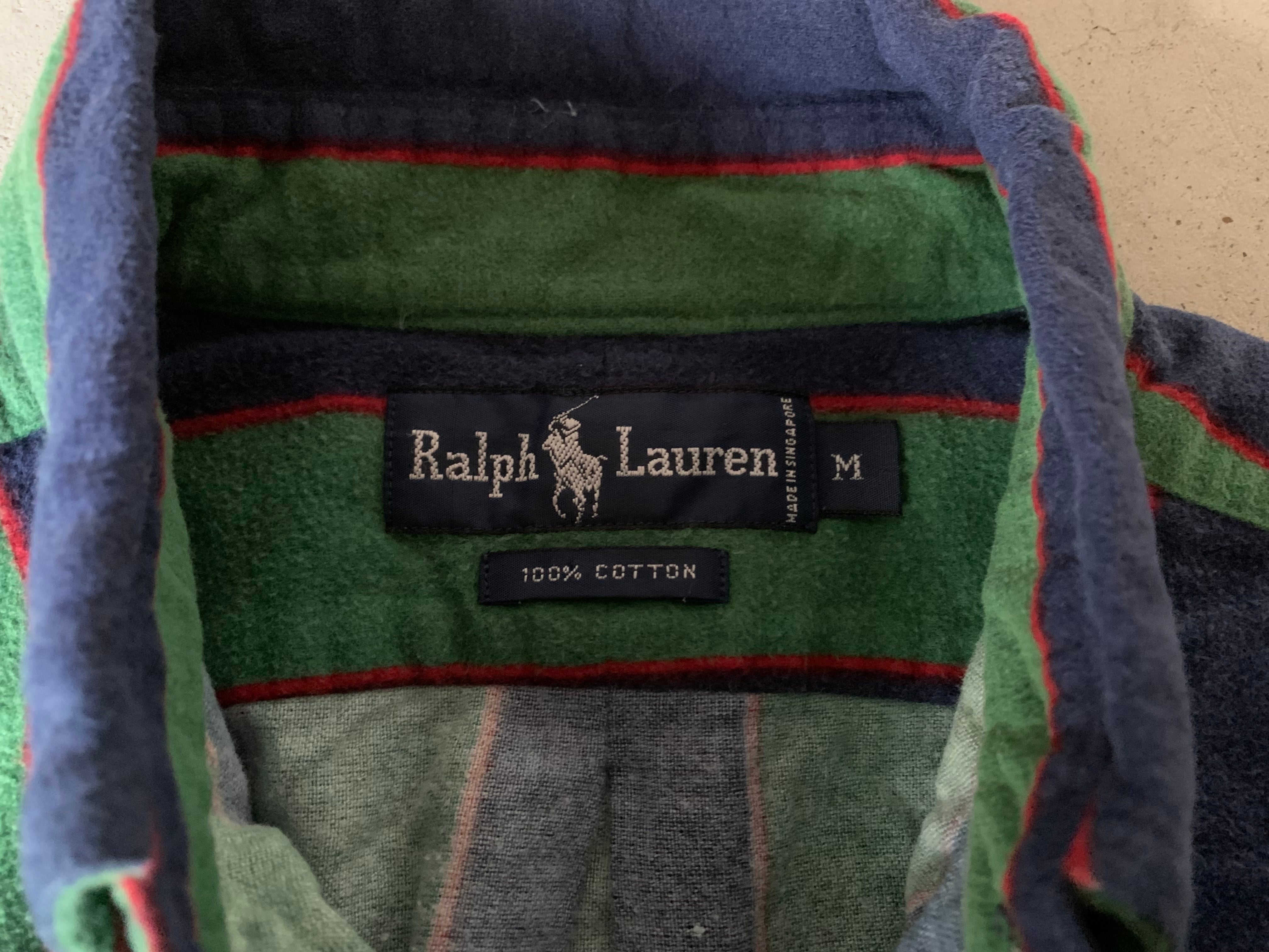 80〜90年代頃のラルフローレンのストライププリントネルシャツ。レジメンタルストライプの珍しい一枚です。