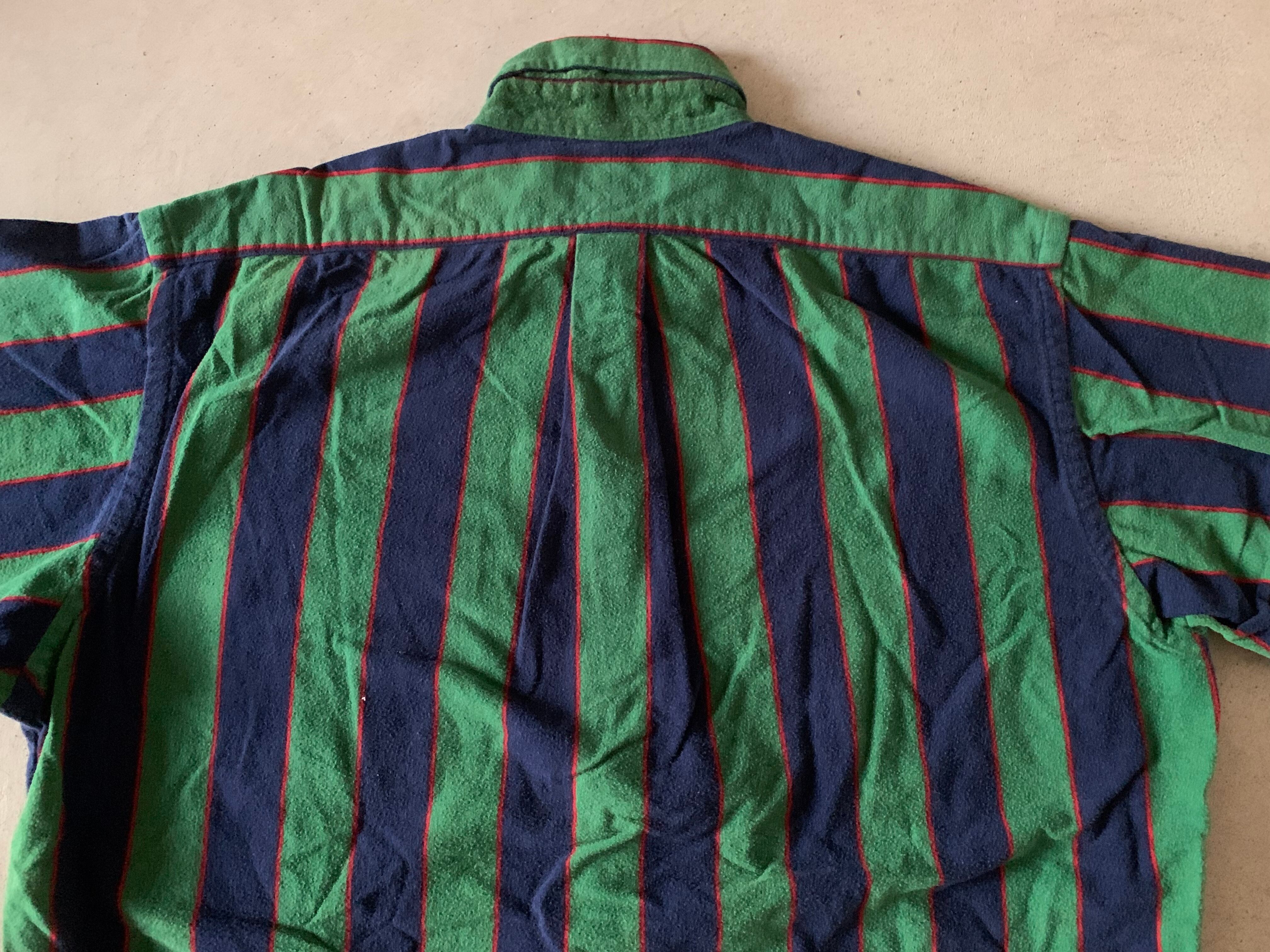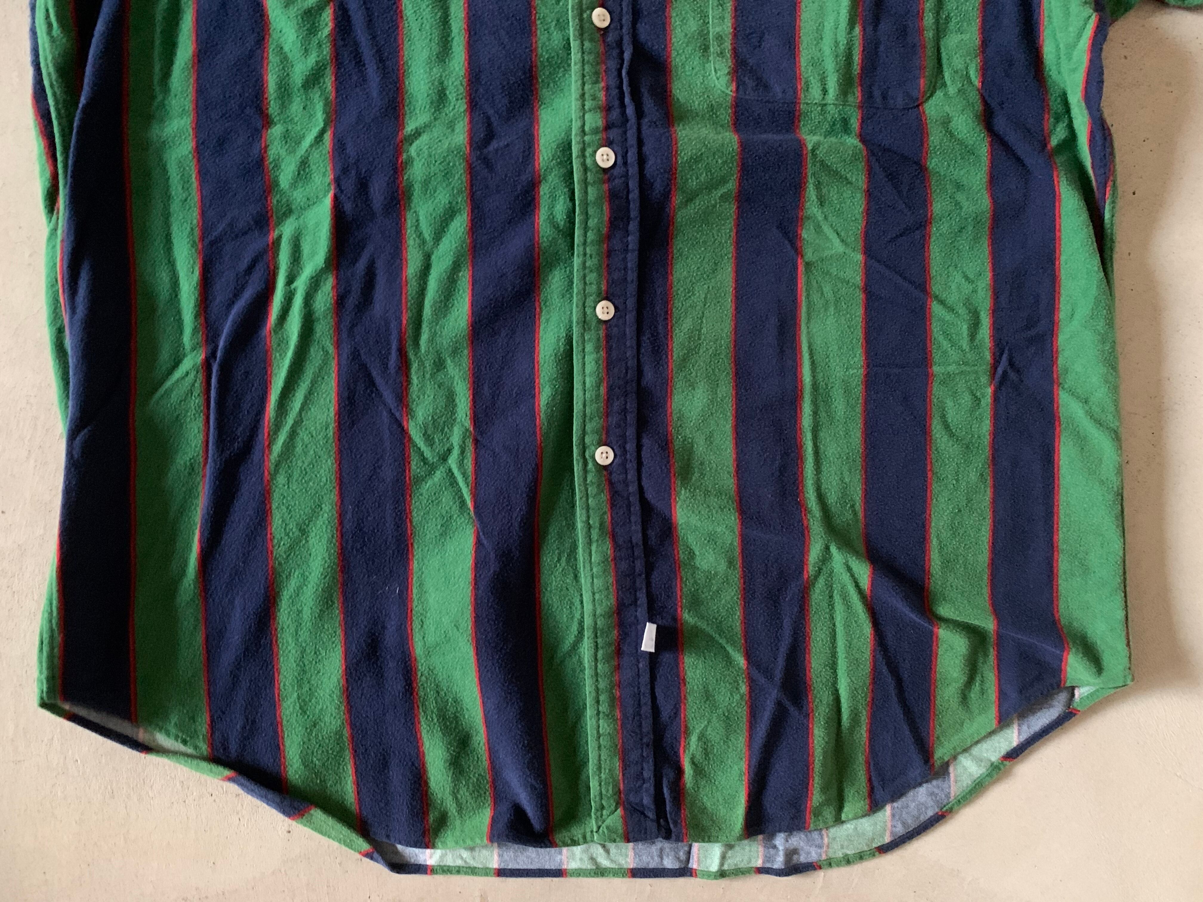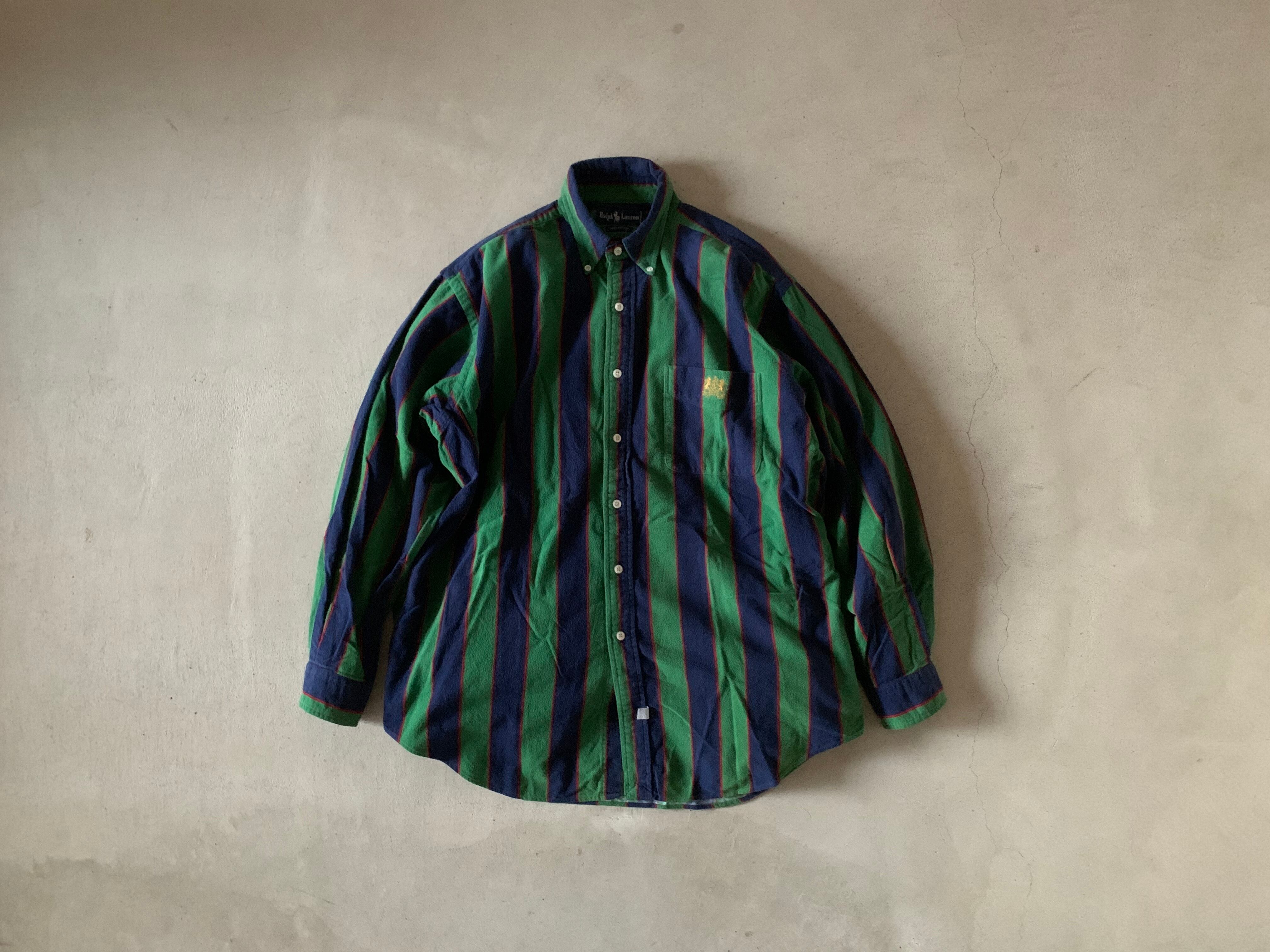 80〜90年代頃のラルフローレンのストライププリントネルシャツ。レジメンタルストライプの珍しい一枚です。