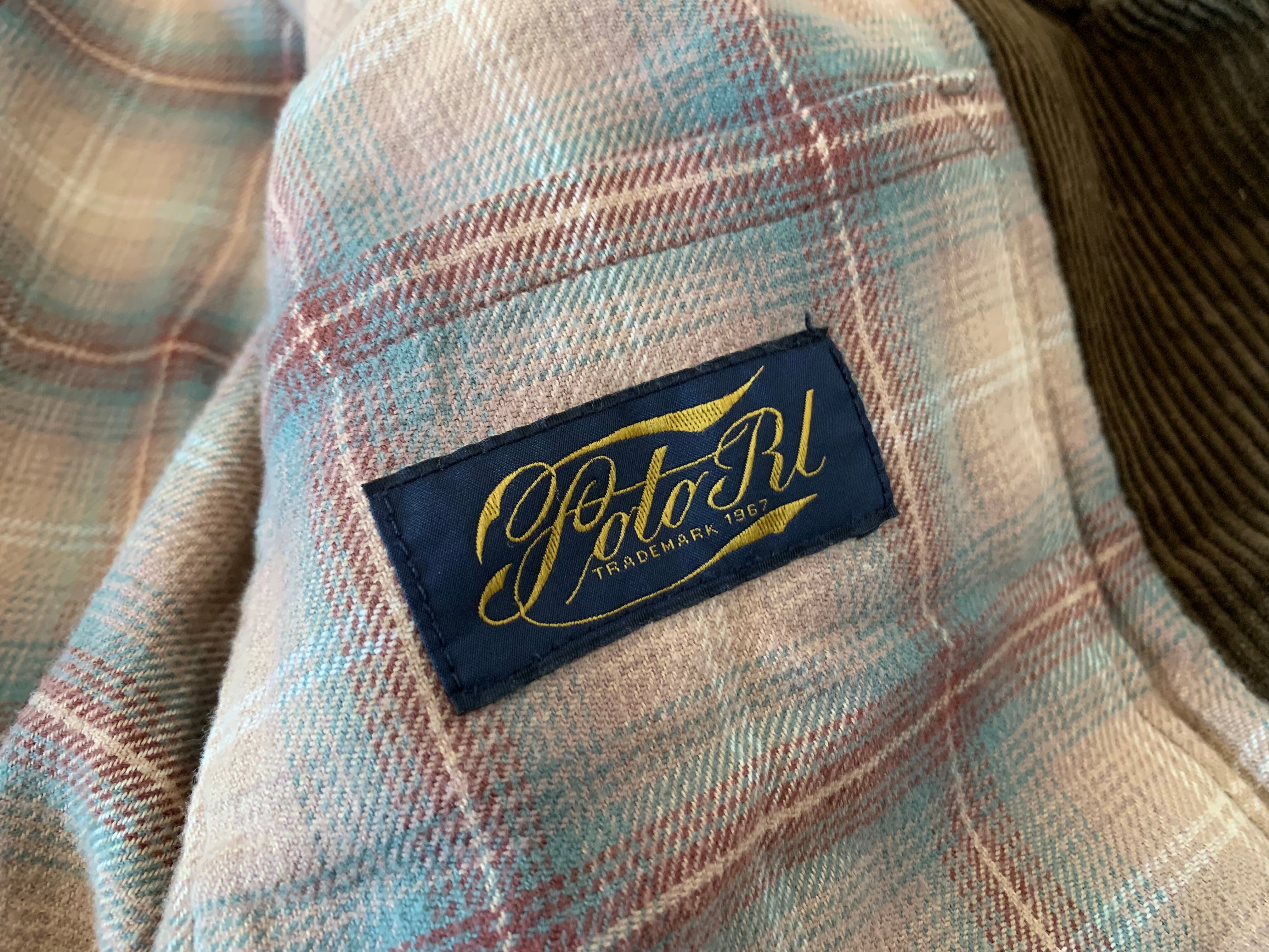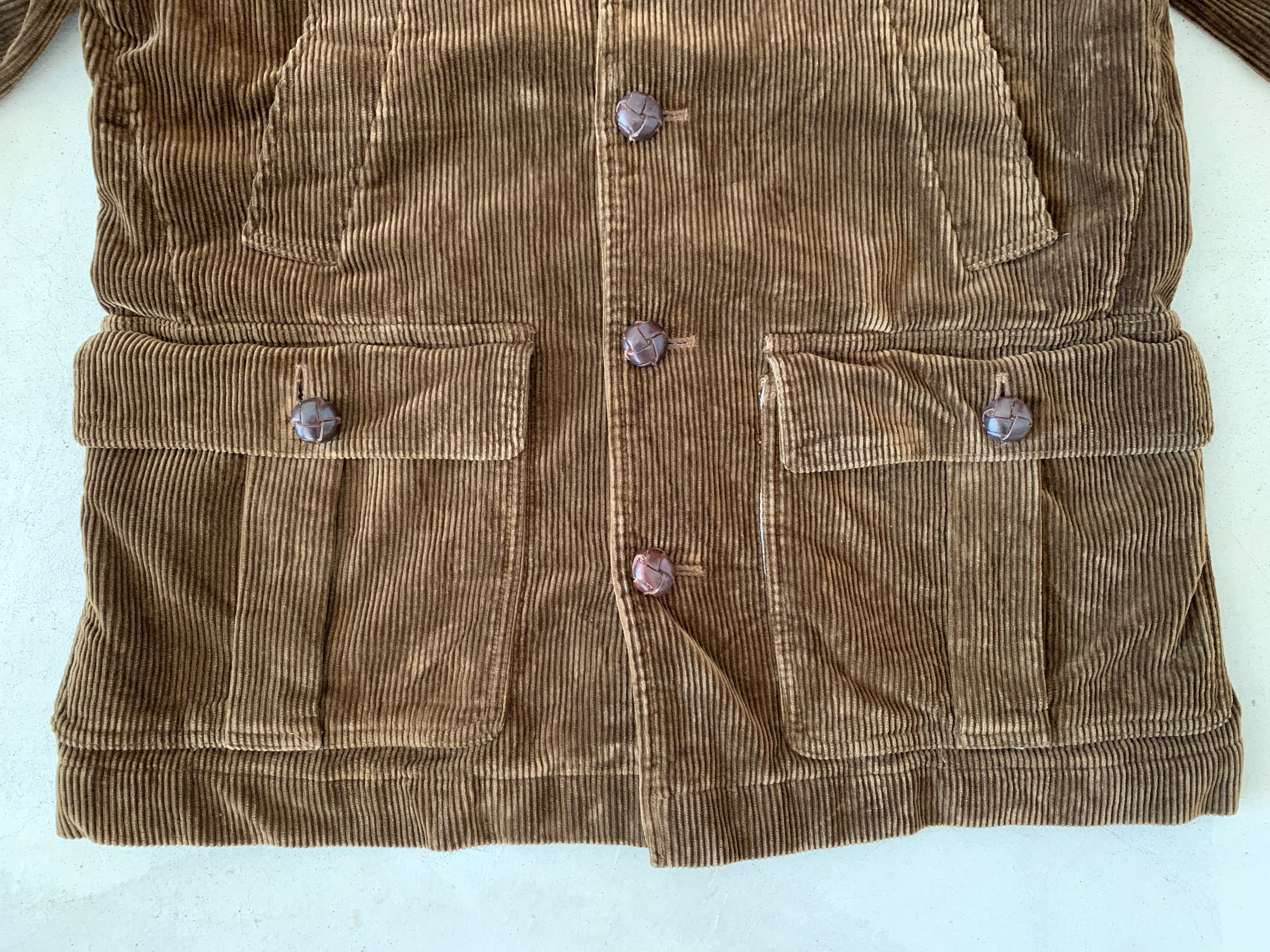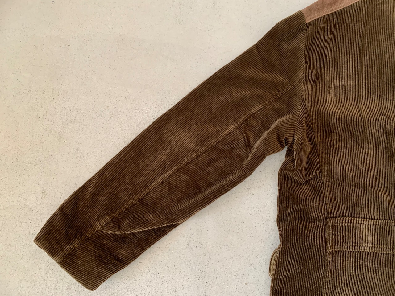 ラルフローレンのコーデュロイ素材のハンティングジャケット。両肩に柔らかいスエード素材のパッチがついています。ボタンはレザーのクルミボタン。