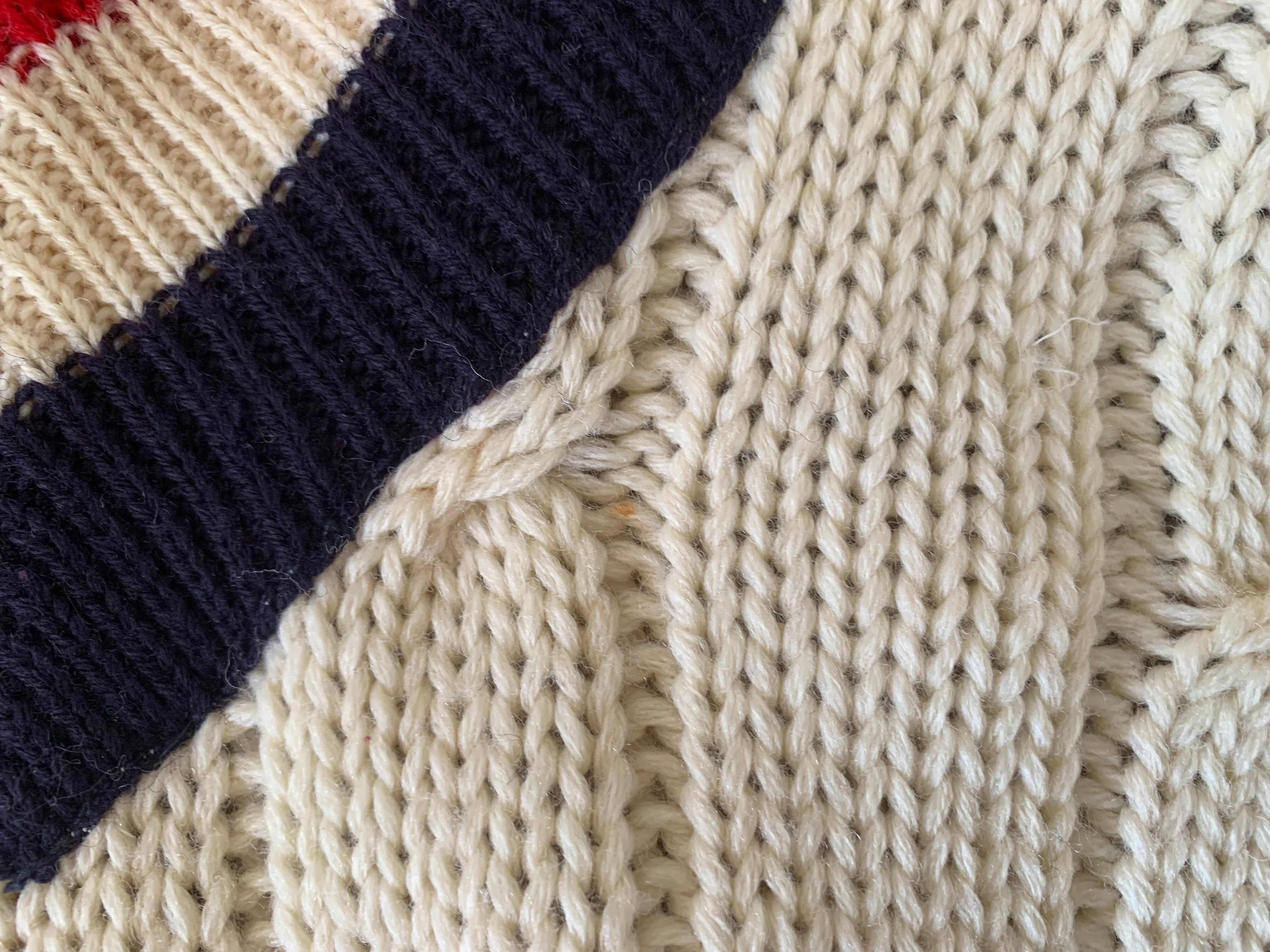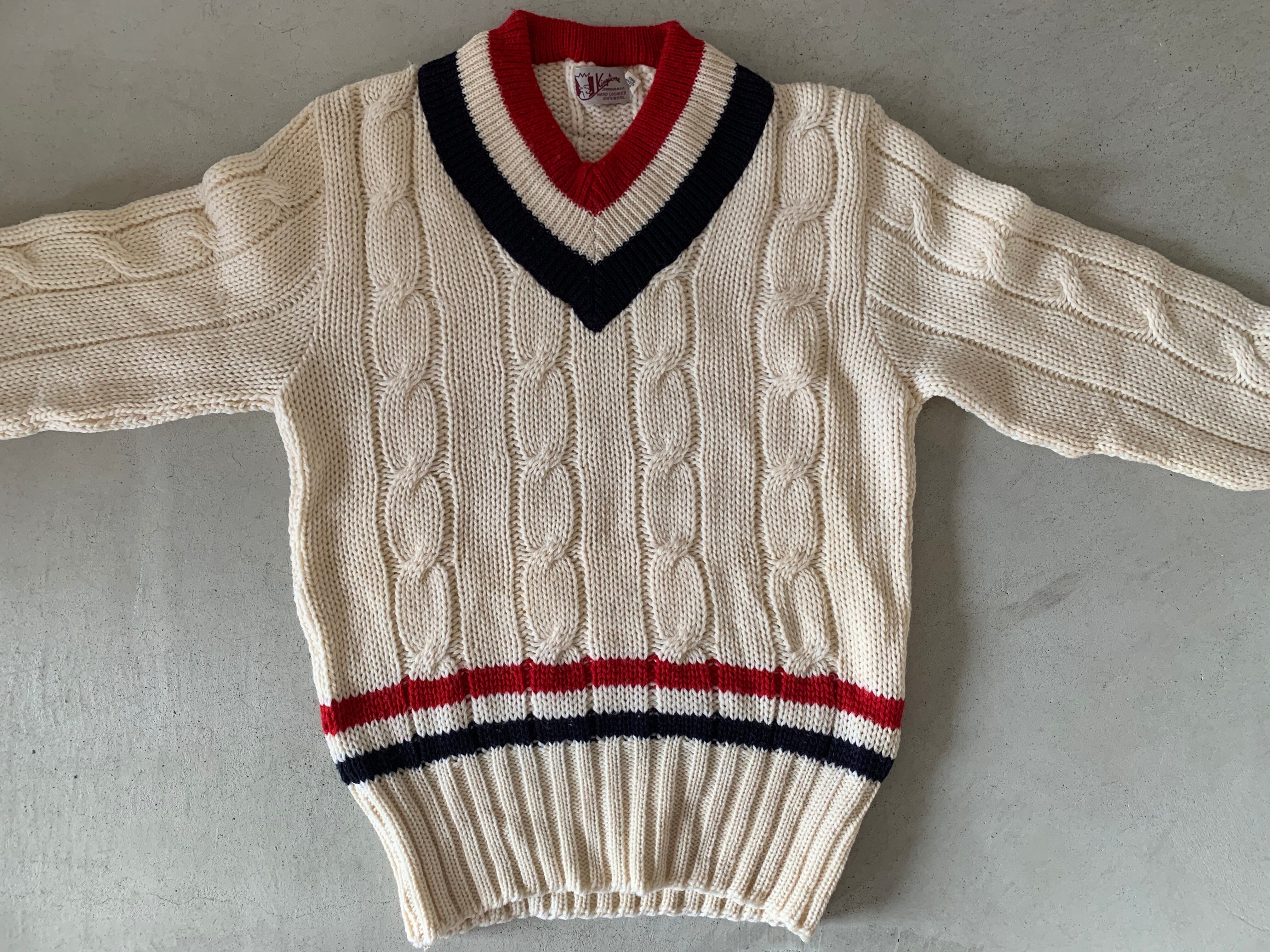 年代などは不明ですが、雰囲気の良いチルデンセーター。前身頃にうっすらとシミがございます。