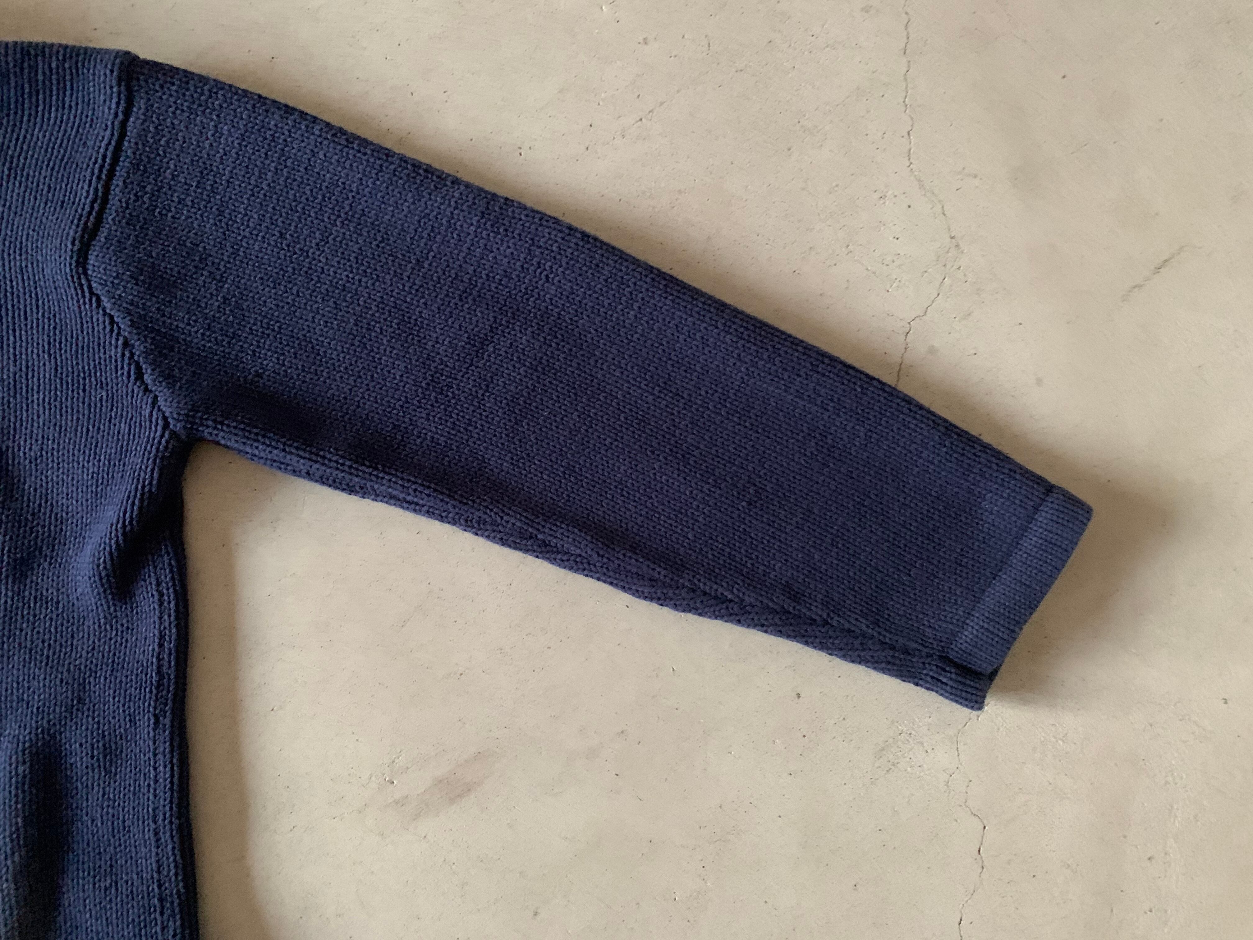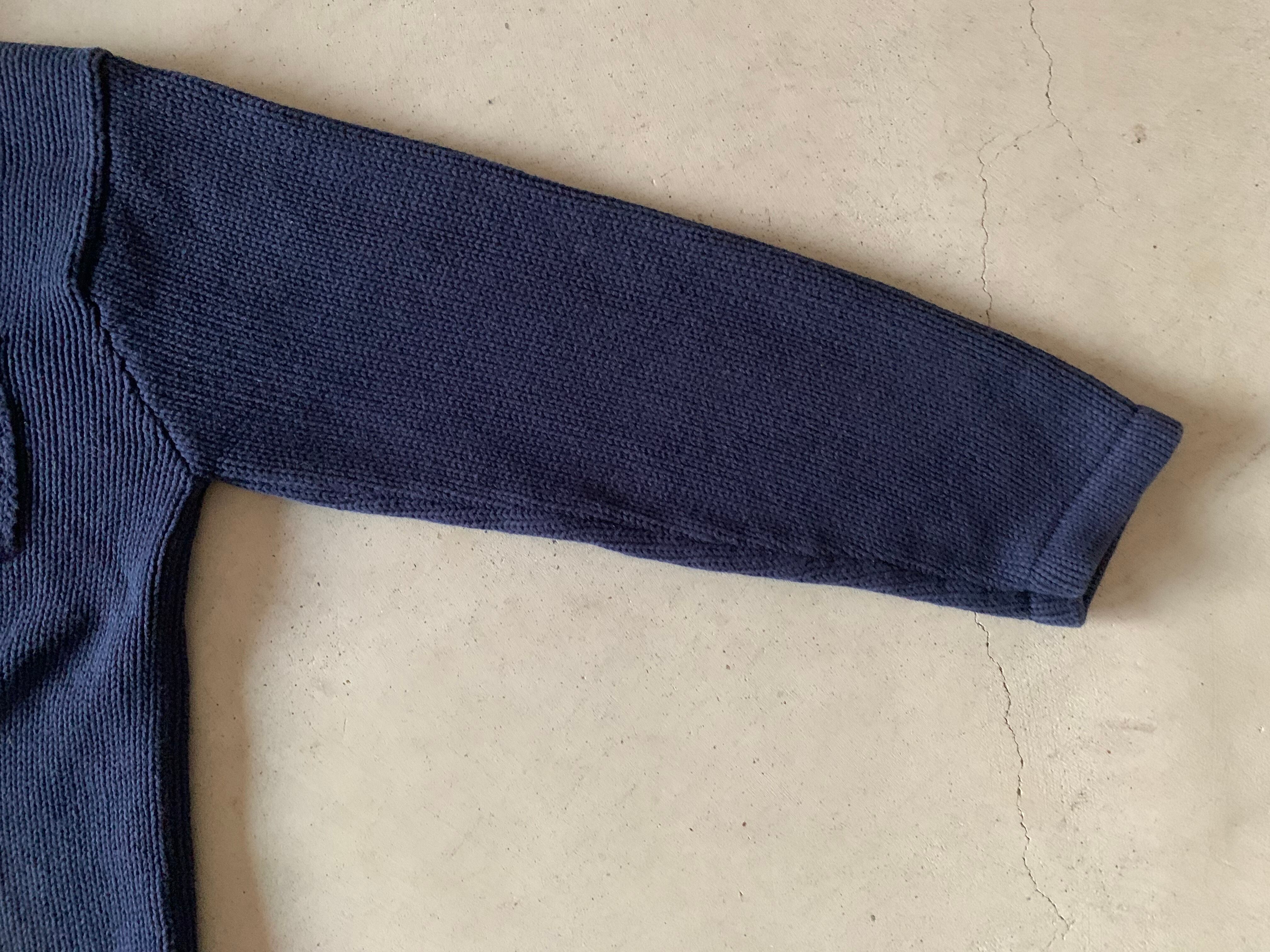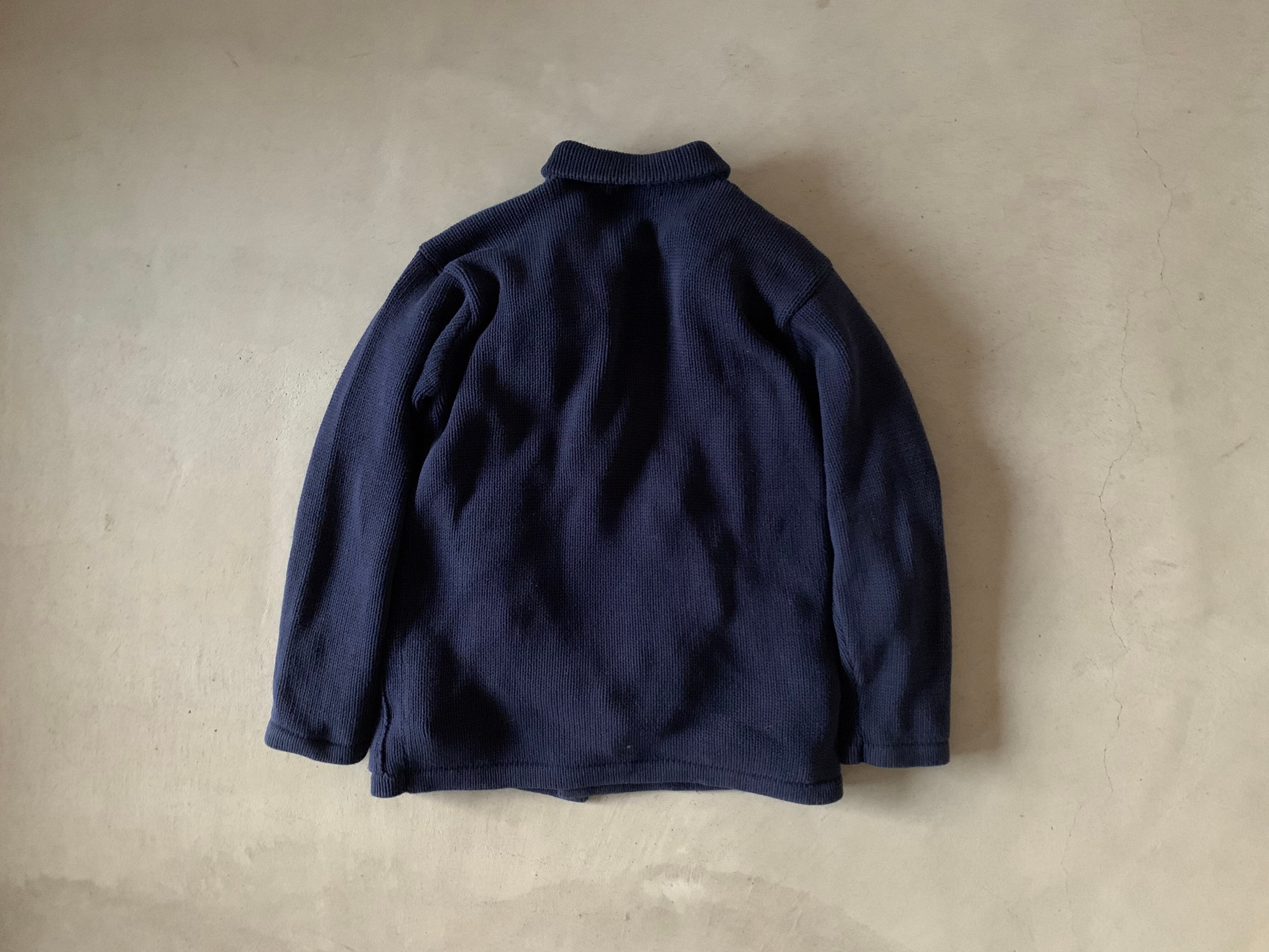 ダブルのジャケットのようなカッチリした雰囲気ですが、コットンニットのリラックス感あふれる一枚です。