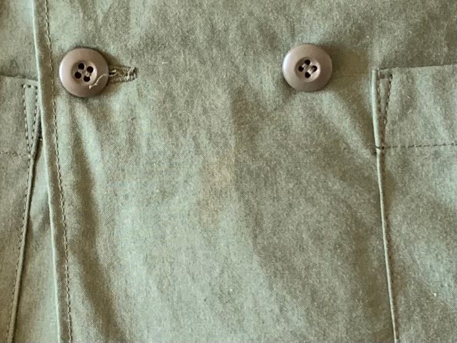 ボタンは80年代アメリカ軍のファティーグシャツで使われていたボタンを使用しています。