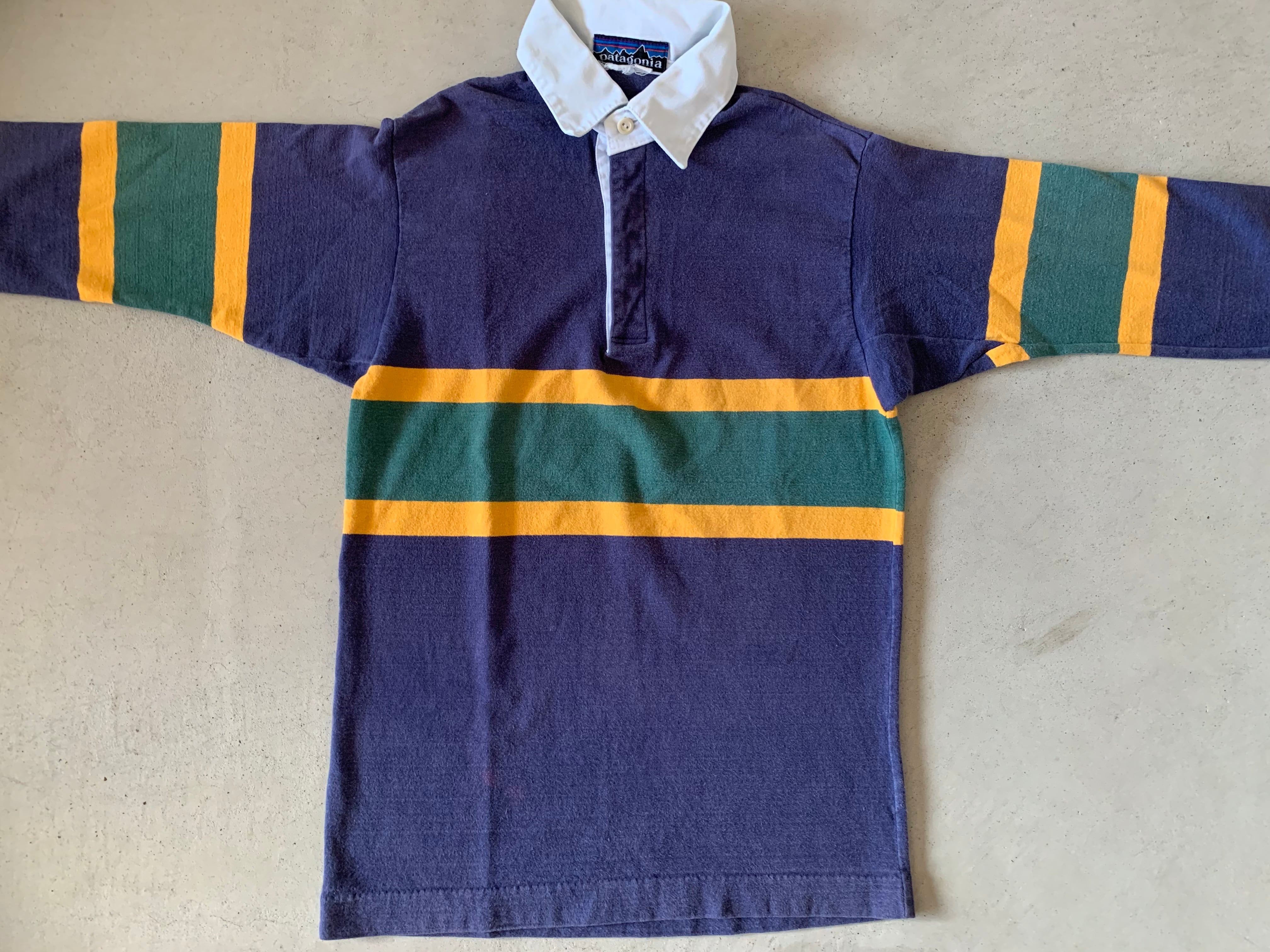 80年代頃のデカタグがつくパタゴニアのラガーシャツ。ラガーシャツの割には細身なつくりです。