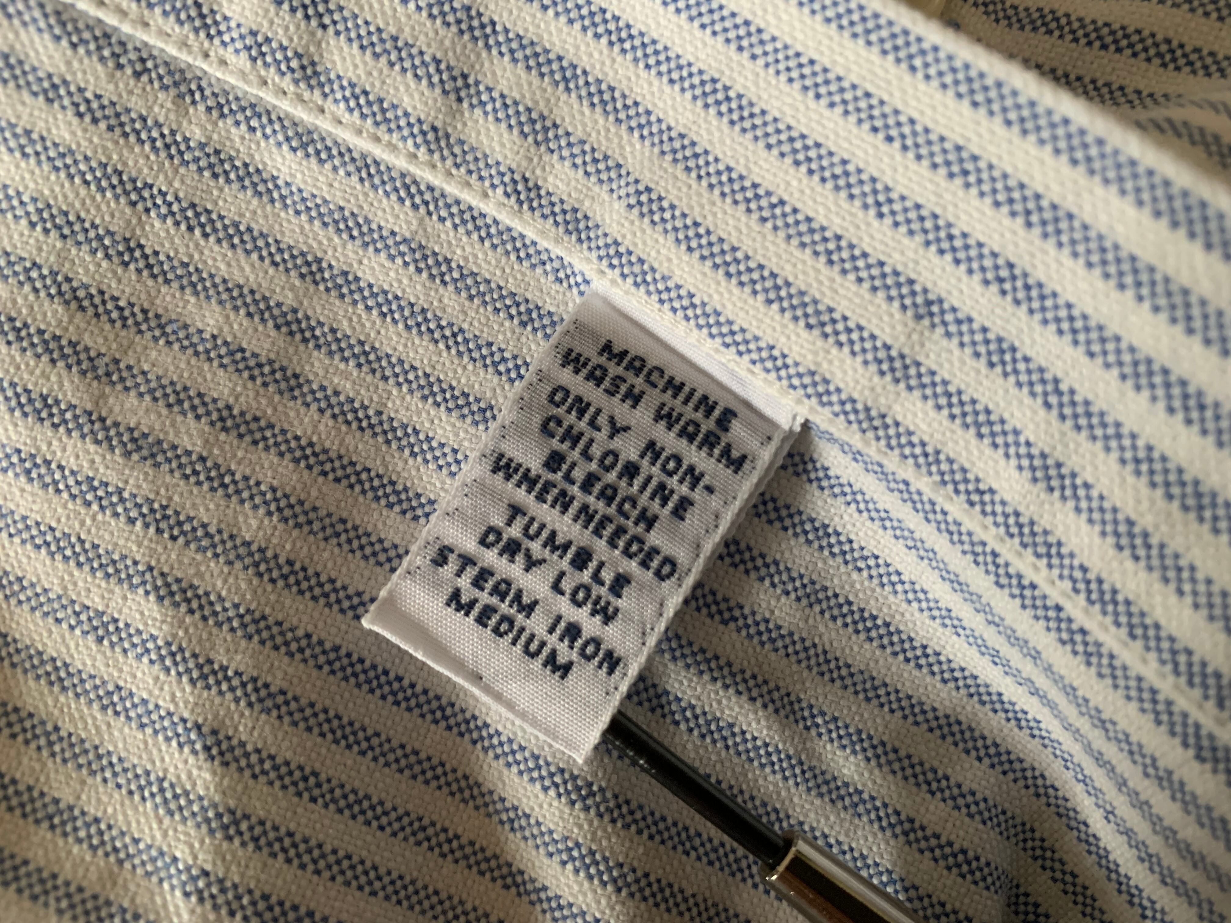 素材はコットン100%のサックスブルーストライプのオックスフォード。