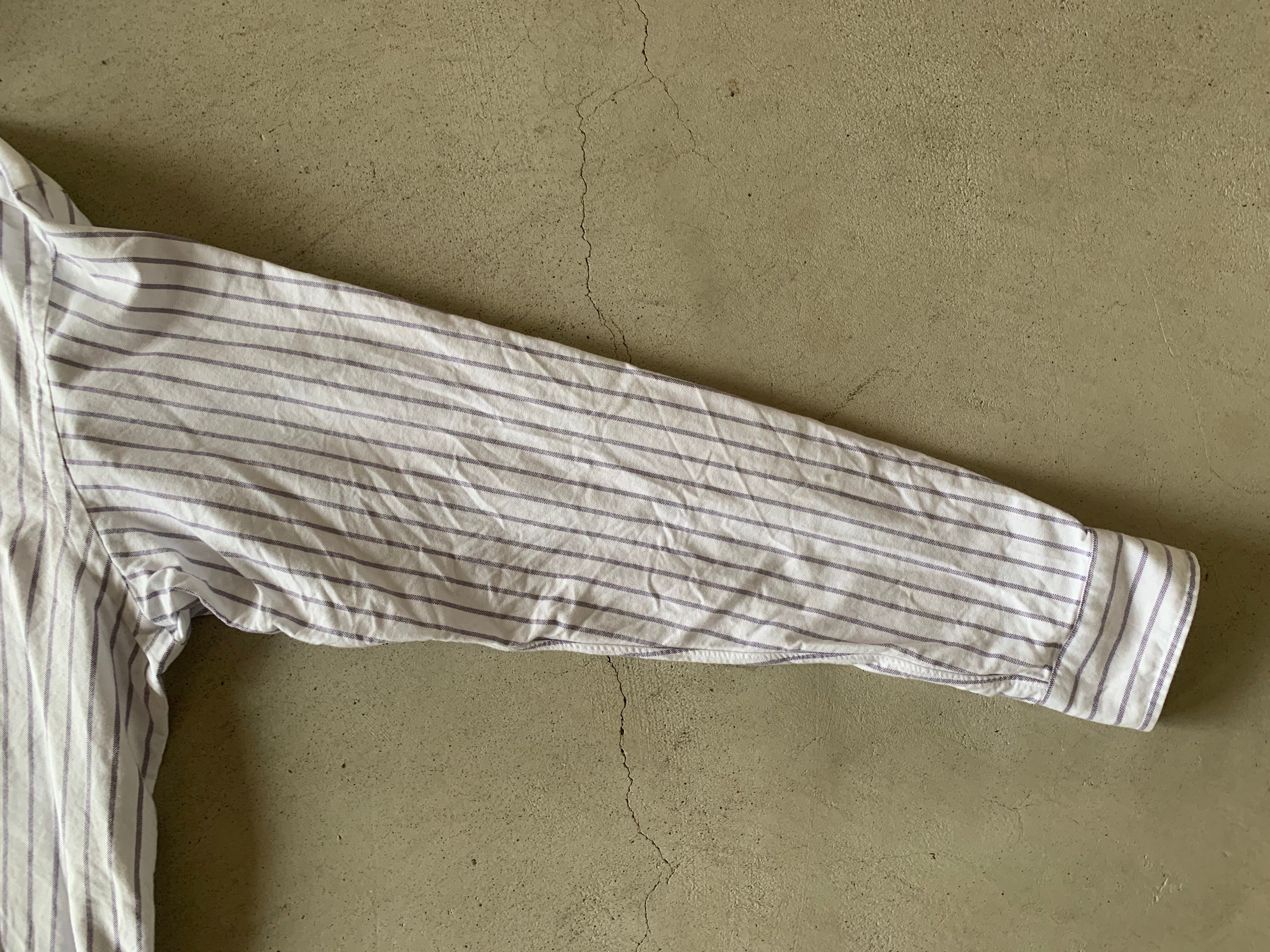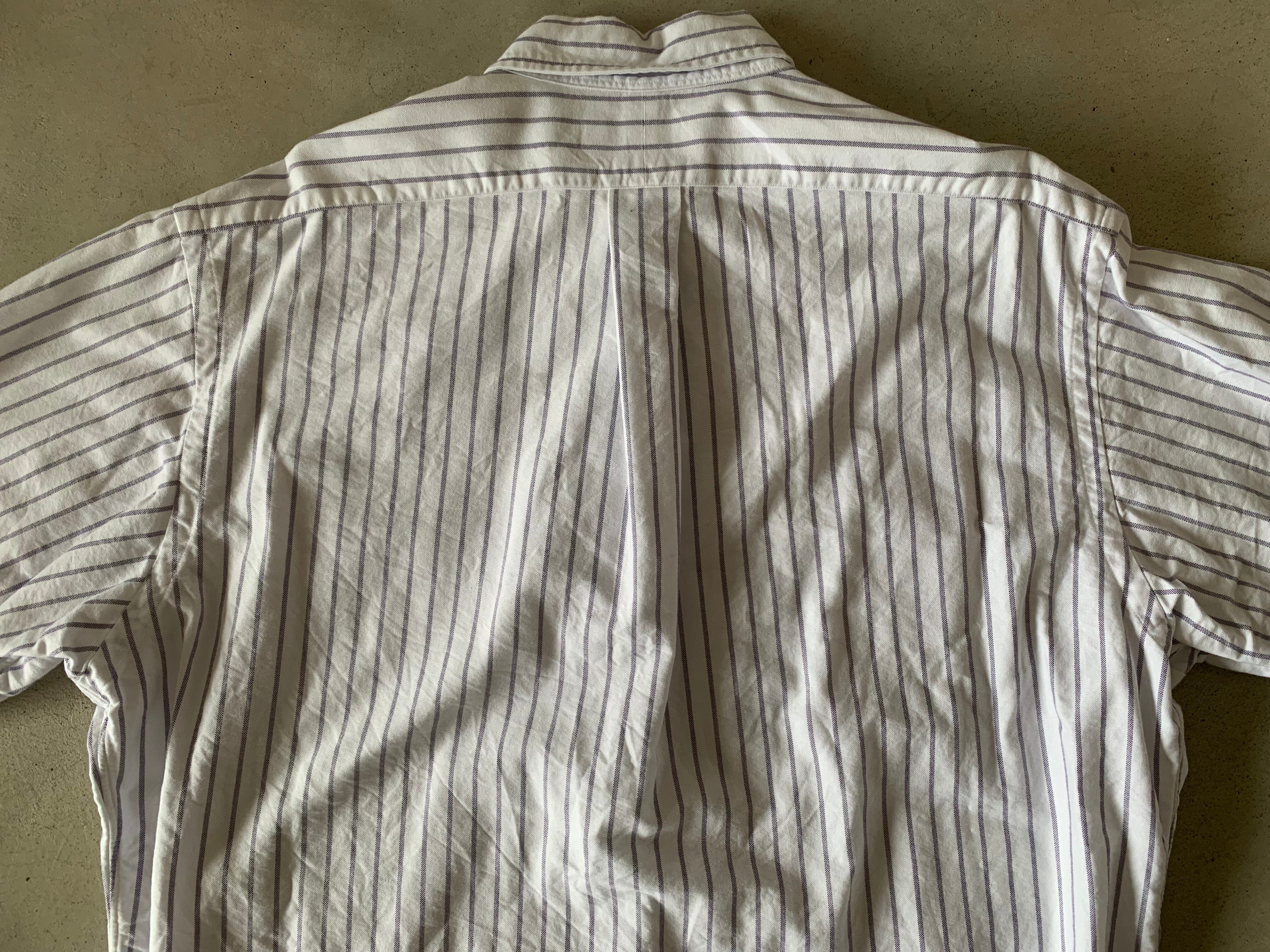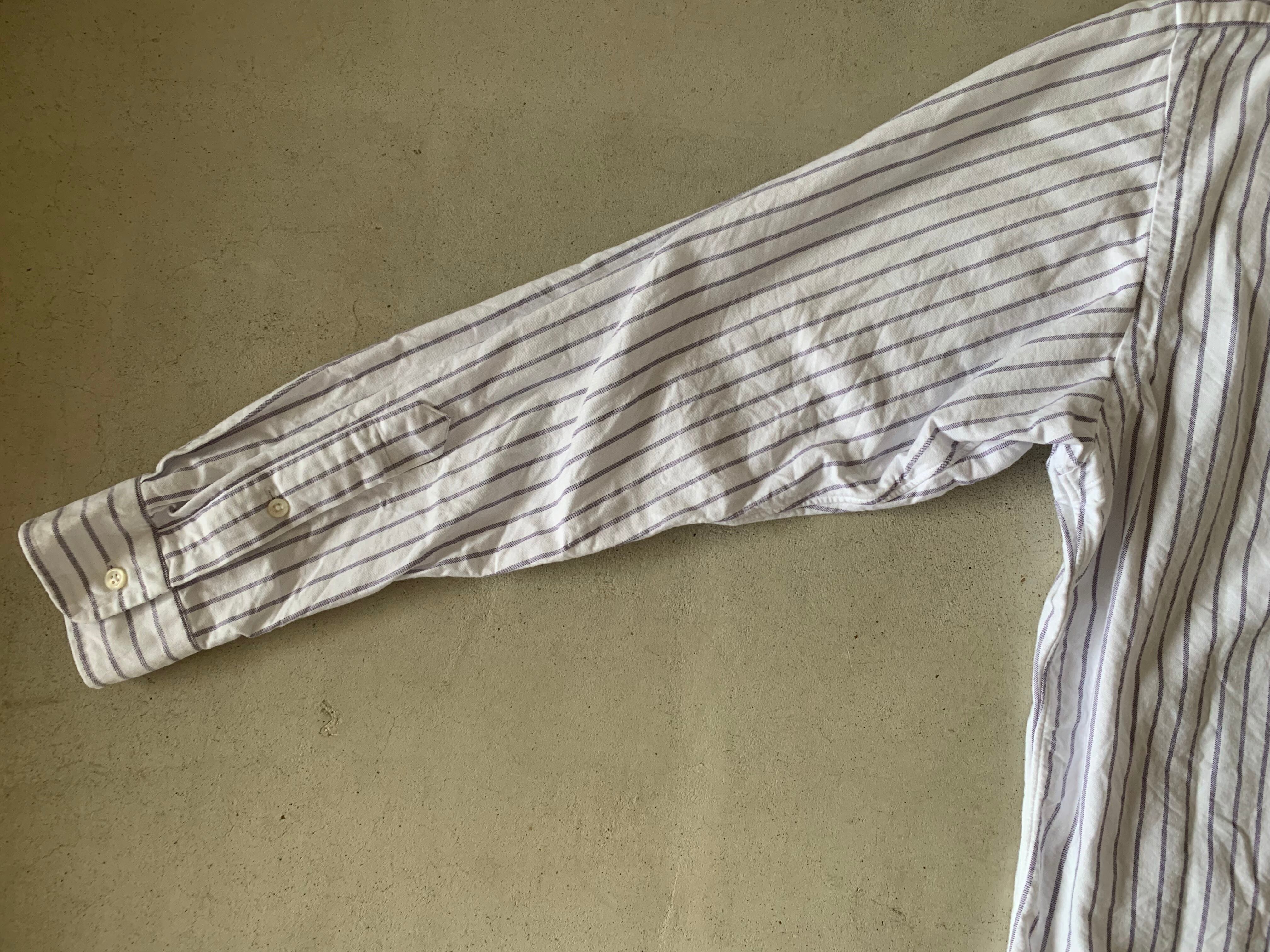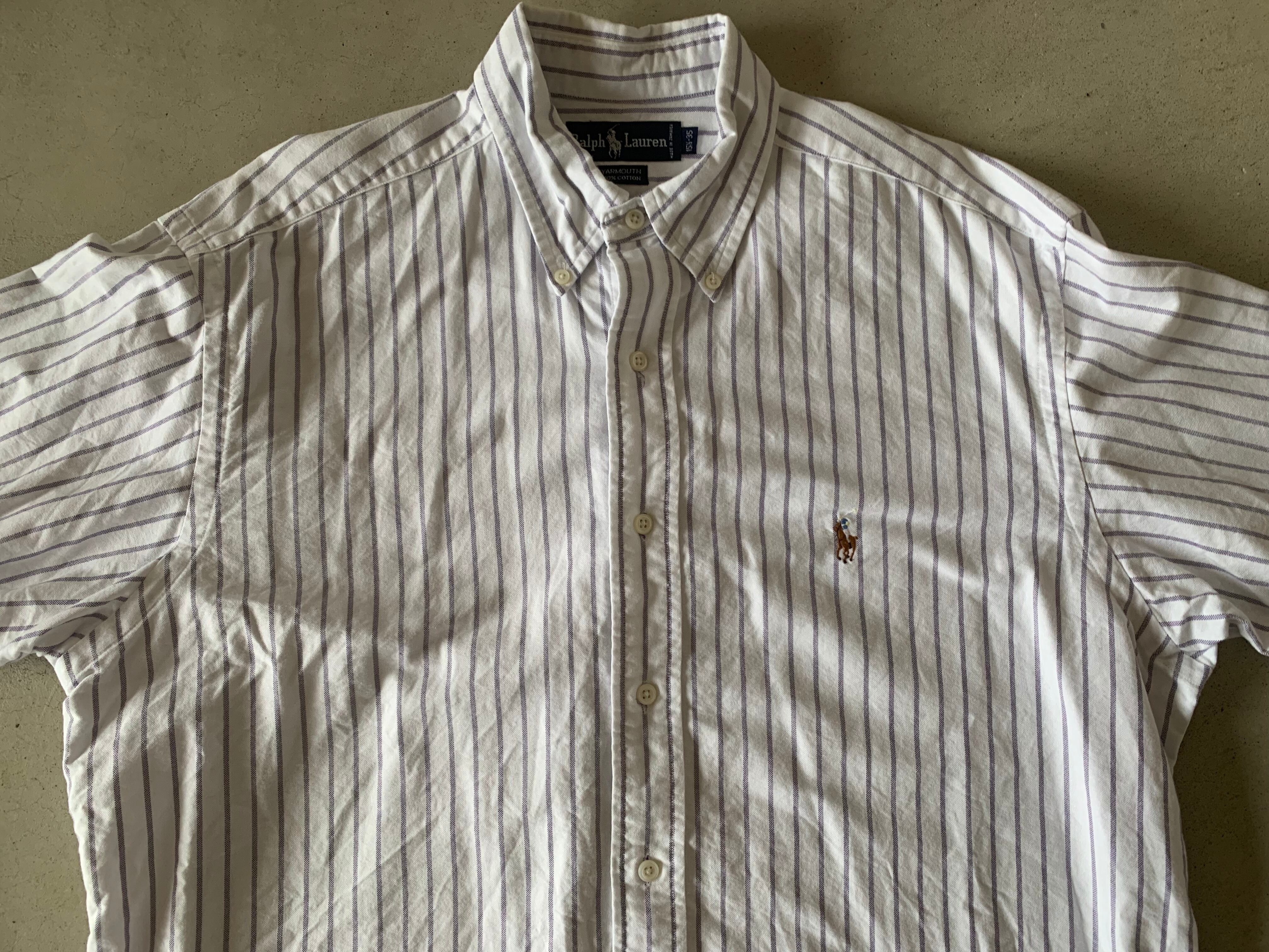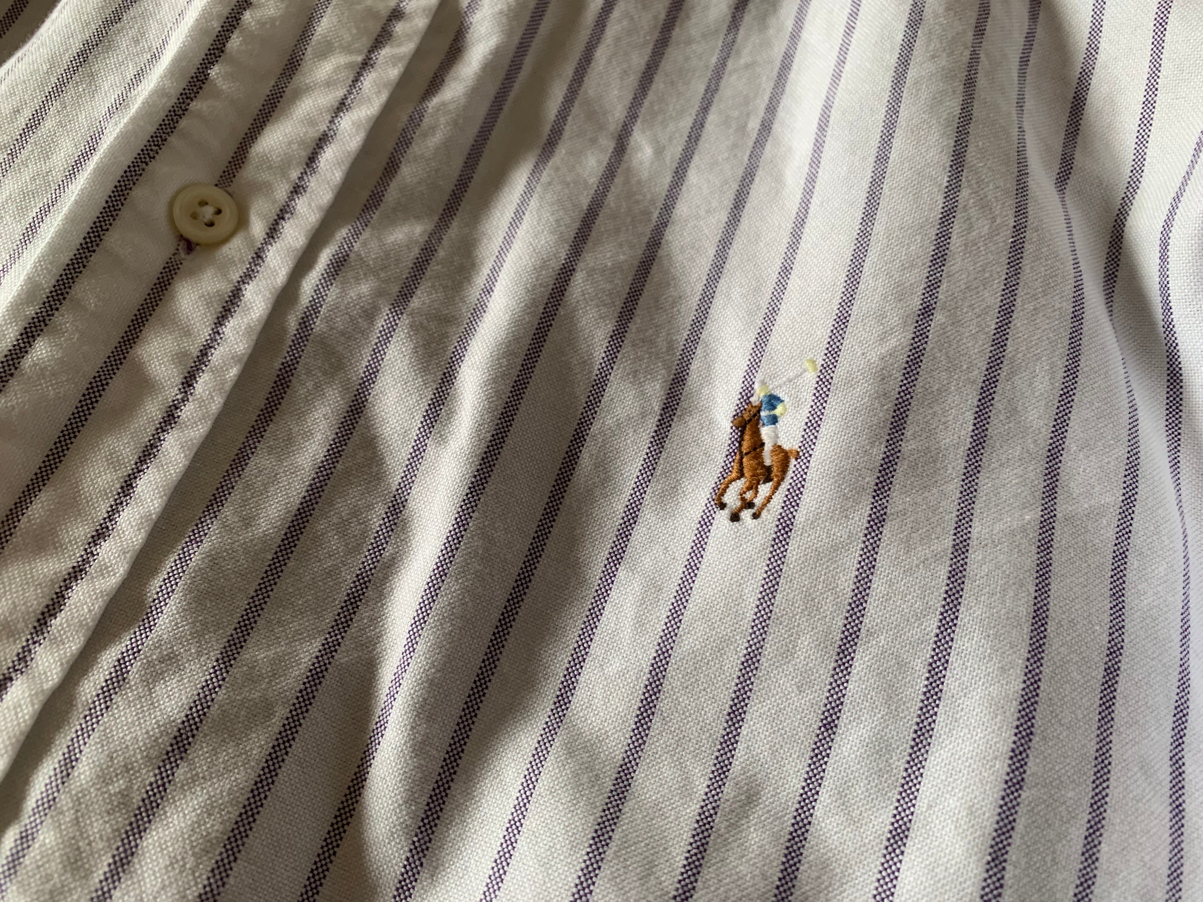 ラルフローレンのオックスフォード生地のストライプシャツ。白地に薄いパープルのストライプ。