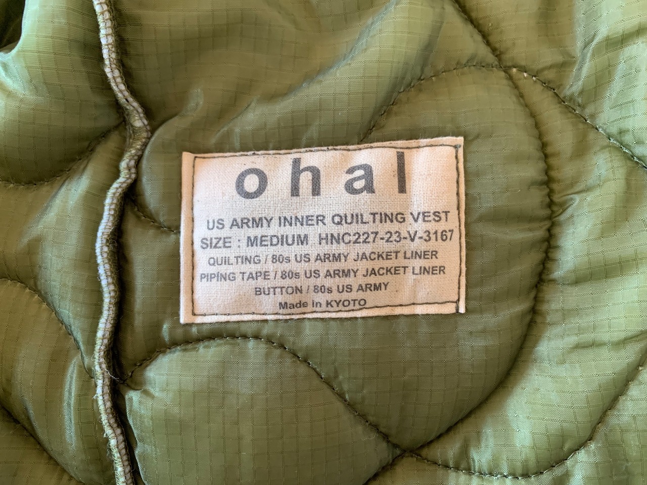 ohal / MEDIUM US ARMY Inner Quilting Vest