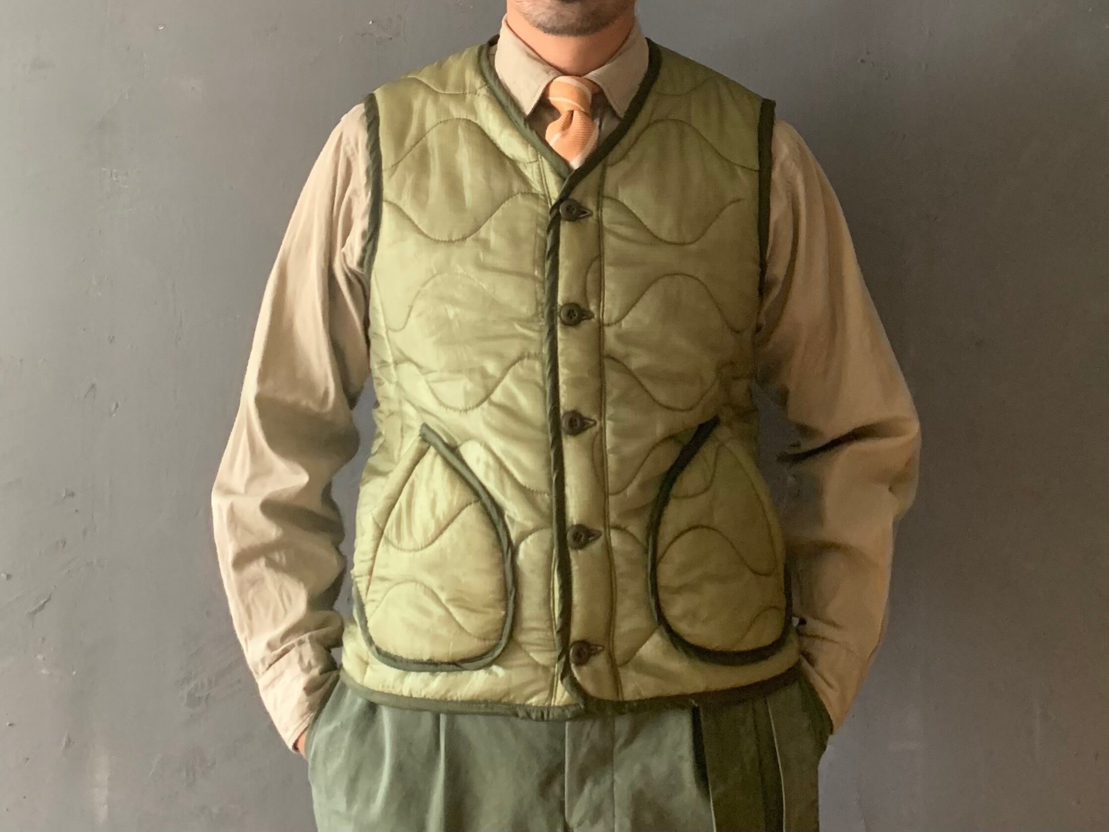 ボディーは米軍の、80年代頃に納入された、ジャケットの中に取り付ける、キルティングライナー。