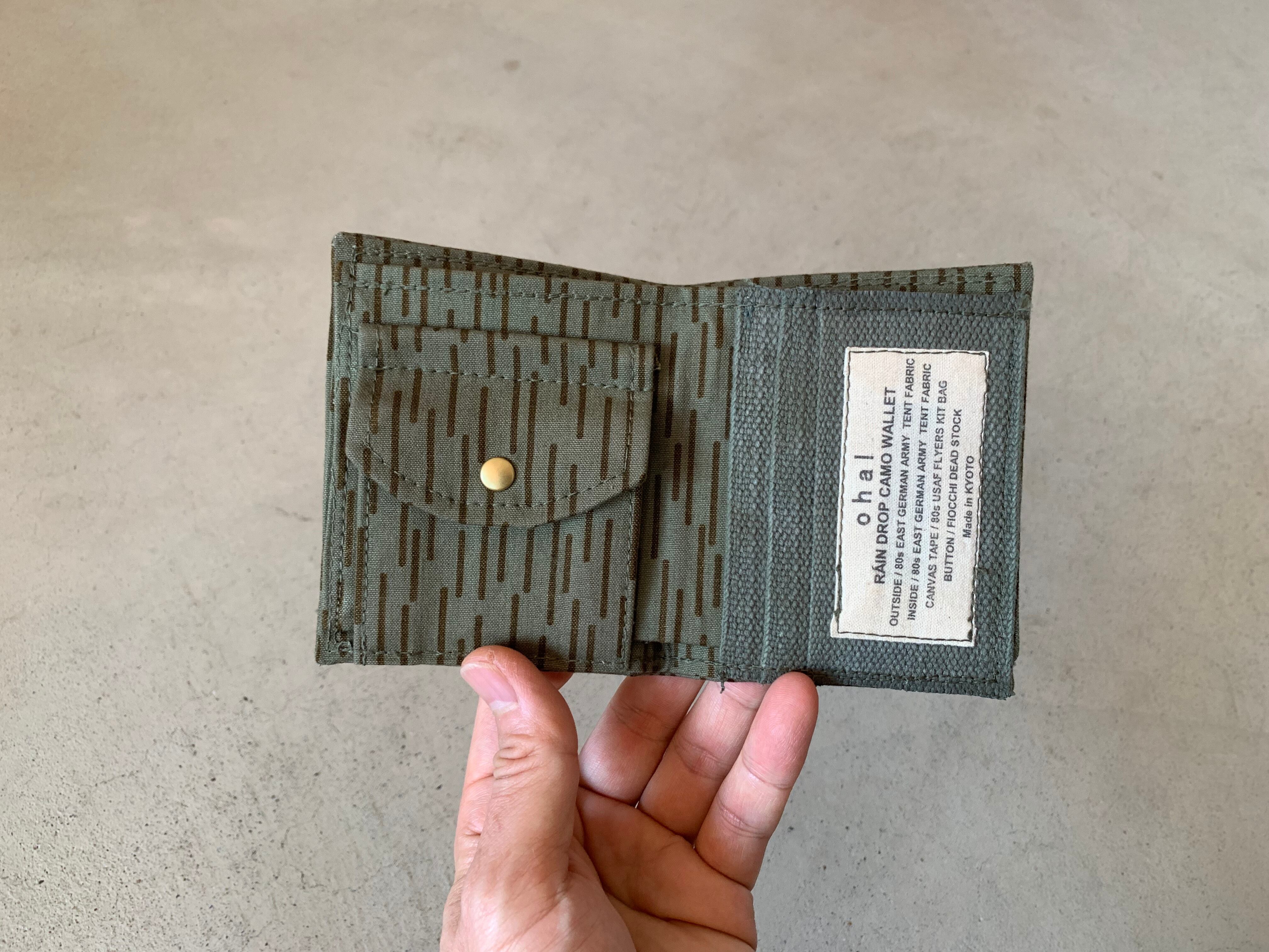 ボディーの生地は80年代、東ドイツ軍のレインドロップカモ柄のテント生地を使用。
