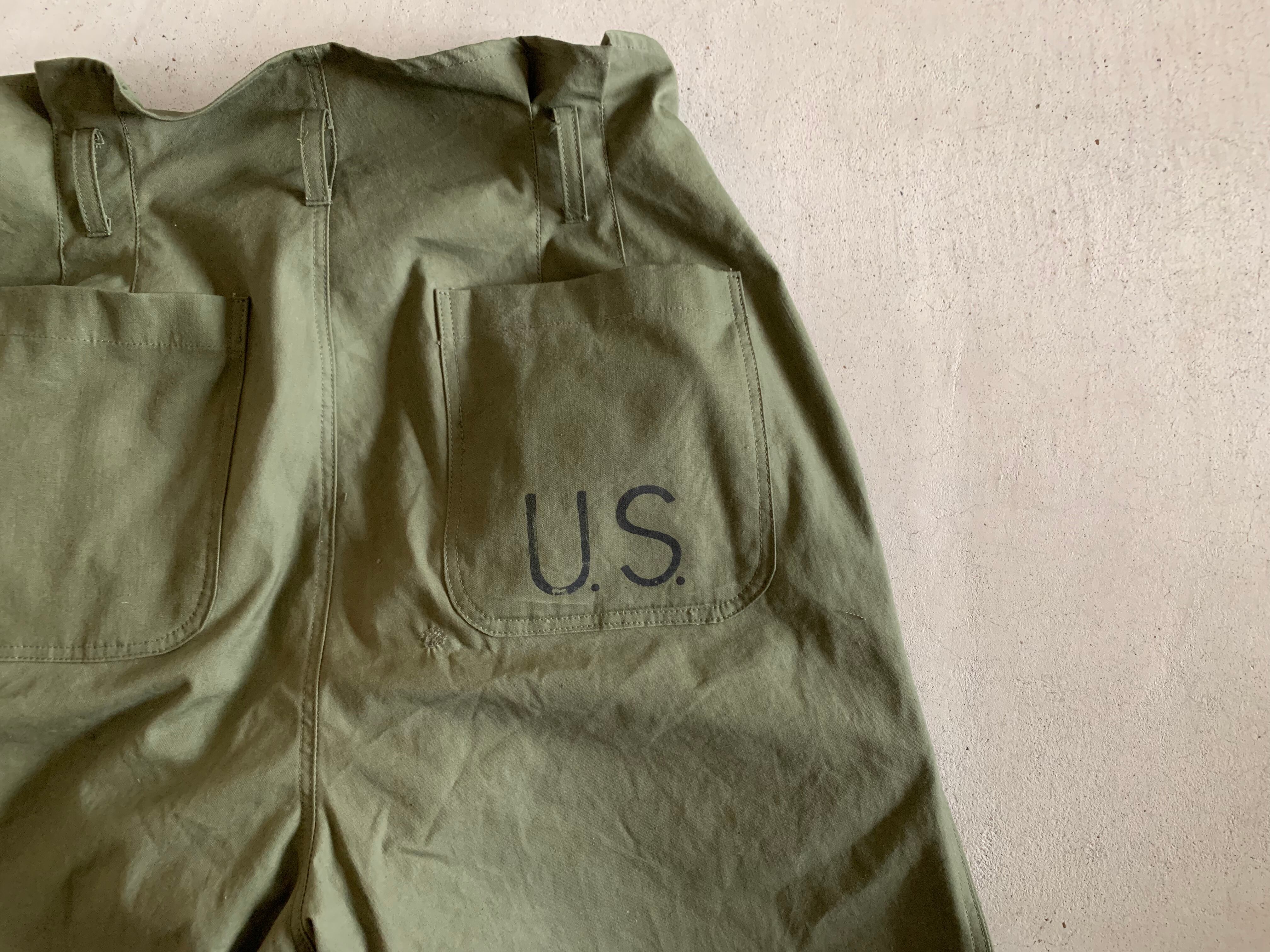 こちらはUS ARMY Tuck Shortsの受注販売ページです。ヒップポケットのUSステンシルの有無と、サイズのS〜XLでお選び頂けます。(USステンシルの有無をお選びできますが、8〜10枚目の画像のようにステンシルの濃淡、ロゴのフォントなどは指定できませんのでご了承ください。)(現在ステンシル有りは在庫切れです。)