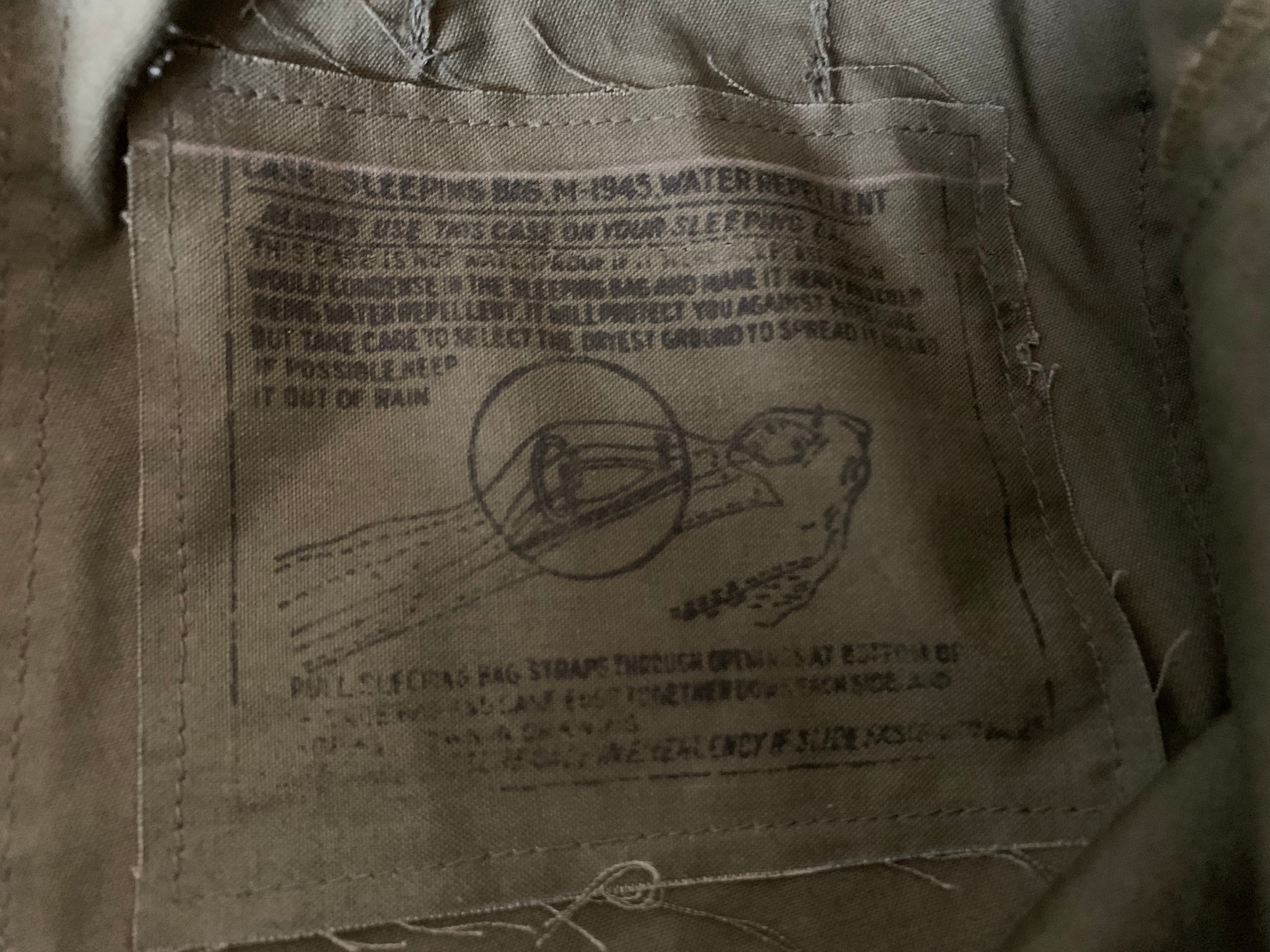 内側にはスリーピングバッグケースについていたタグをつけています。(タグも画像のように、何種類かございます。こちらも指定できません。古い物はタグが無い場合もございますのでご了承ください。)