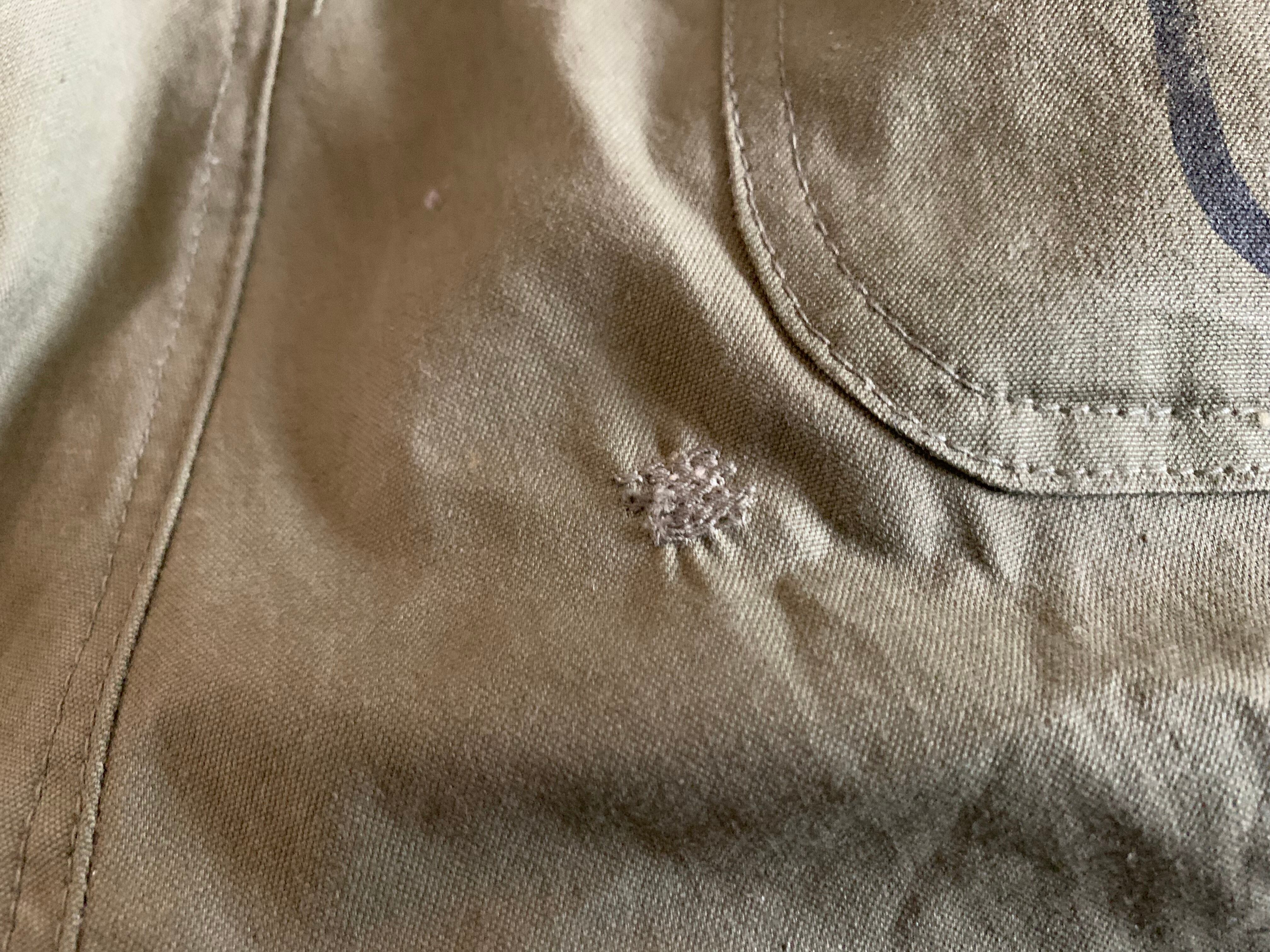 穴があいた、破れた、糸がほつれた、などのトラブルは、ヴィンテージ生地でのパッチワークや、ミシンでたたいて補修をします。ボタンやスナップボタンなどの付属品が取れてしまった、カバンのストラップがちぎれたなどの場合は、似寄りの物で対応させていただきます。