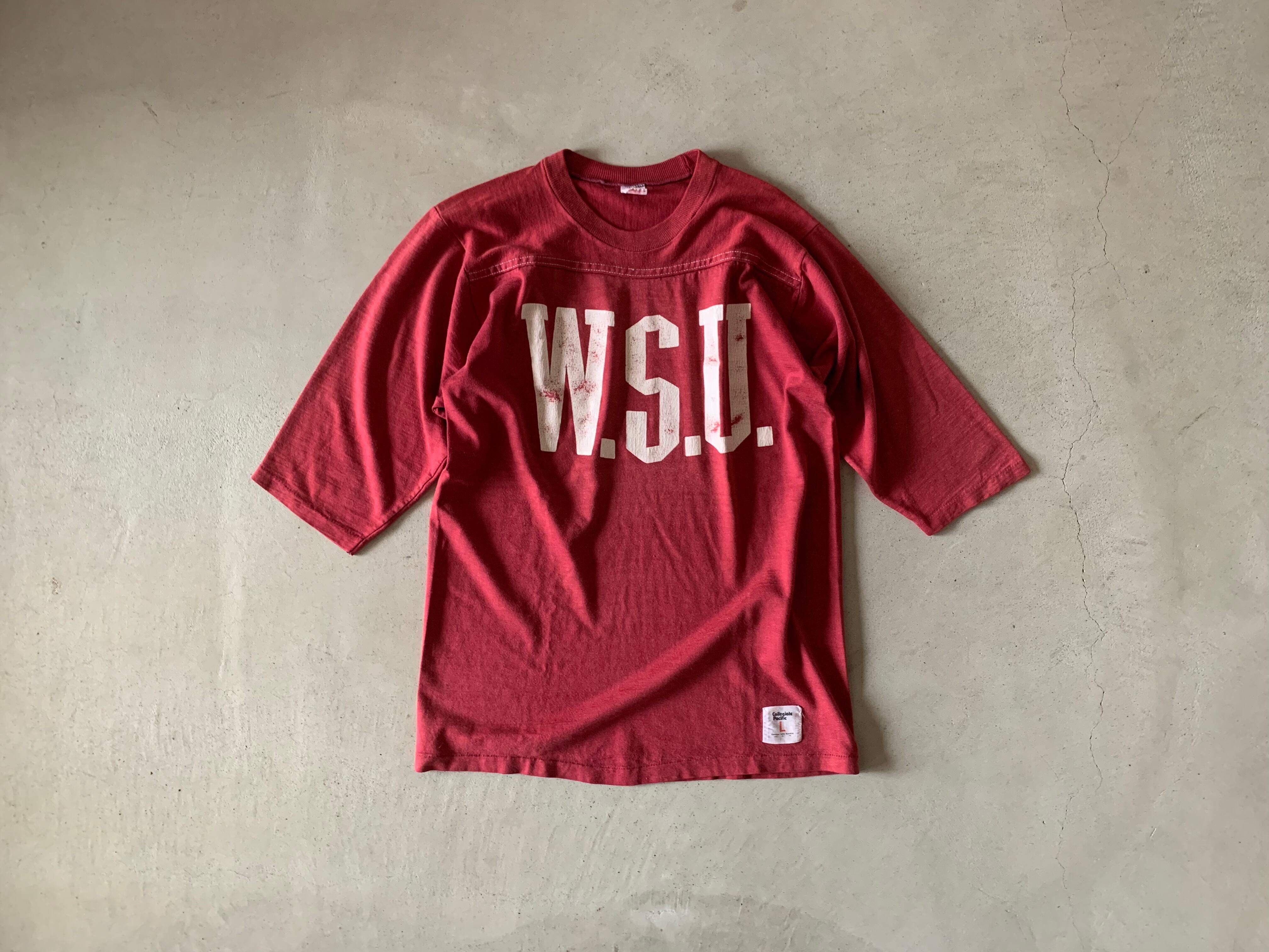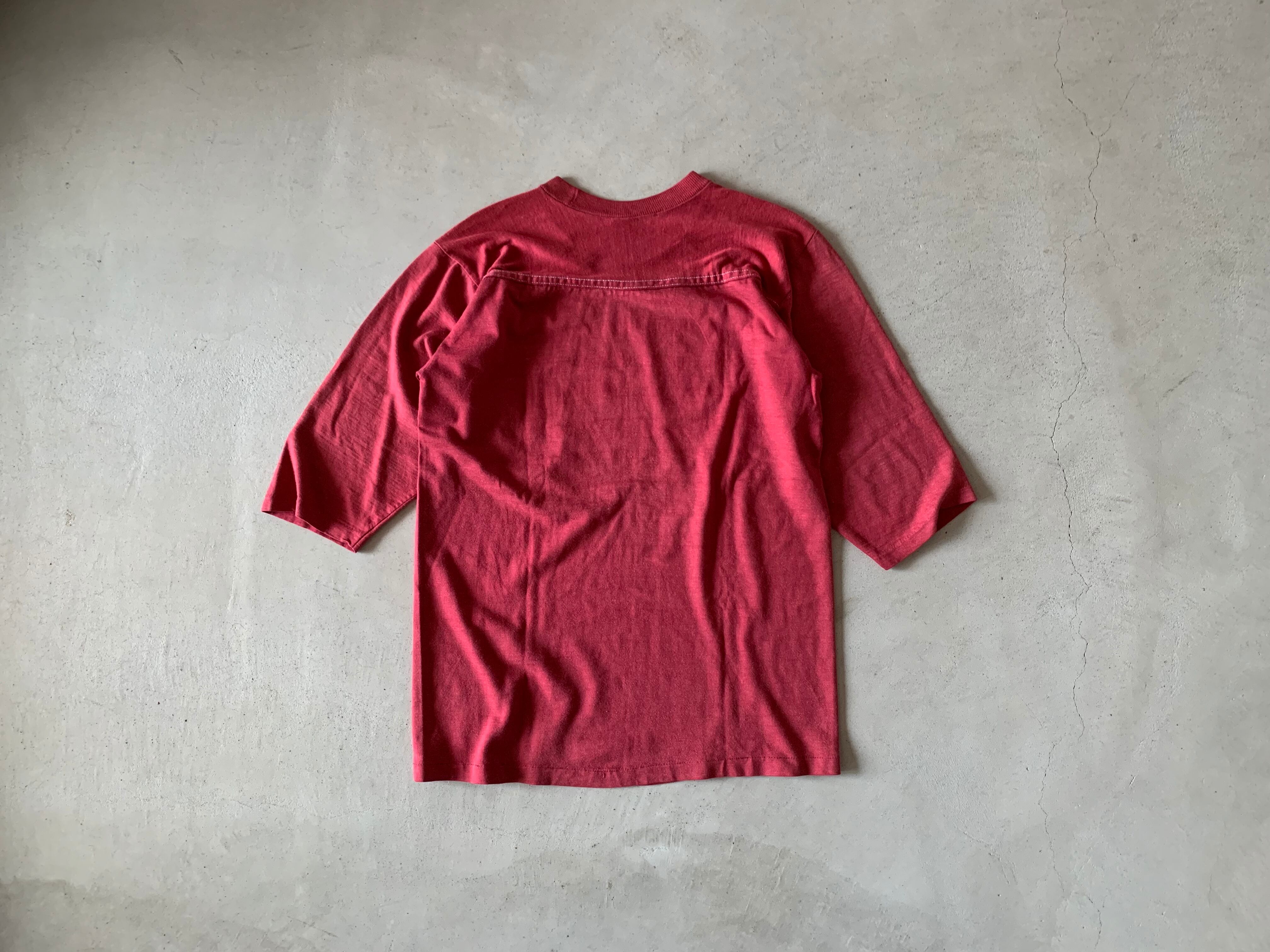 80年代のレトロ感漂うコットン50%、アクリル50%の生地を使用した、フットボールTシャツ。着心地が良く、シンプルなロゴプリントがたまらない一枚です。