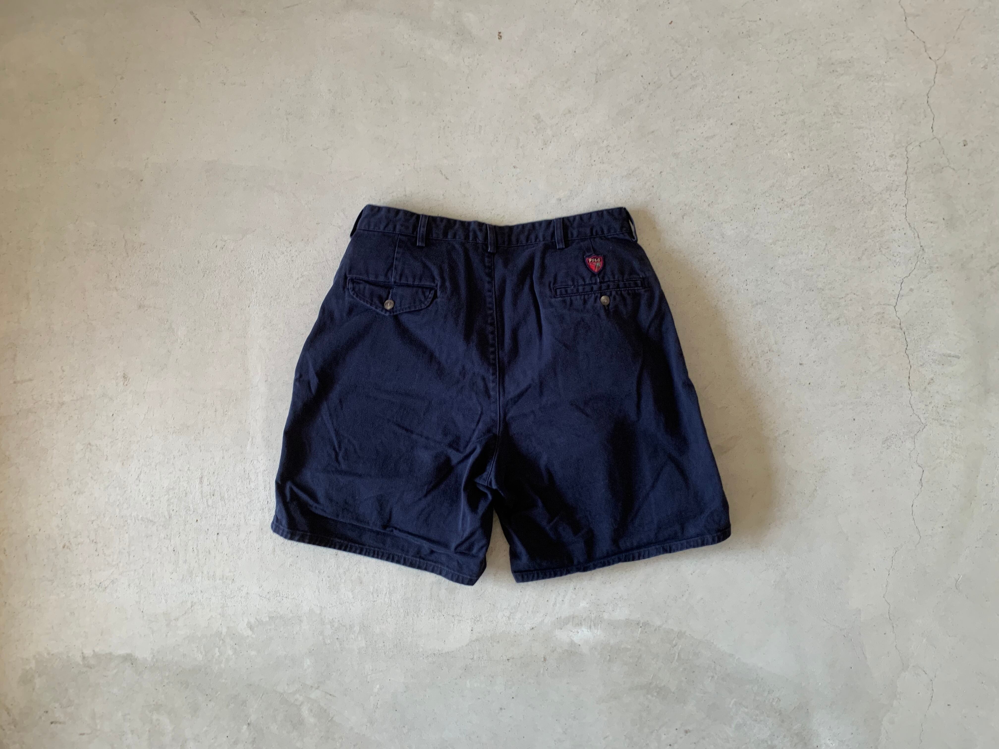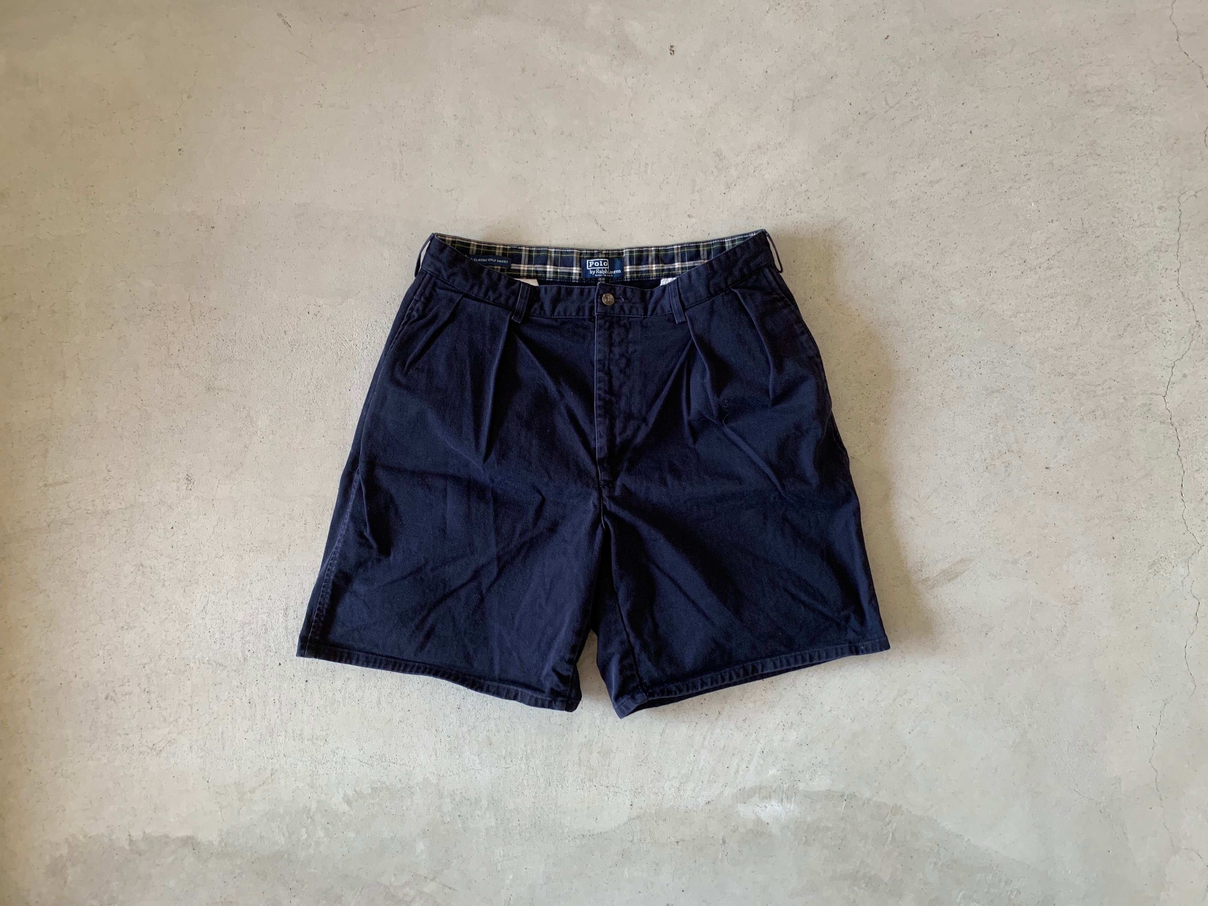 シンプルなクラシックゴルフスタイルのラルフローレンのショートパンツ。カラーはネイビー。ウエストにタックが入っており、履いた時のシルエットが今の気分にちょうどいいデザインです。