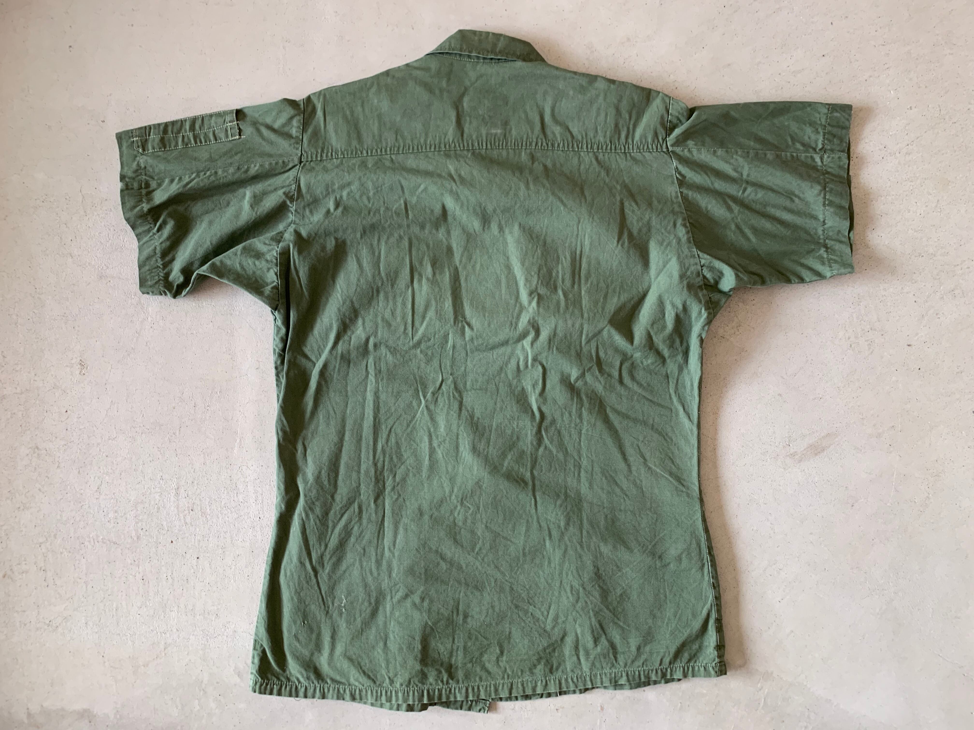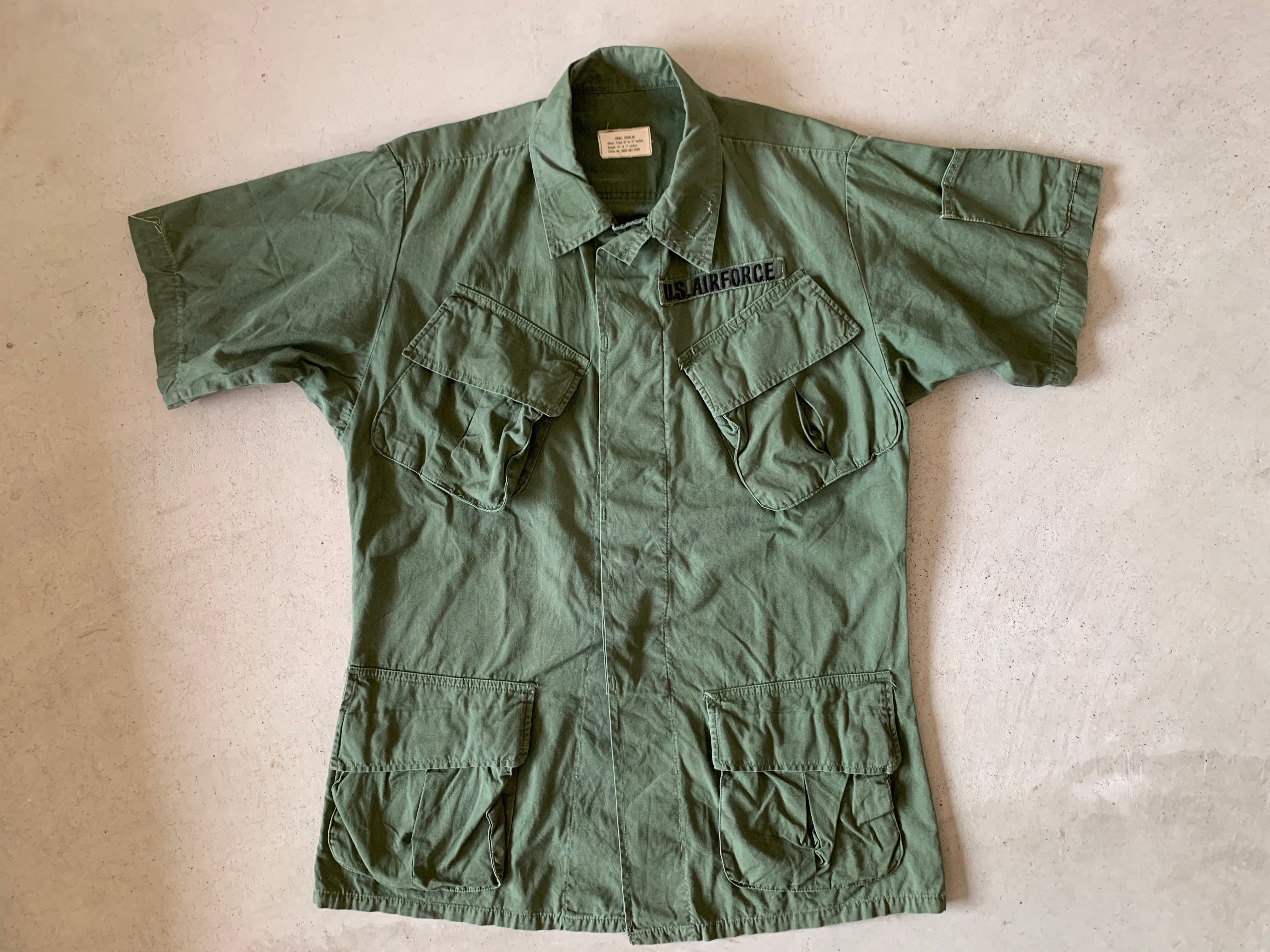 アメリカ軍がベトナム戦争で使用していたジャングルファティーグジャケット。こちらは69年製の5thモデルと呼ばれています。半袖にリメイクされております。