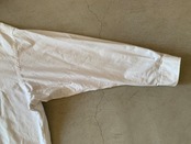 着た時に、横から見たAラインのシルエット、着丈の長さ、袖のクシュッとした具合など昨今のオーバーサイズスタイリングに好相性の一枚。