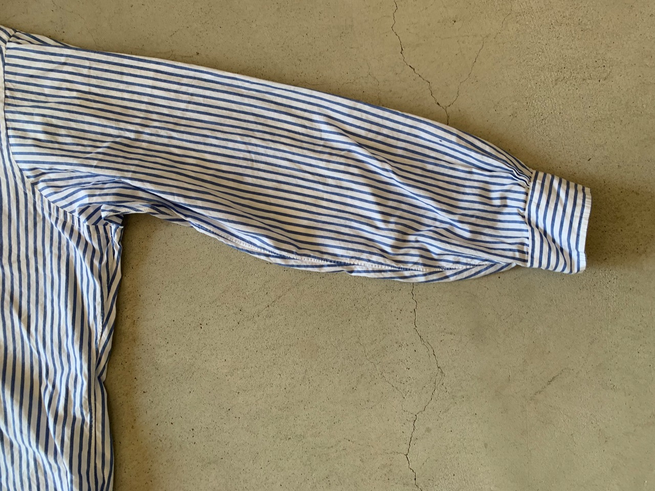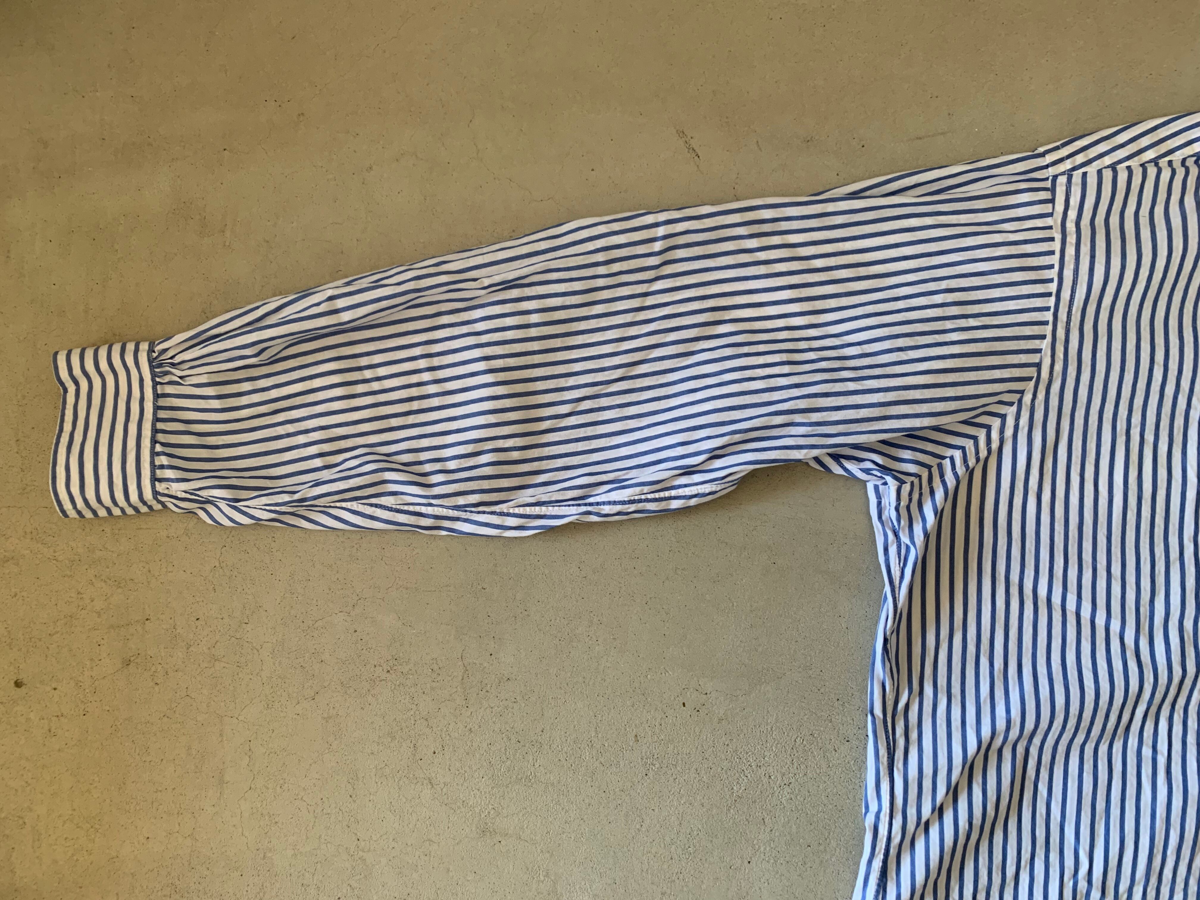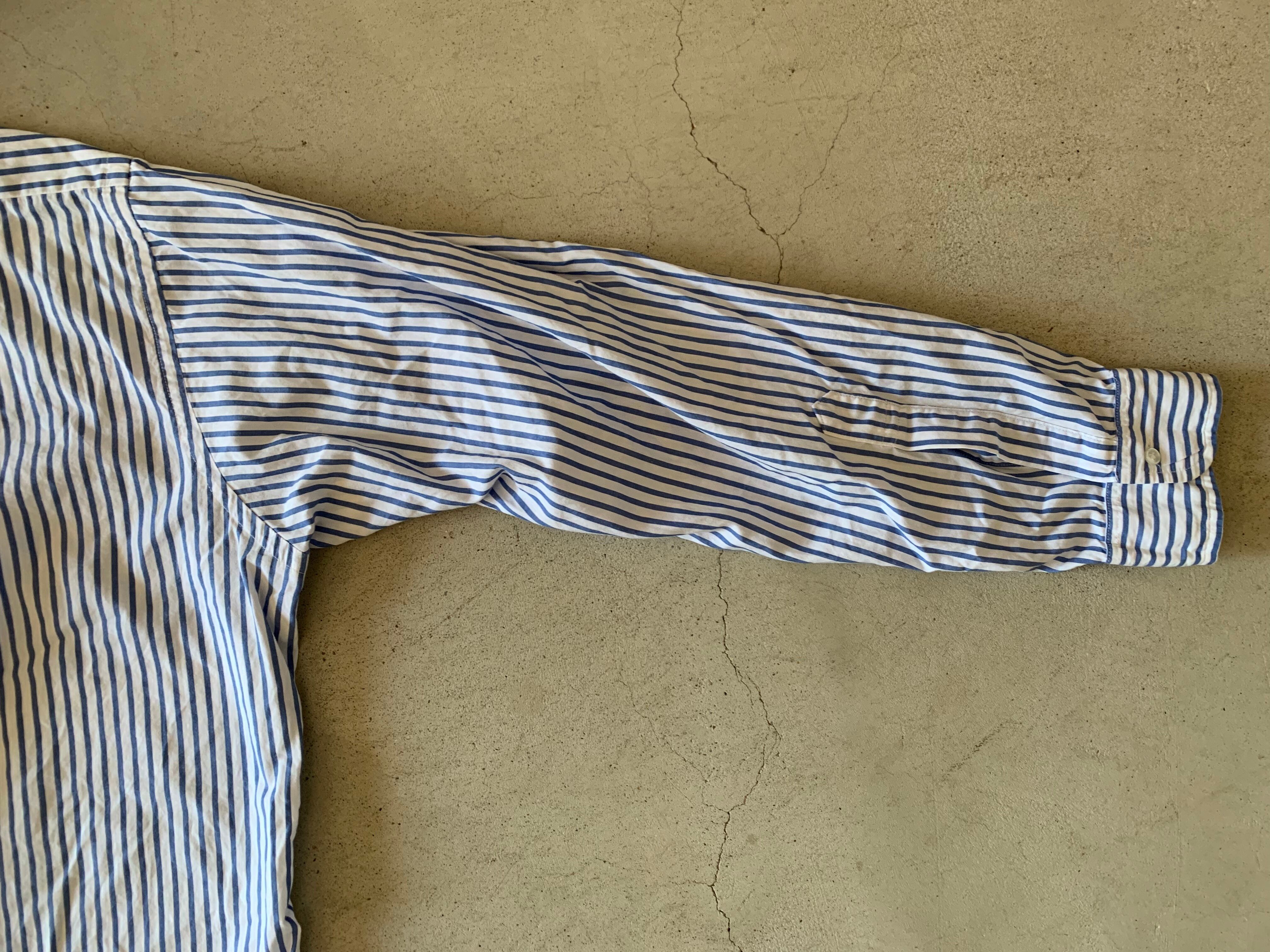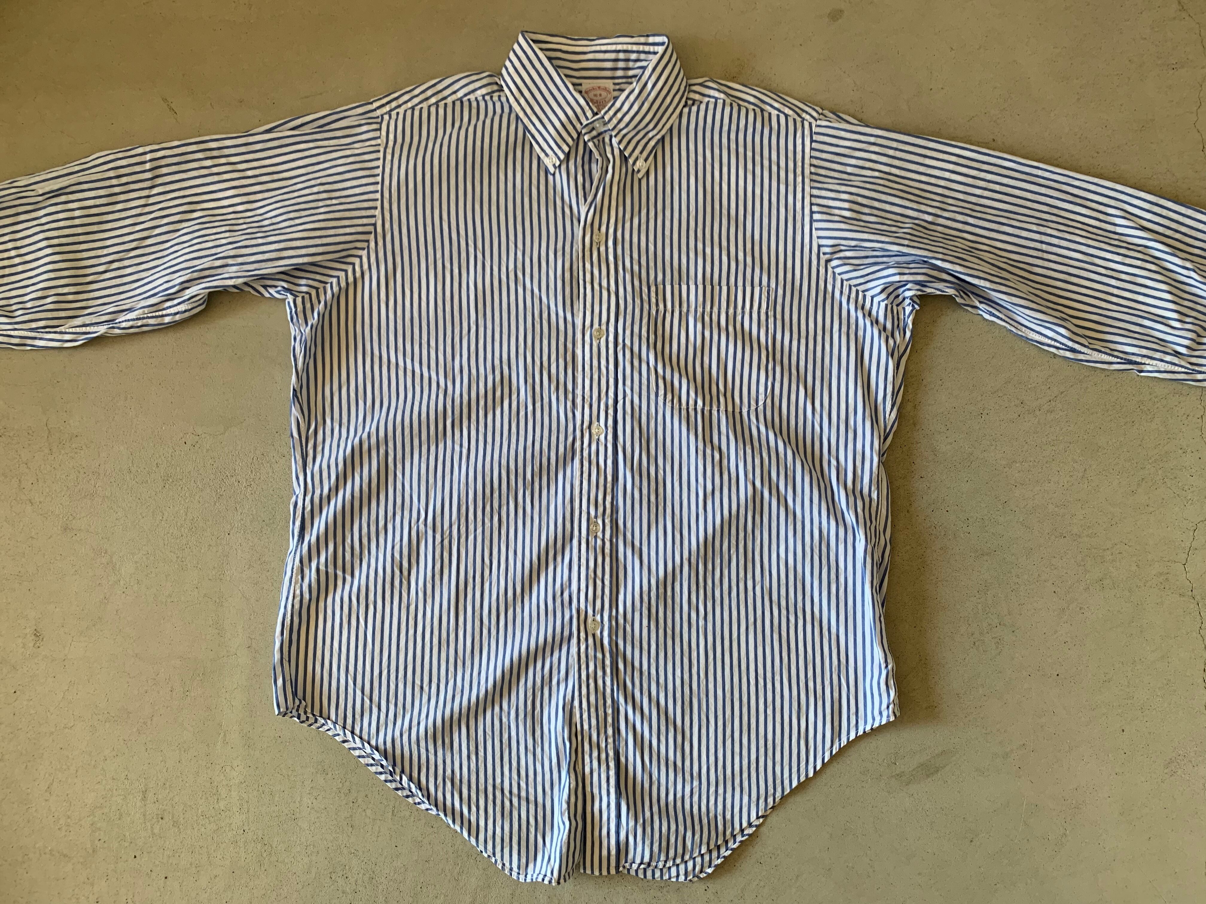 ブルックスブラザーズの70年代頃、米国製のストライプシャツ。フロントボタンは6つ。裾のデザインも、サイドのスリットが80年代頃の物と比べるとかなり深くなっております。