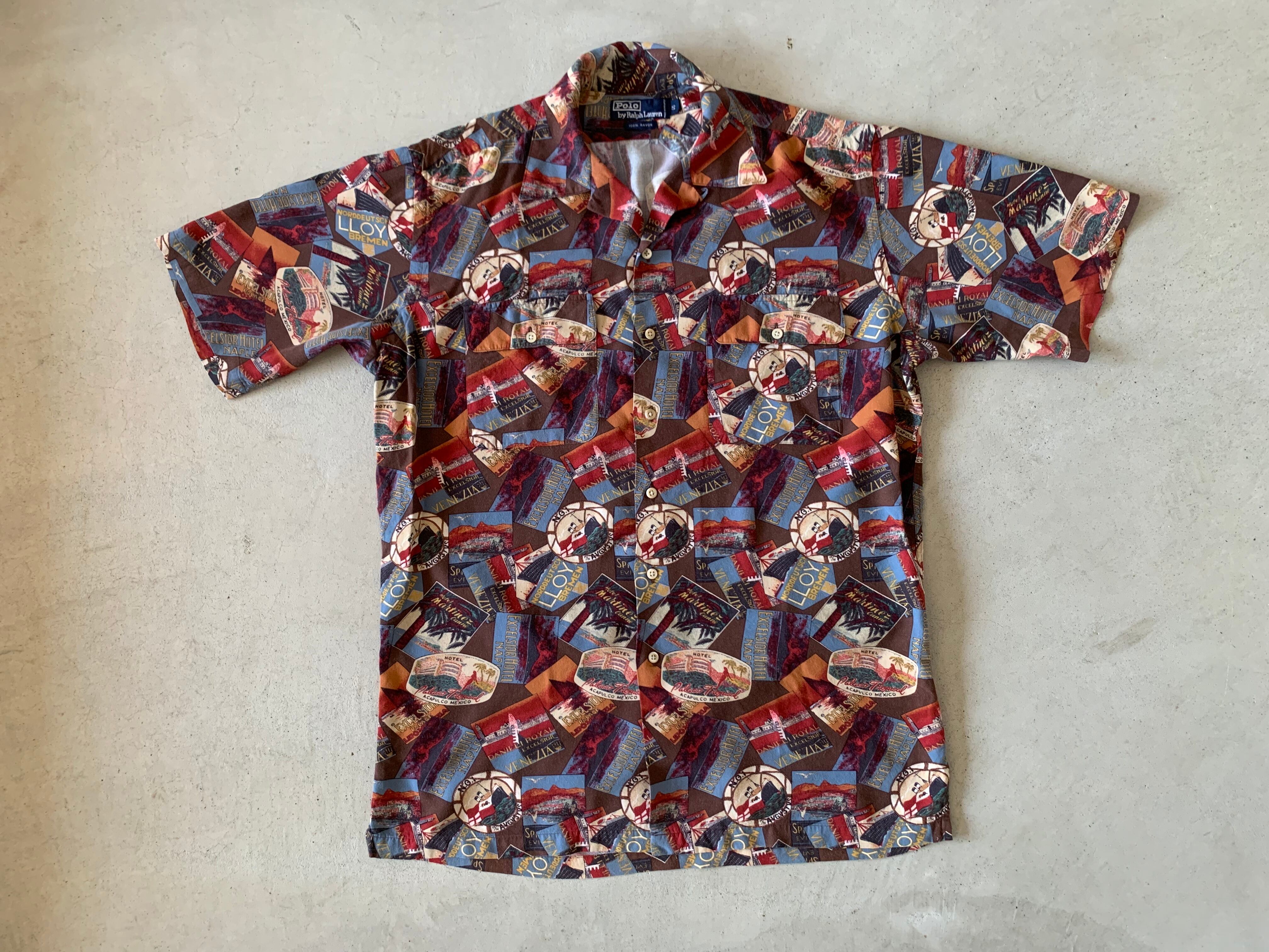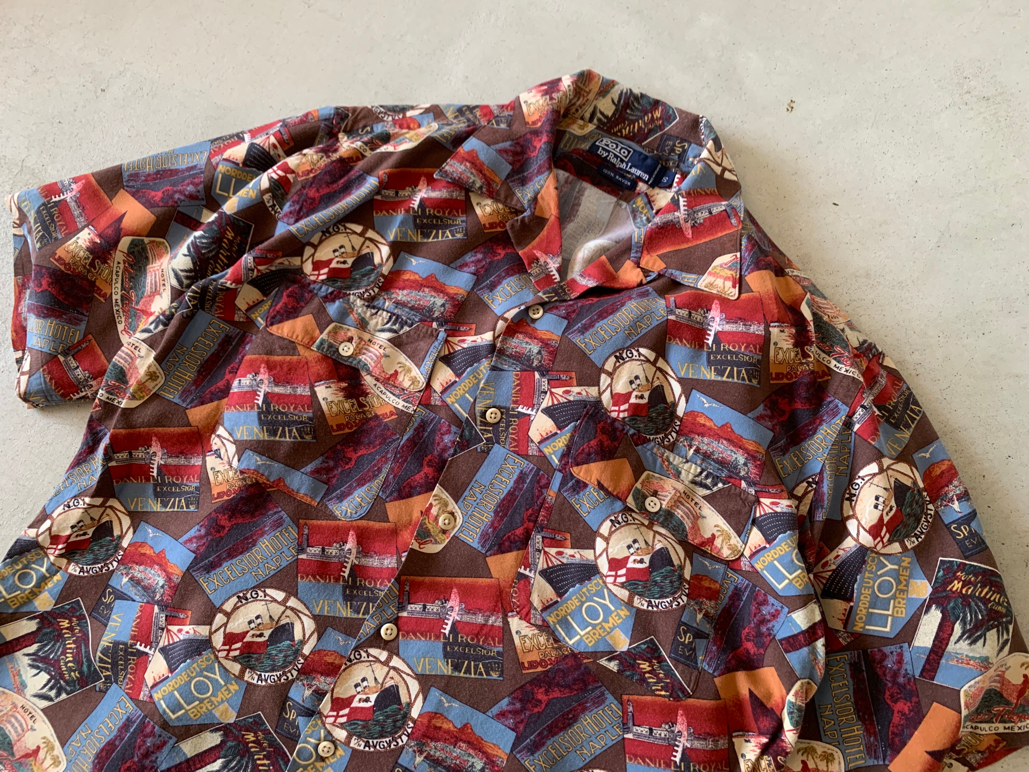 90年代頃のラルフローレン、リゾート地の絵柄や地名が入った総柄のレーヨン100%のシャツ。