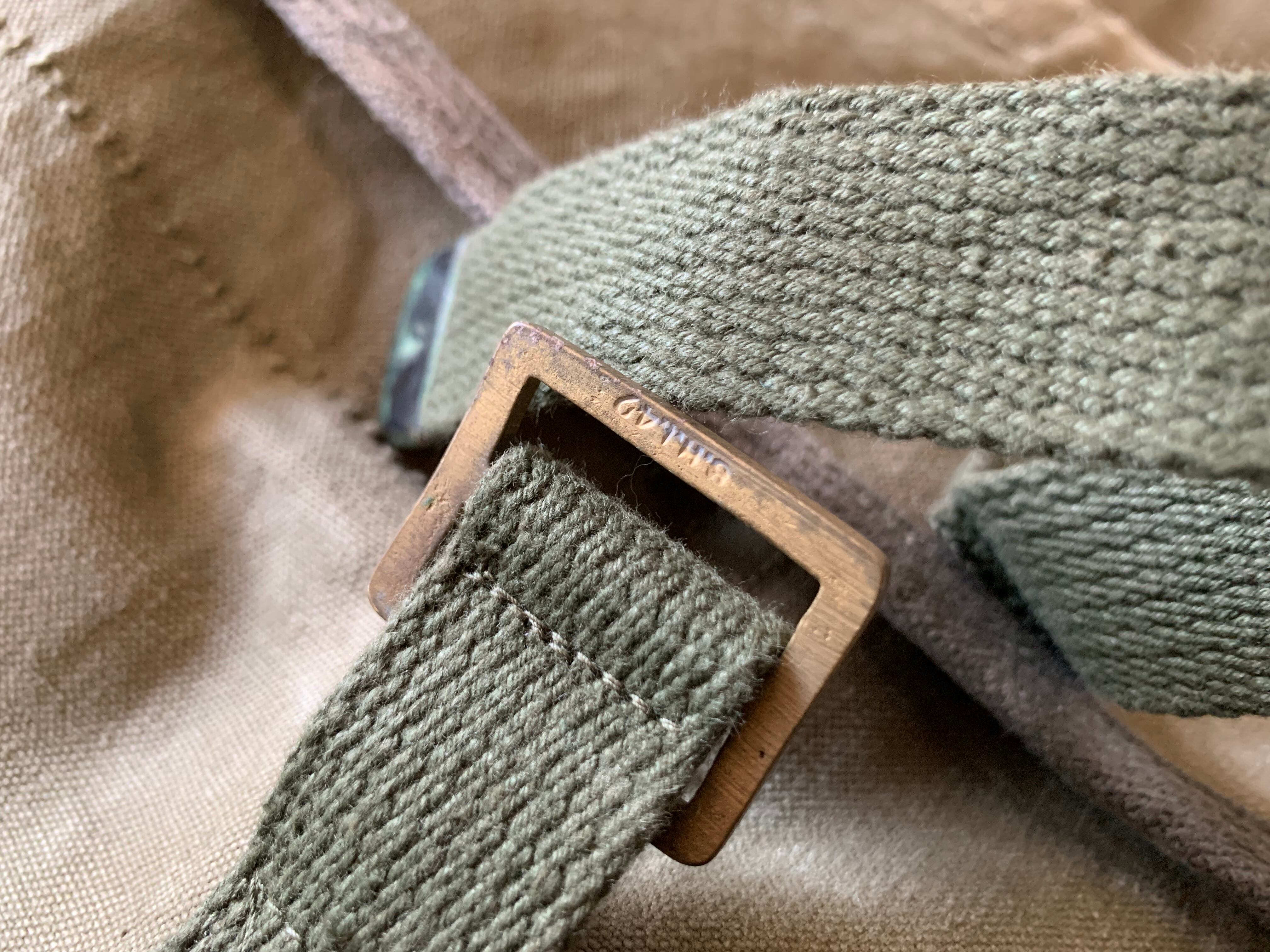 ショルダーベルトも同じフランス軍のダッフルバッグで使われて物を再利用しています。
