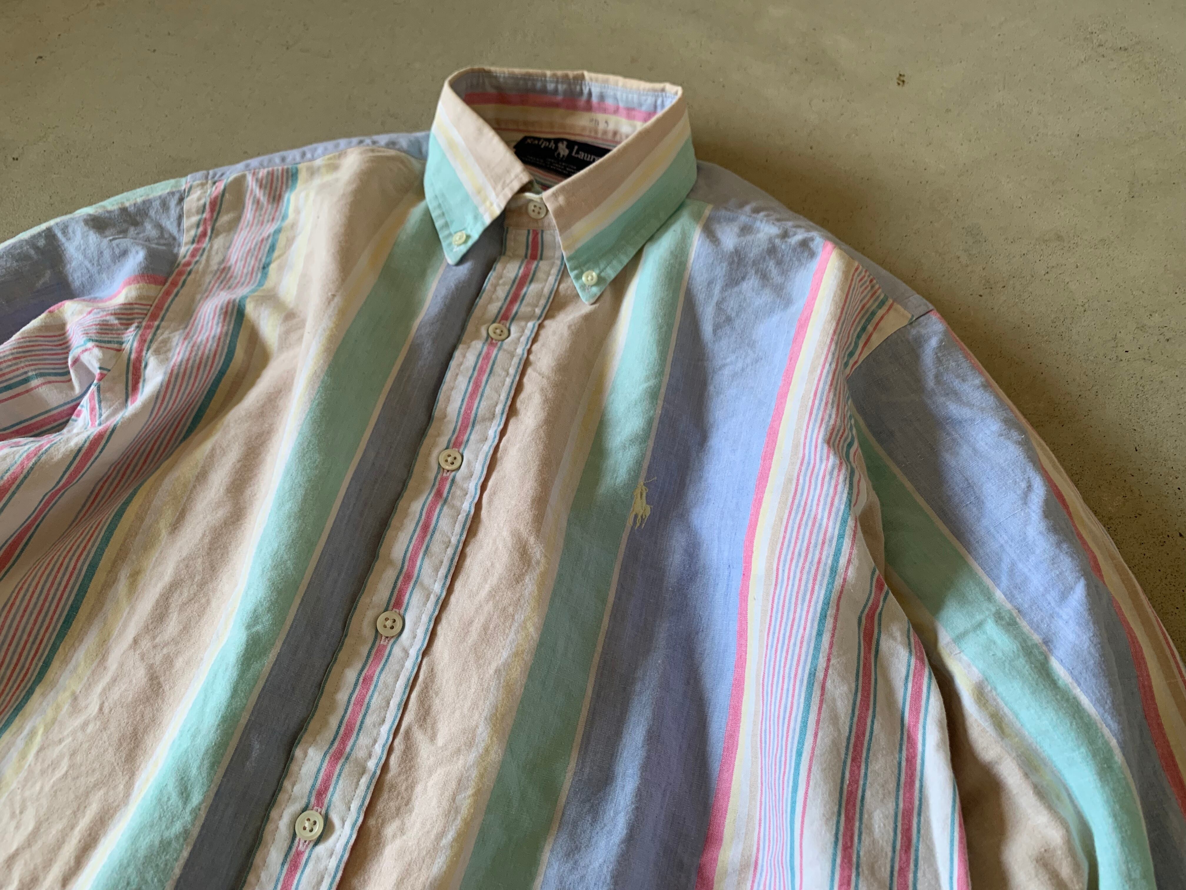 90年代オールドタグがつくラルフローレンのマルチストライプシャツ。