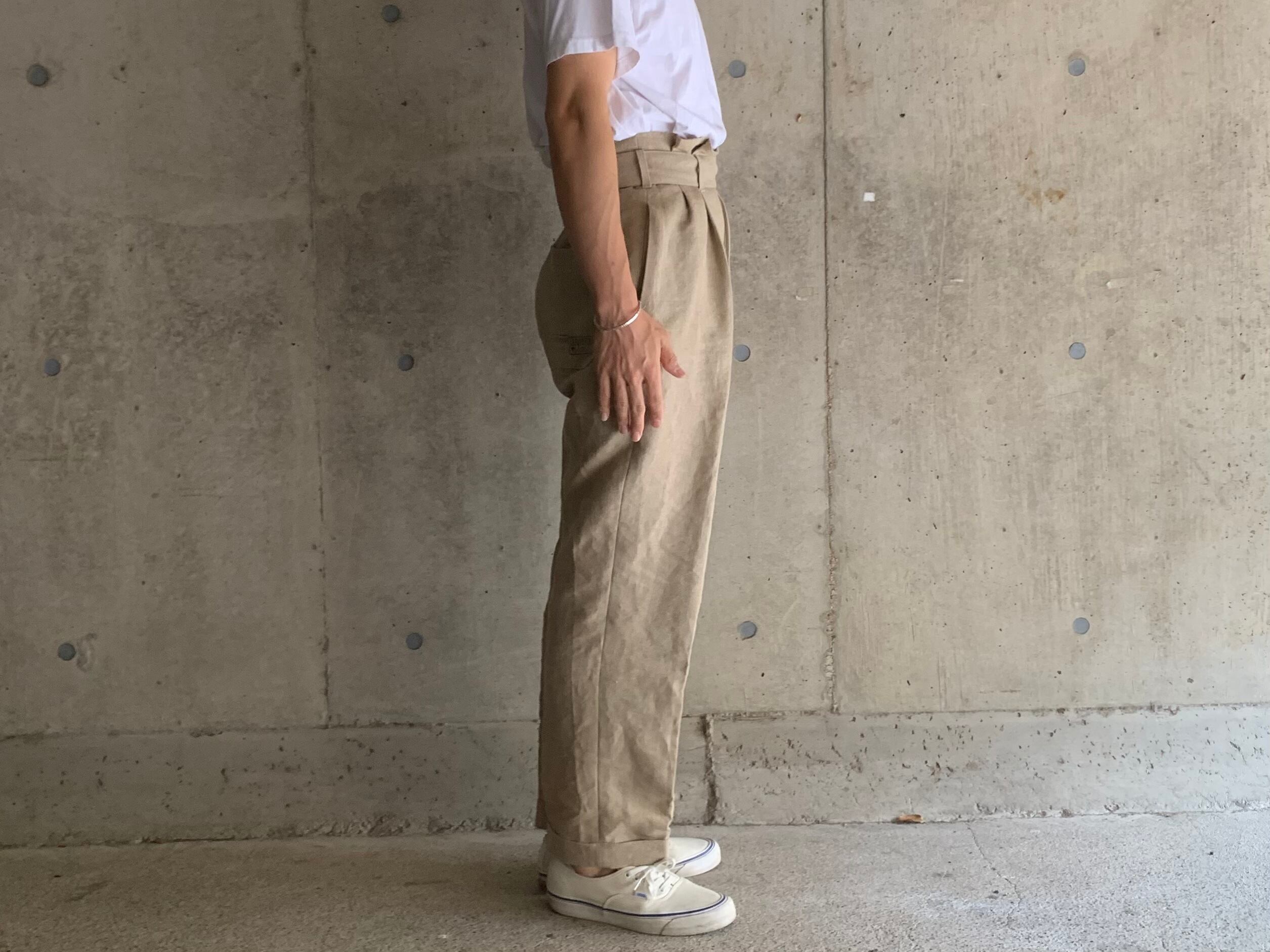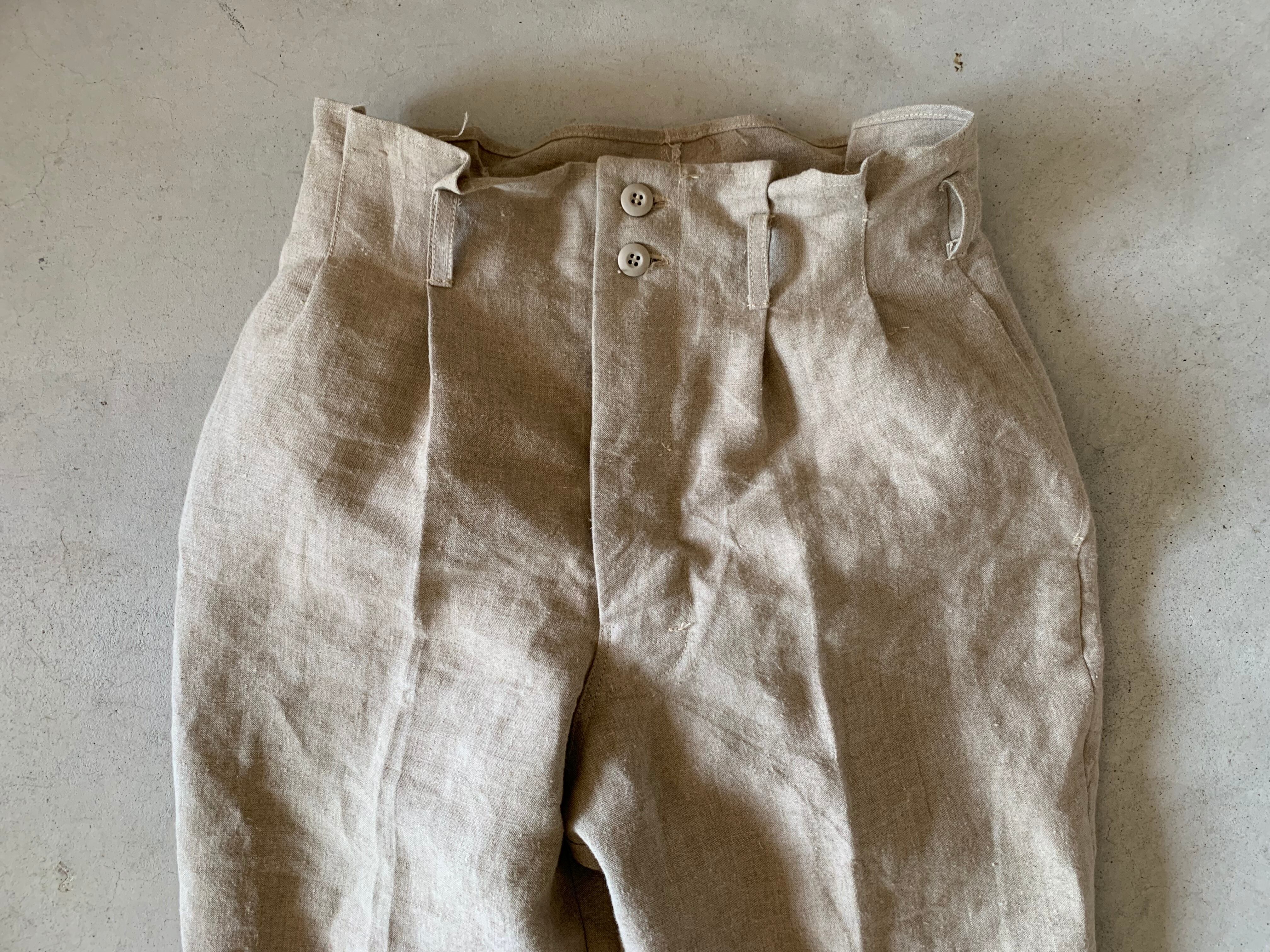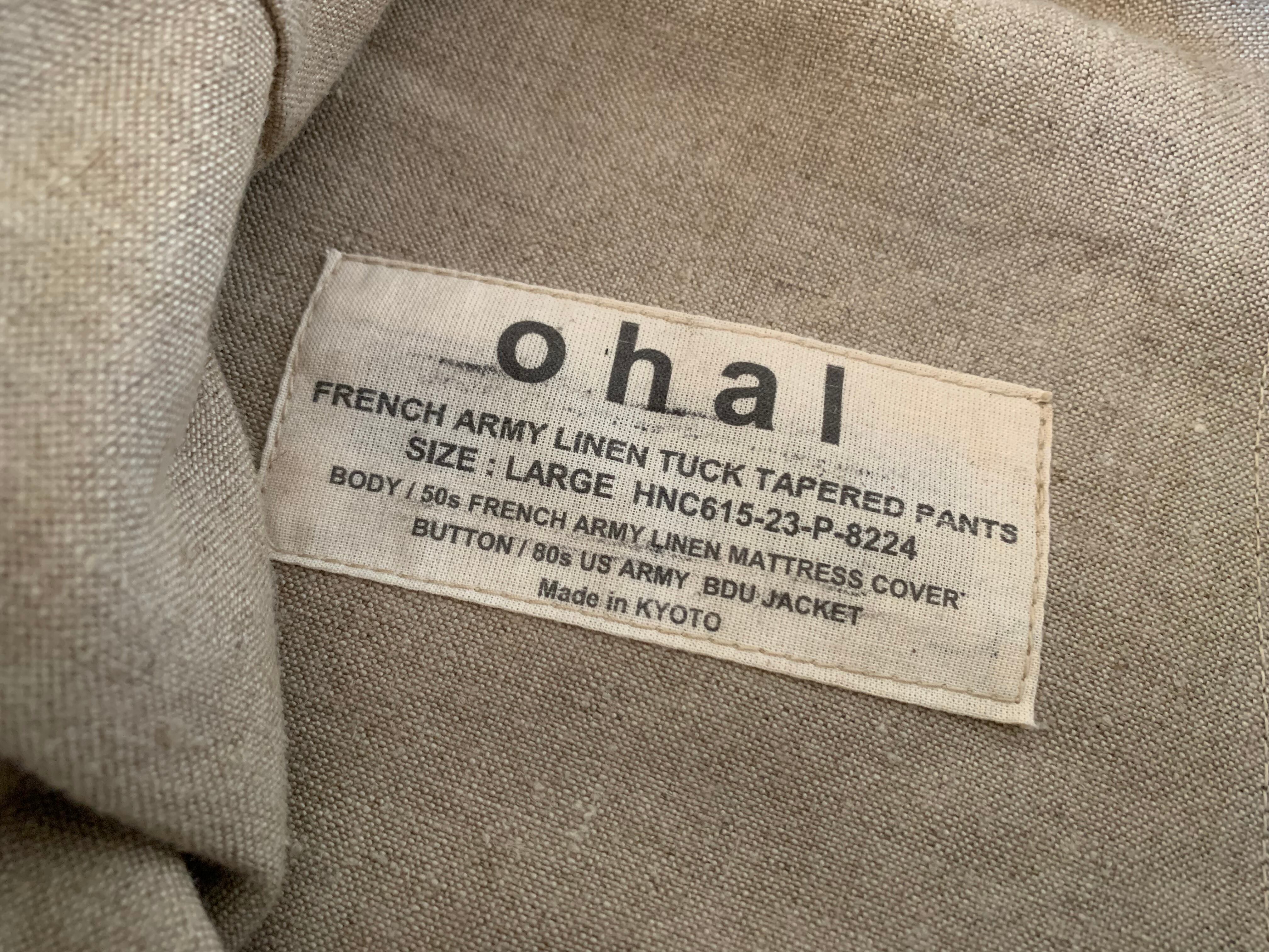ohal / LARGE French Army Linen Tuck Tapered Pants