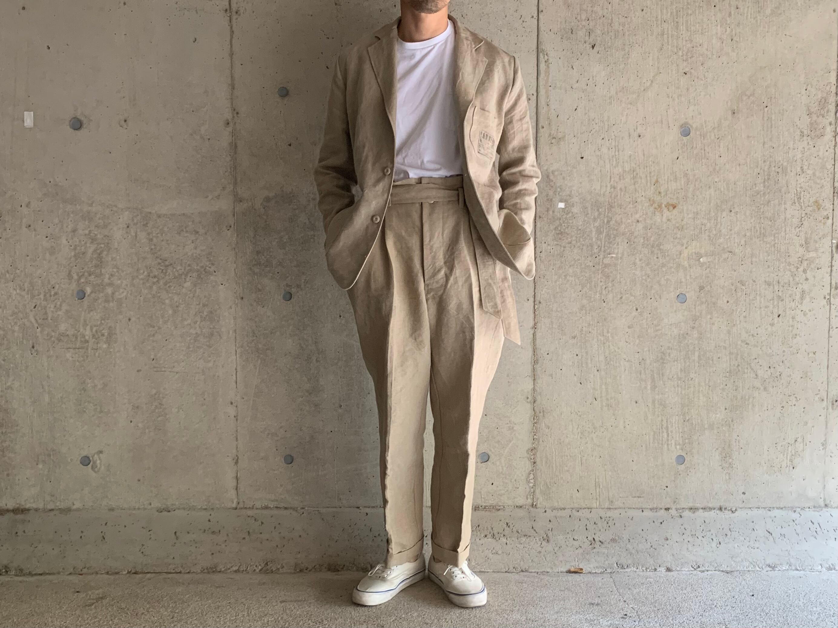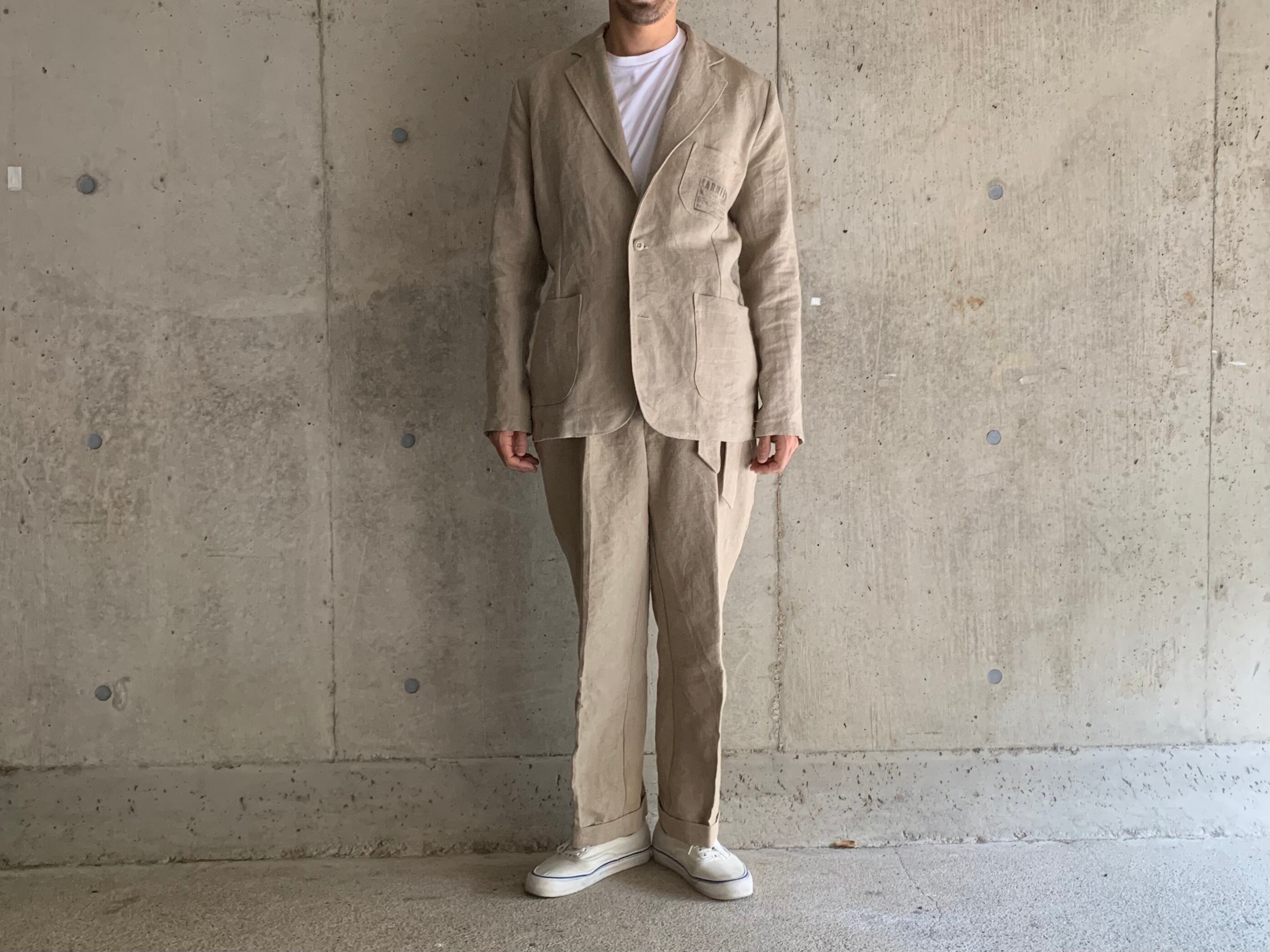 当店で販売している同じ生地で作ったパンツとセットアップで着用してもグッドです。(全て違う個体で作成しているため、微妙に色が違います。完璧なセットアップをお求めの方は推奨いたしません。)