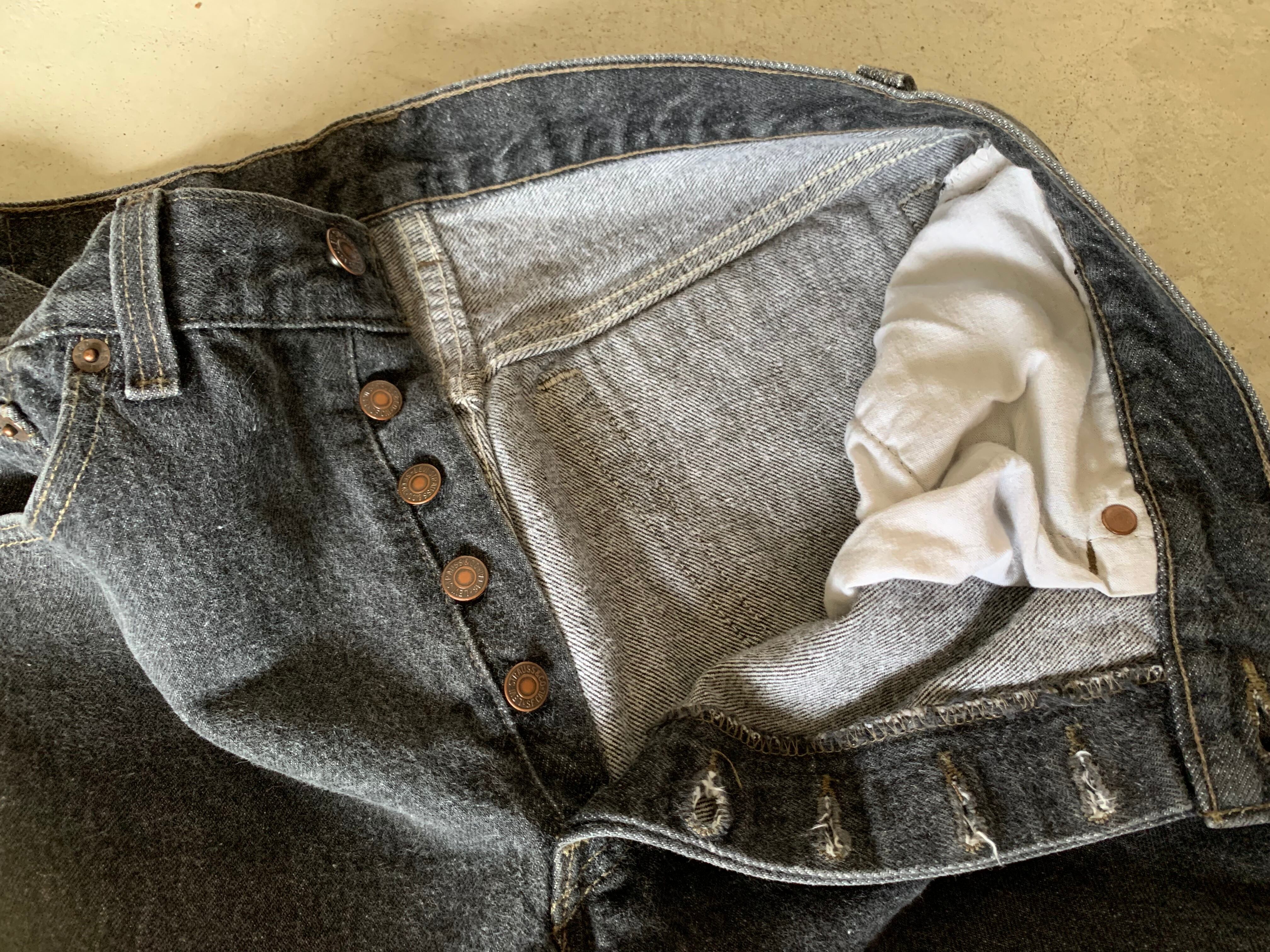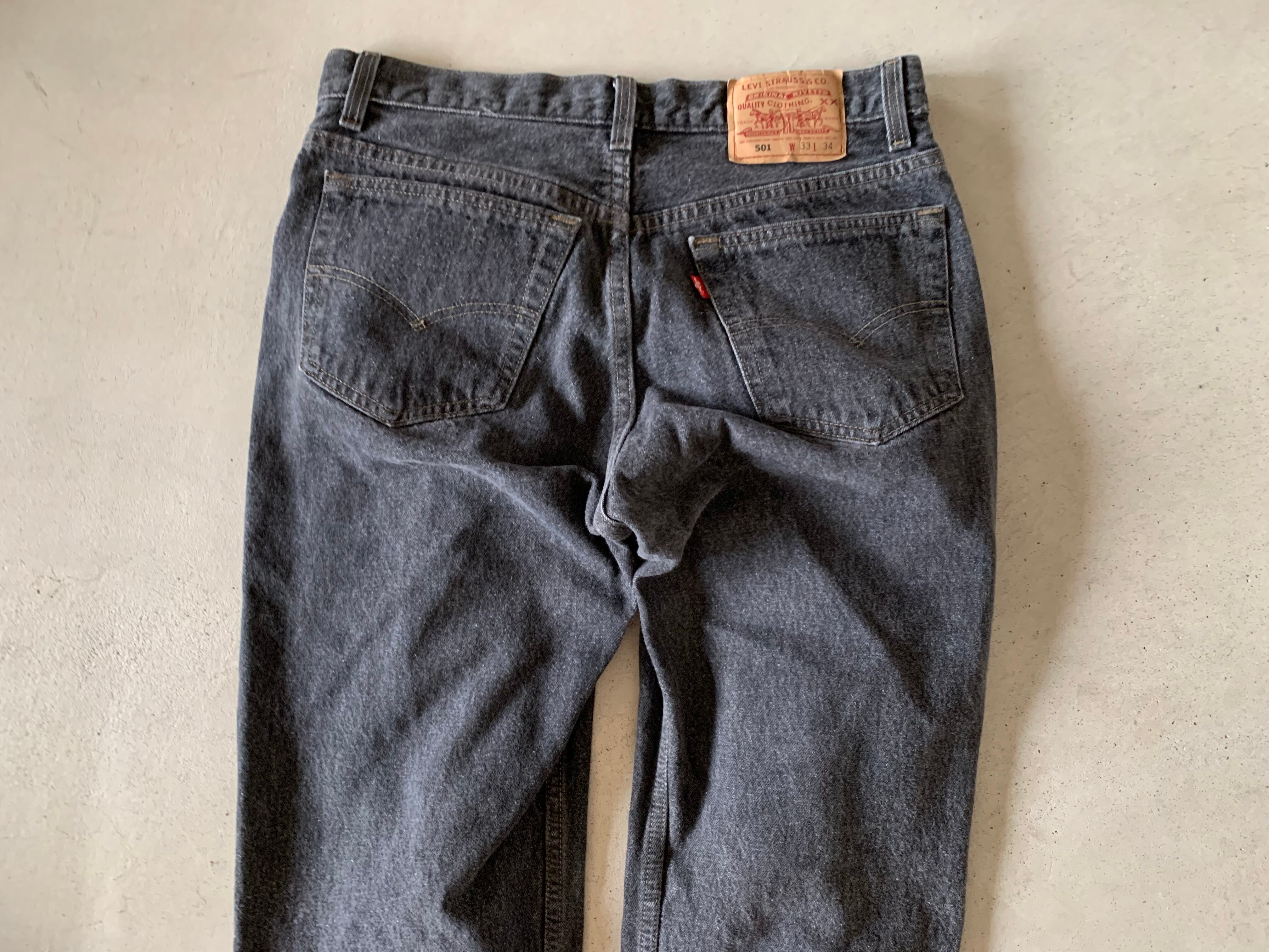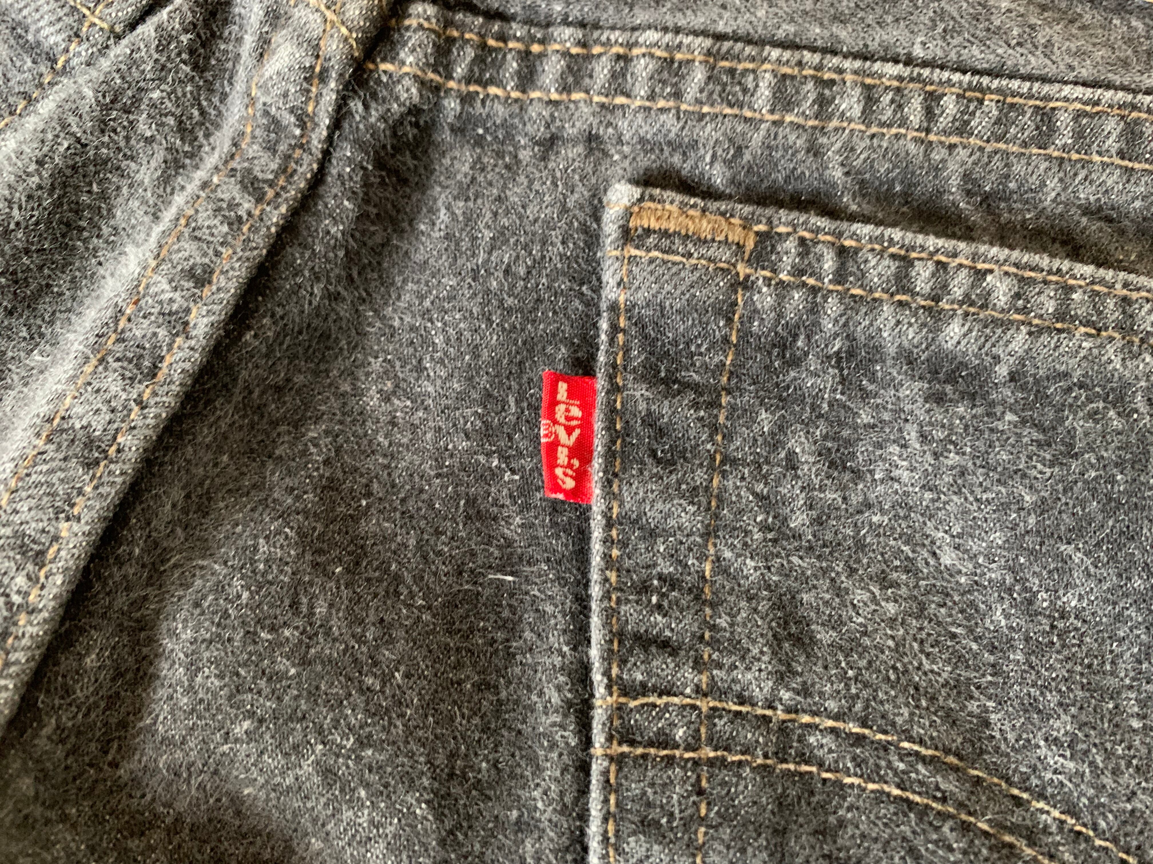 リーバイス501、アメリカ製、先染めのブラックデニムです。値段が高騰しているブラックデニムですが、この先染めのブラックデニムはなかなか出会えません。