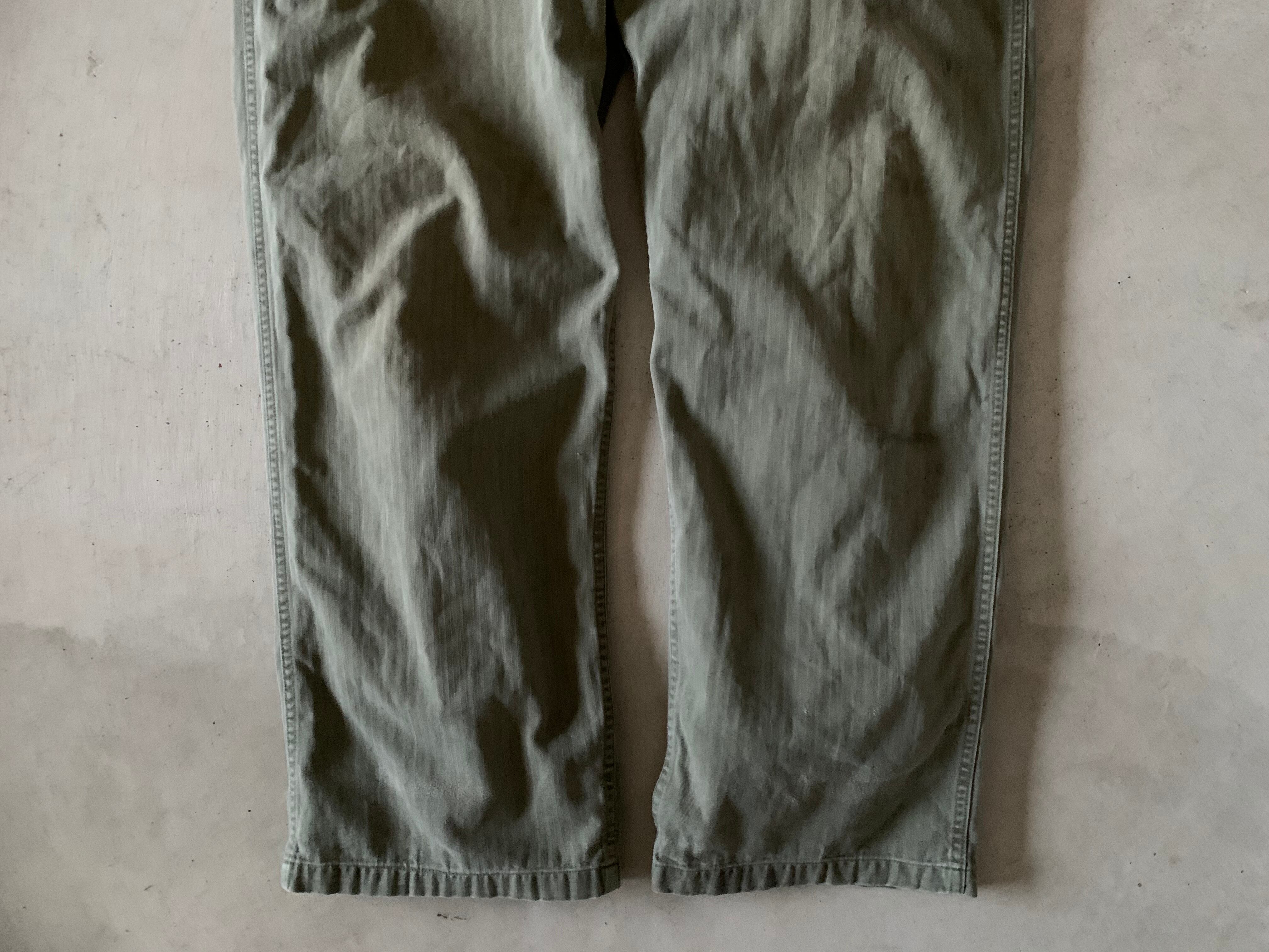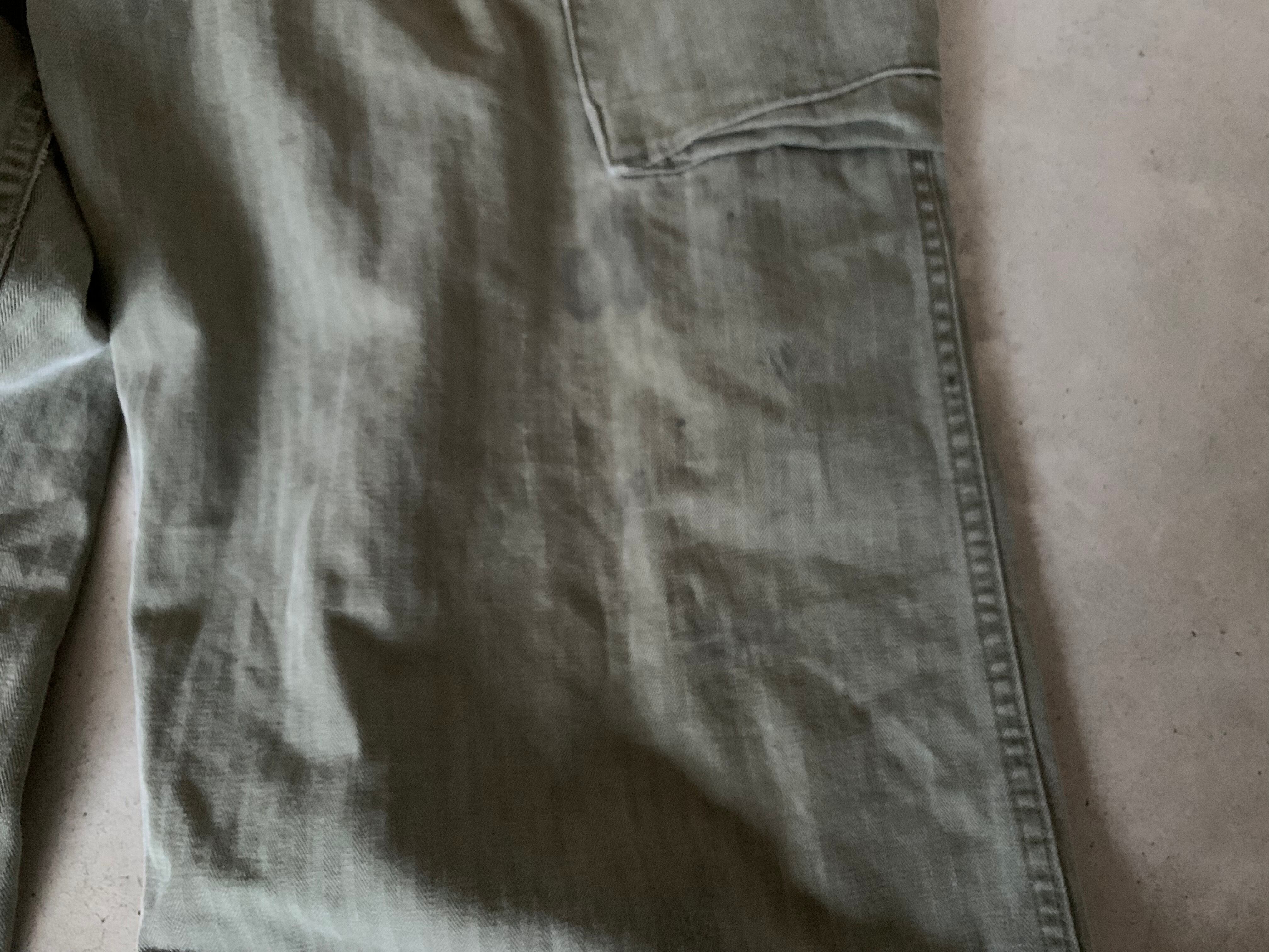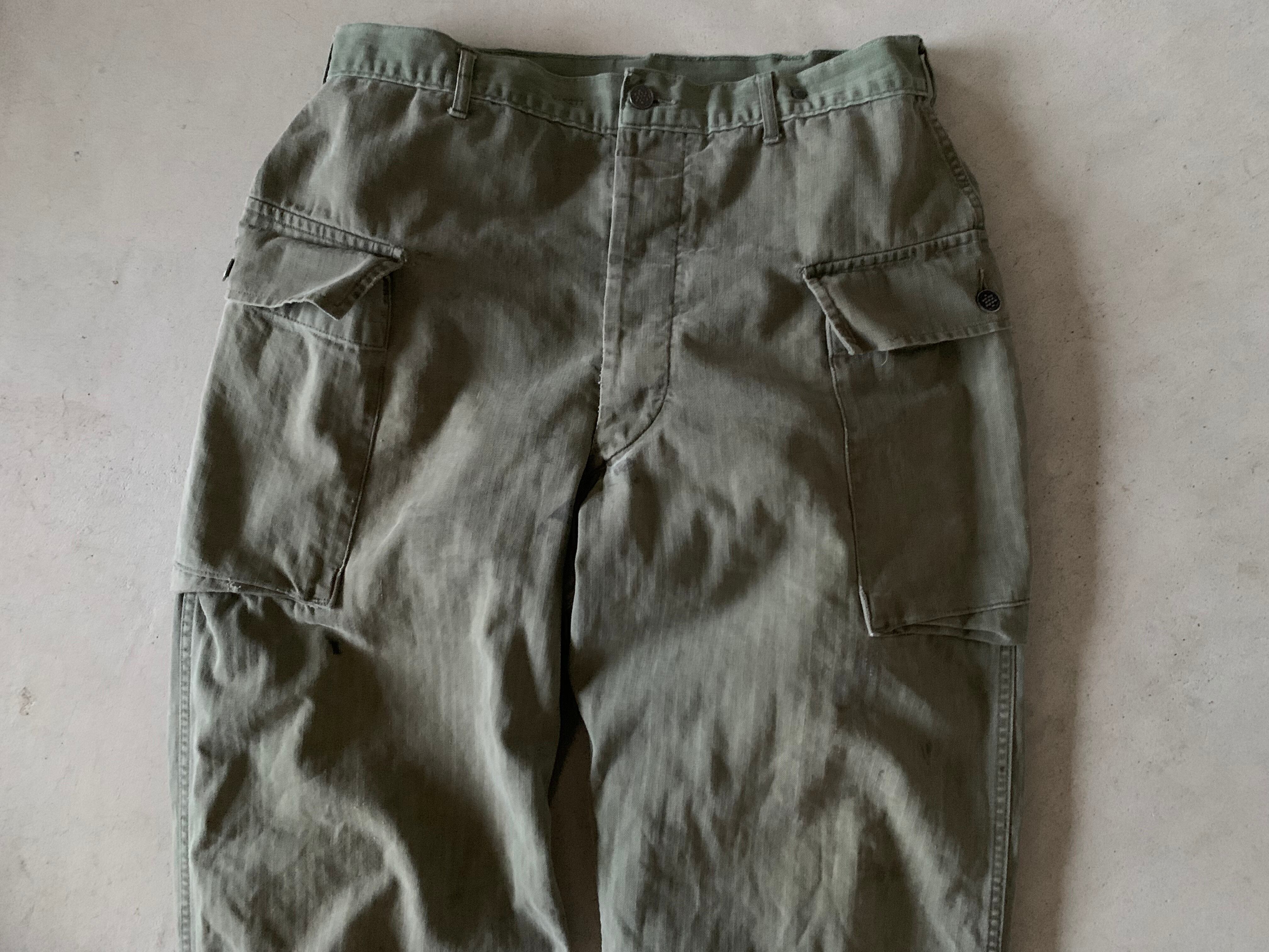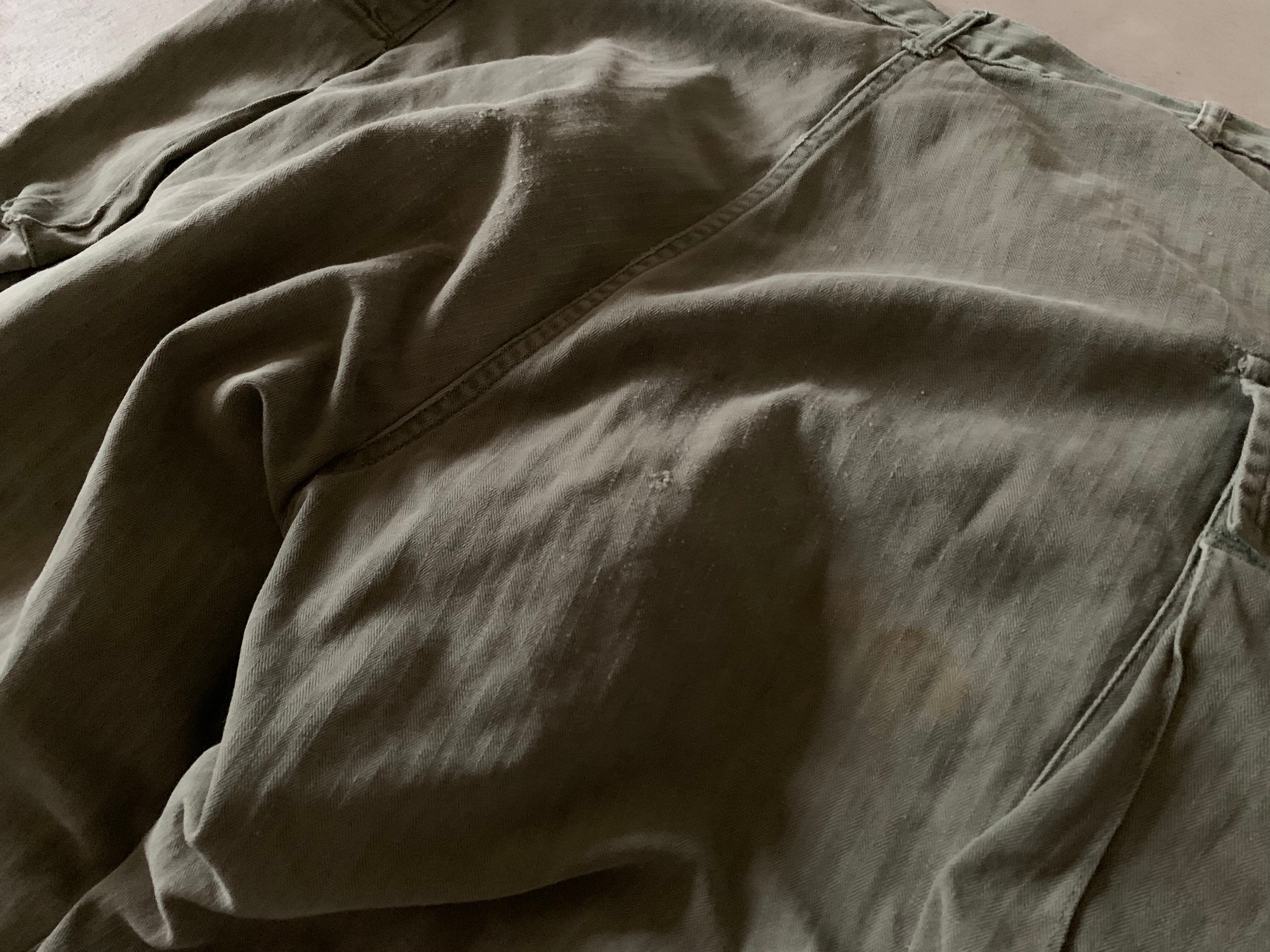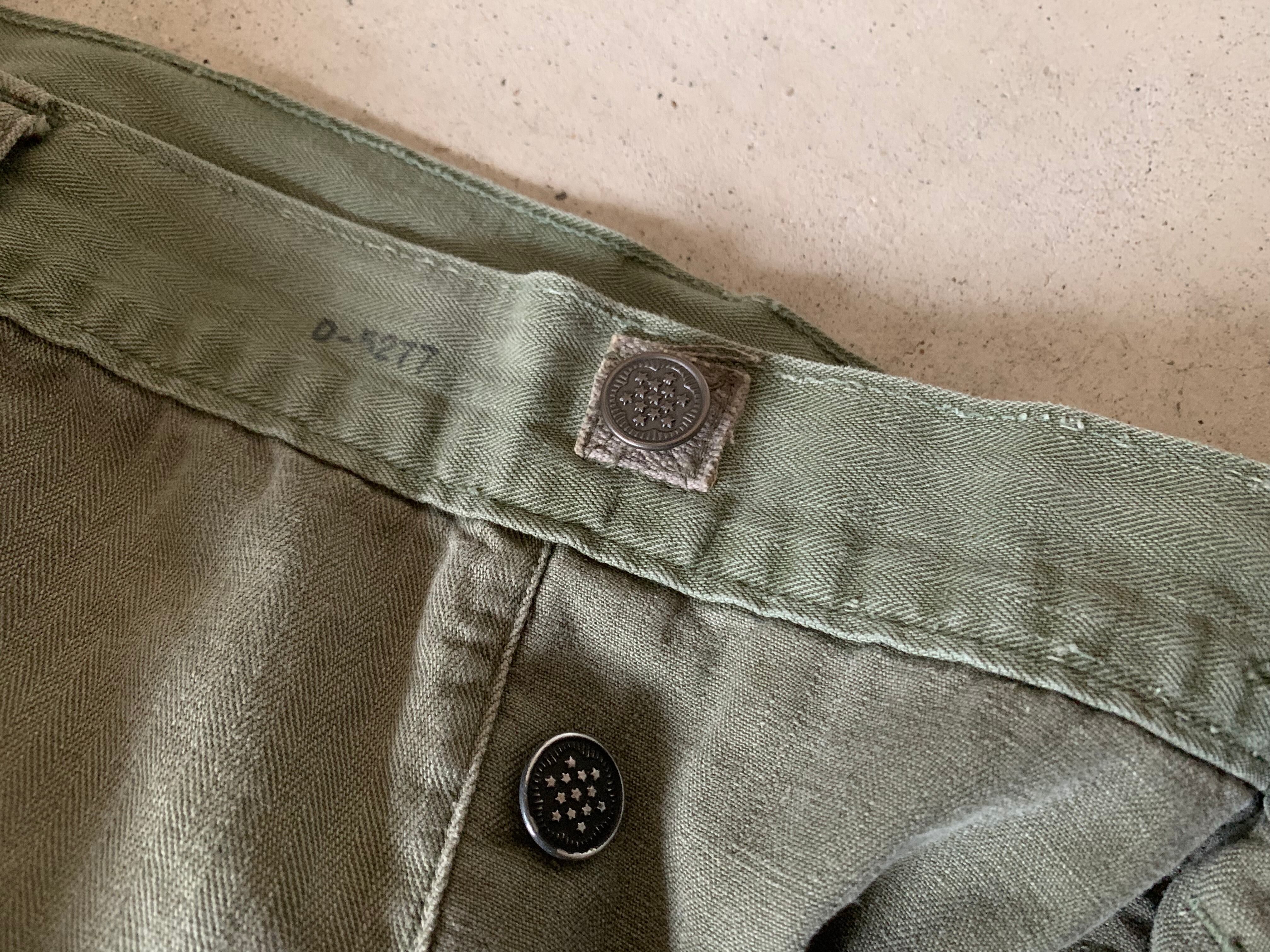 40年代のアメリカ軍、M-43ヘリンボーンツイルパンツ。サイドの大きなポケットが特徴的で人気のパンツです。ストレートで極太なシルエットも今の気分にちょうど良いです。