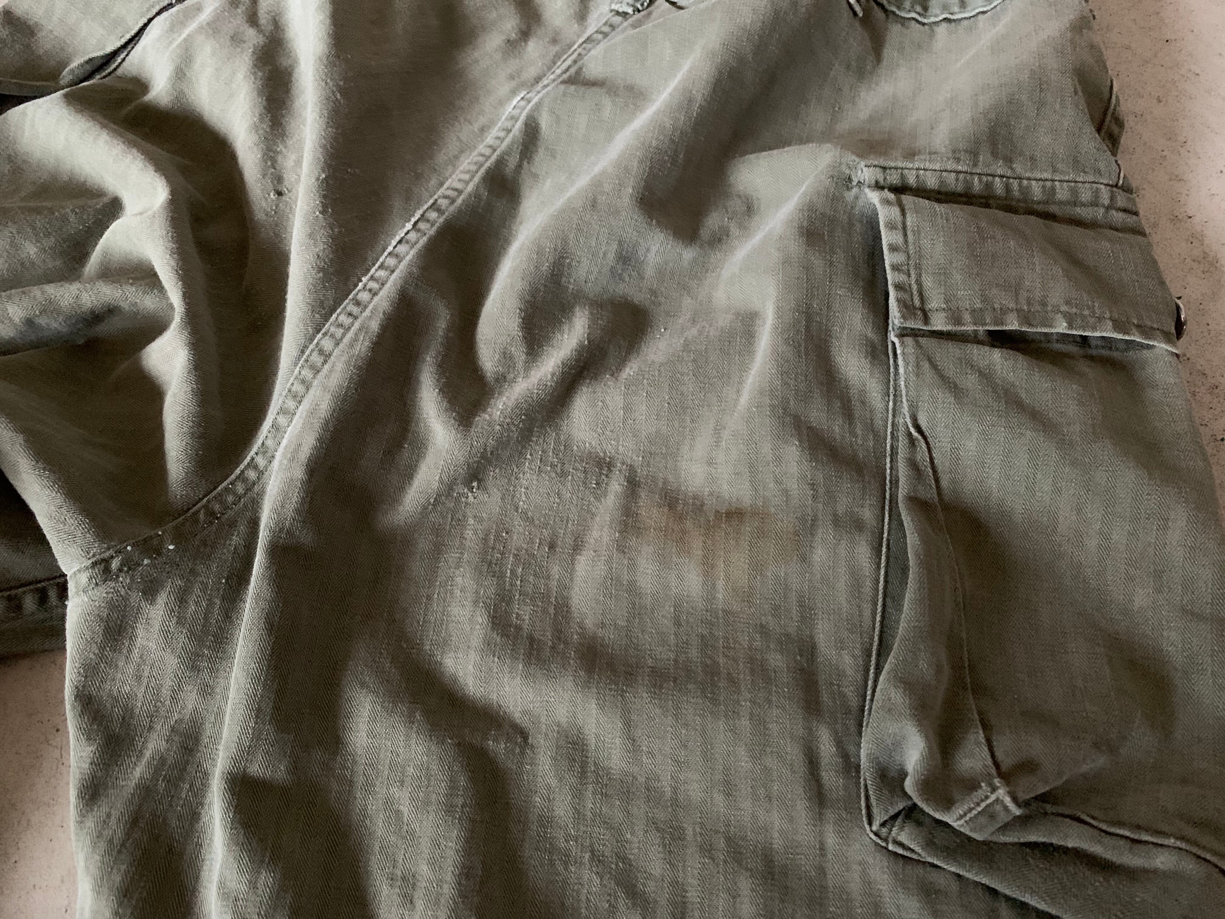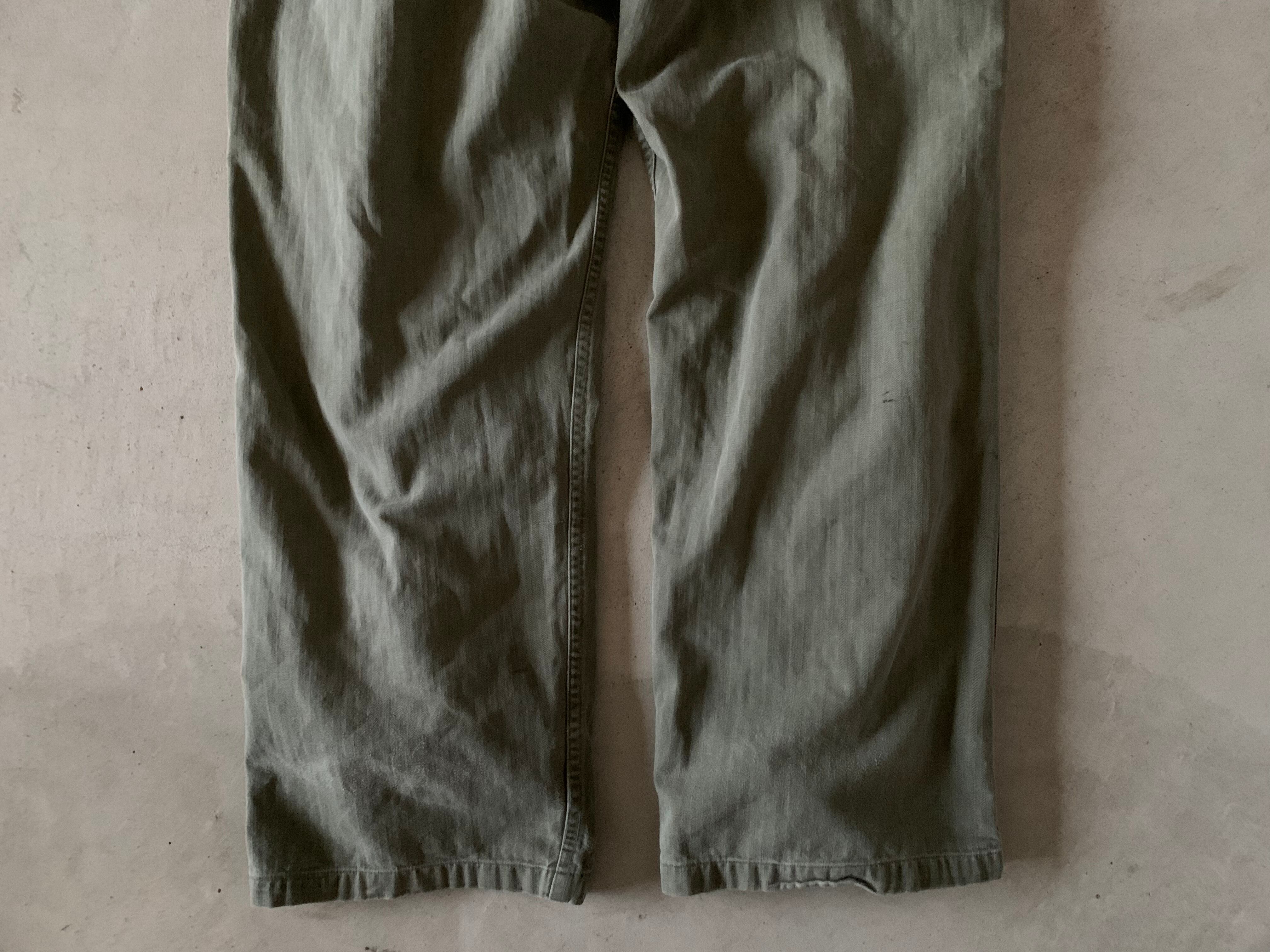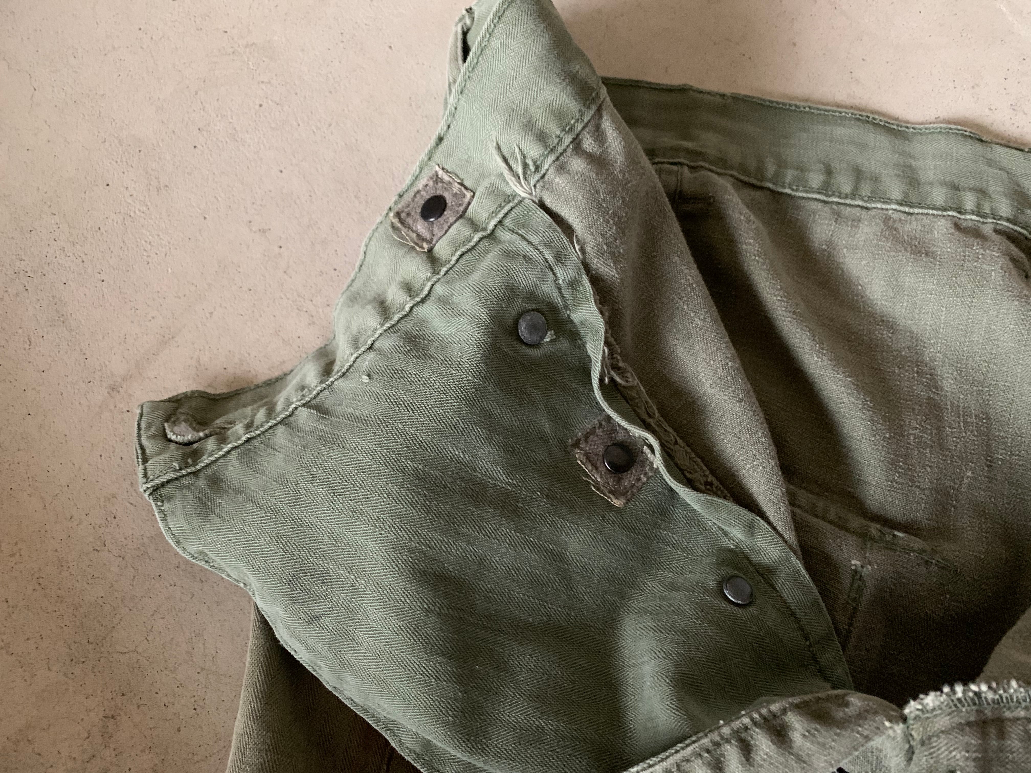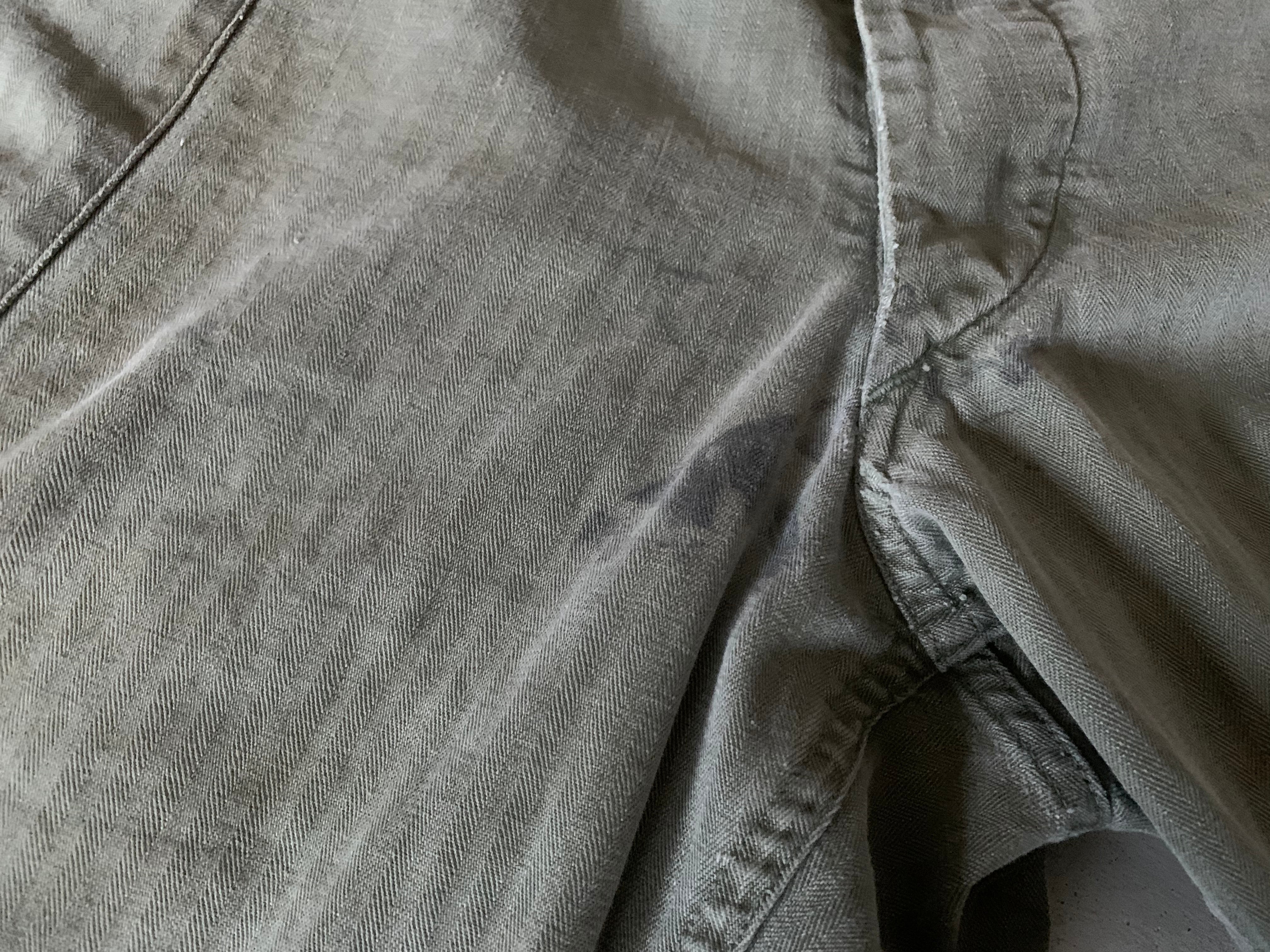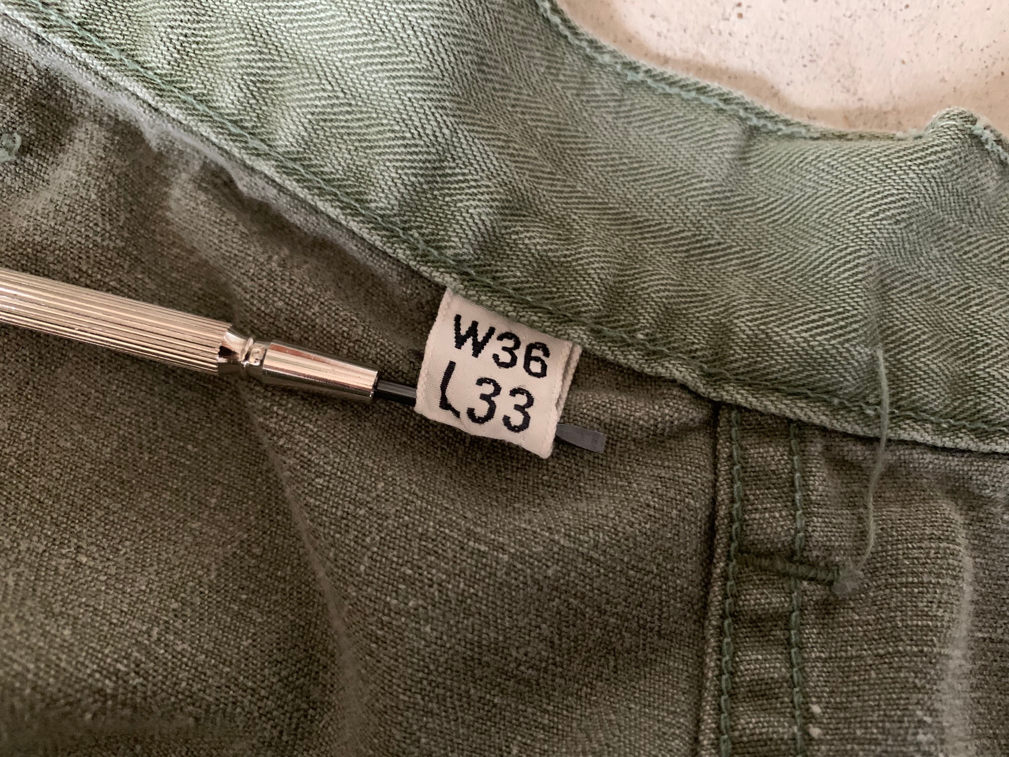 40年代のアメリカ軍、M-43ヘリンボーンツイルパンツ。サイドの大きなポケットが特徴的で人気のパンツです。ストレートで極太なシルエットも今の気分にちょうど良いです。