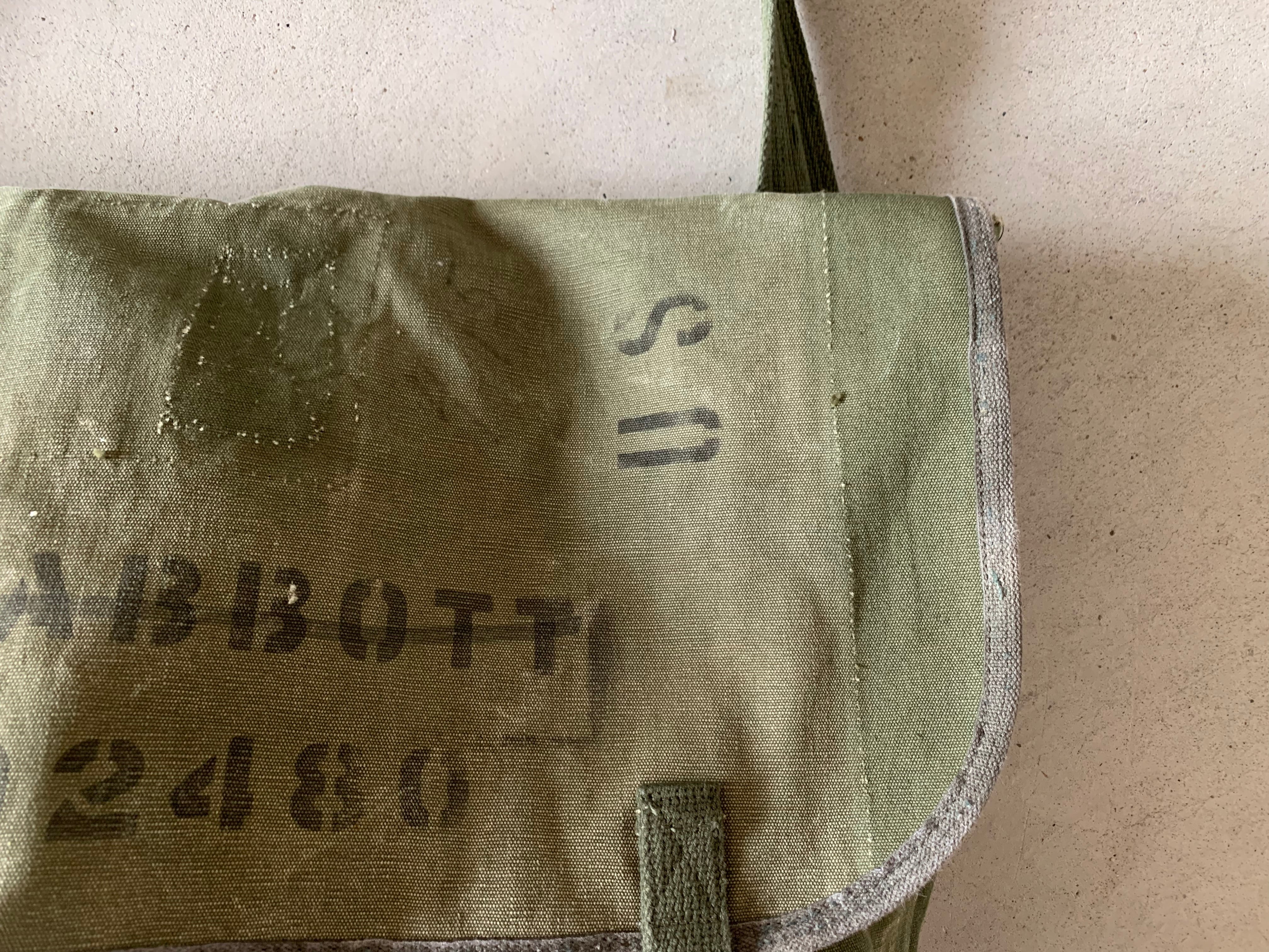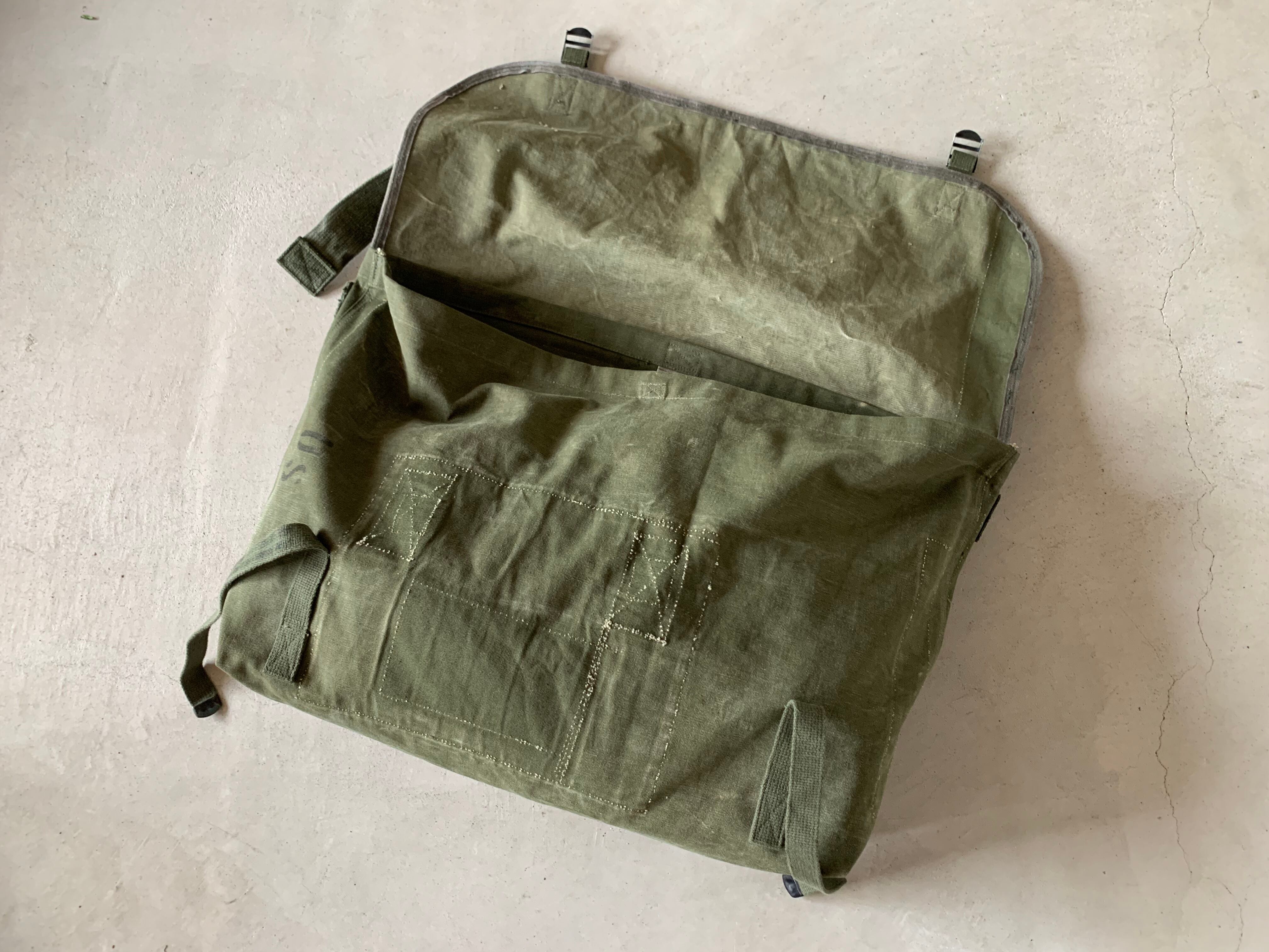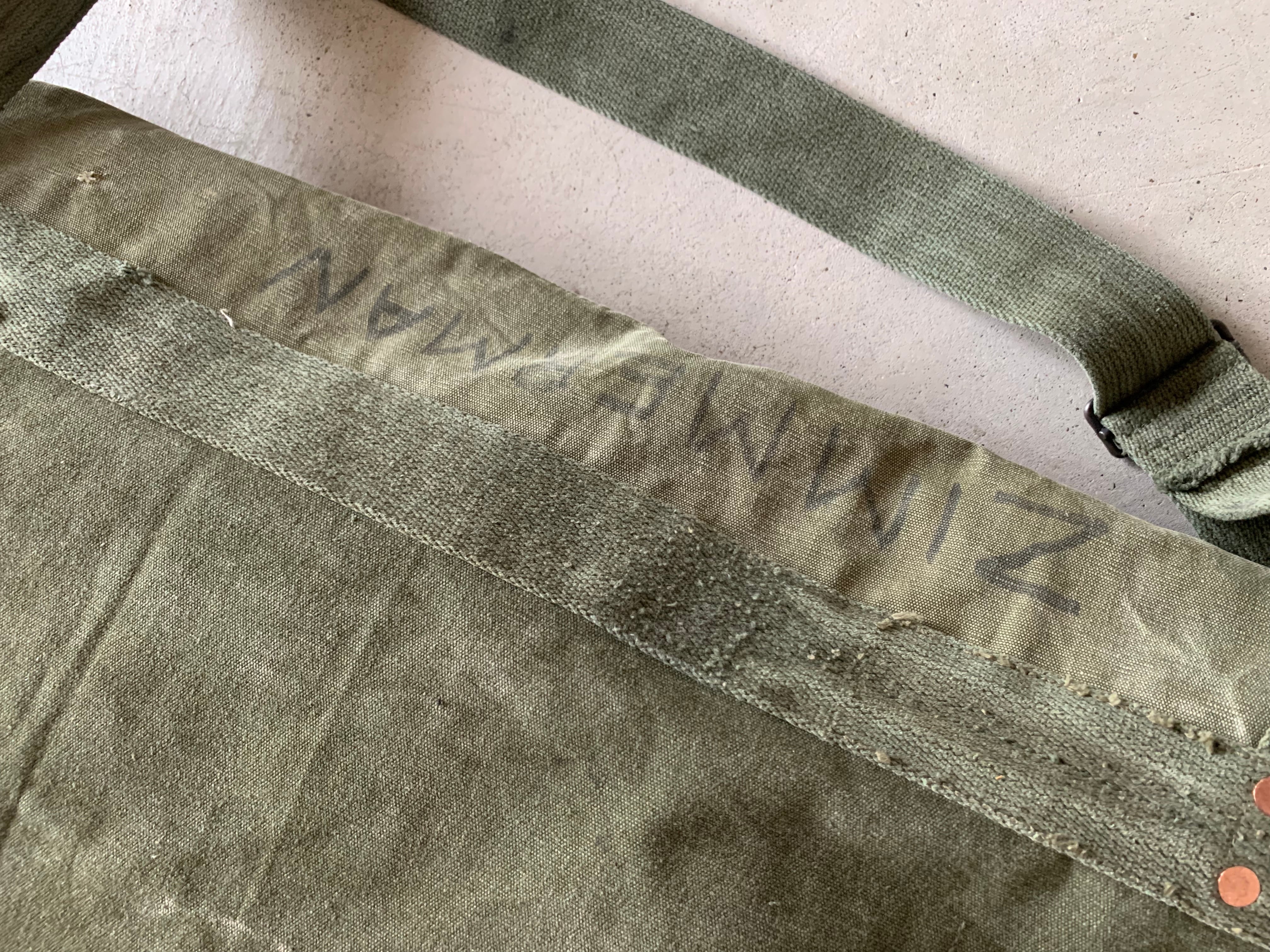 アメリカ軍のヴィンテージミリタリー素材を組み合わせて、かなり大きめのメッセンジャーバッグを作りました。