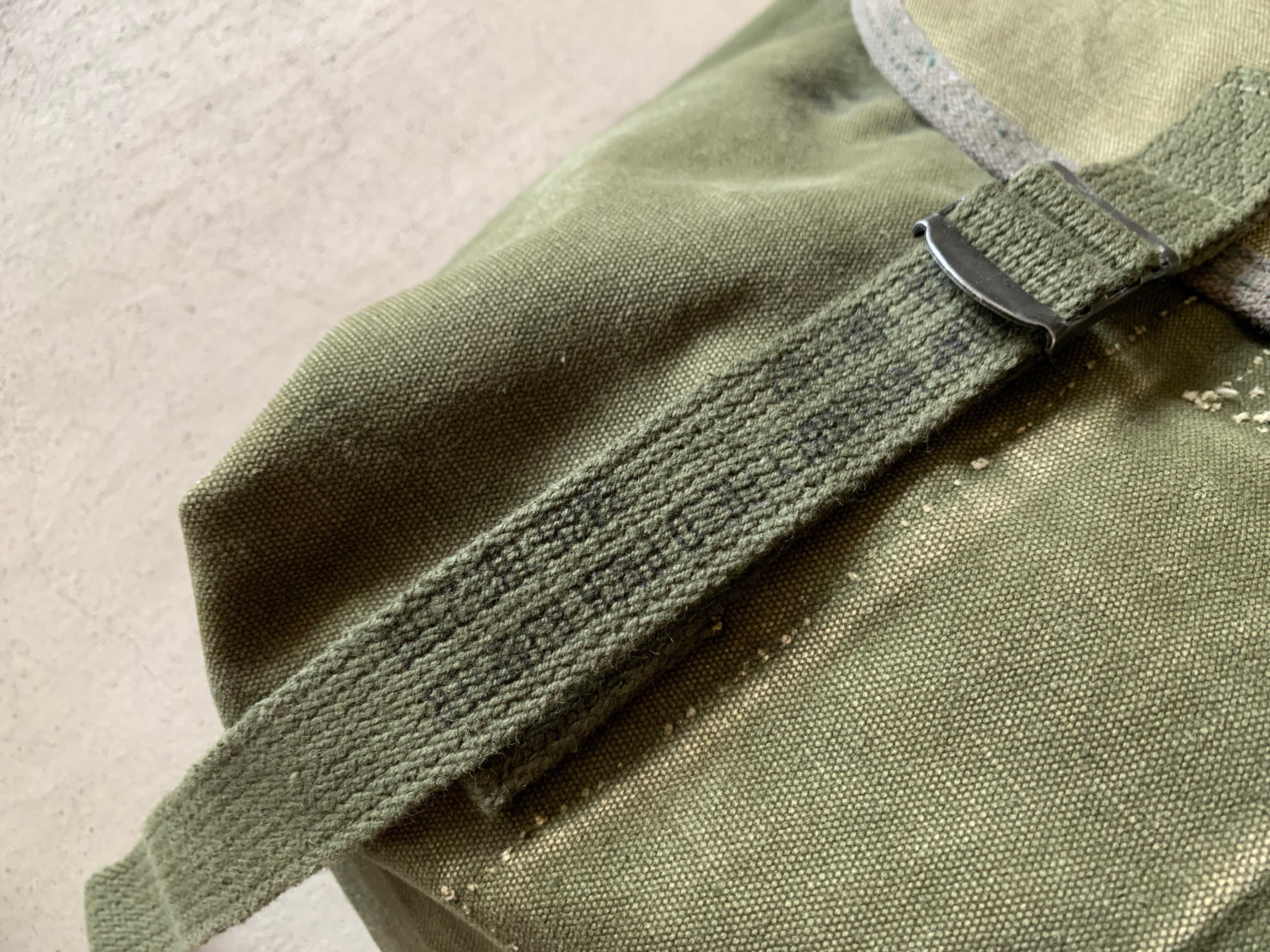 フラップのベルトはアメリカ軍の60年代のもの。ステンシルが入っているのがナイスです。