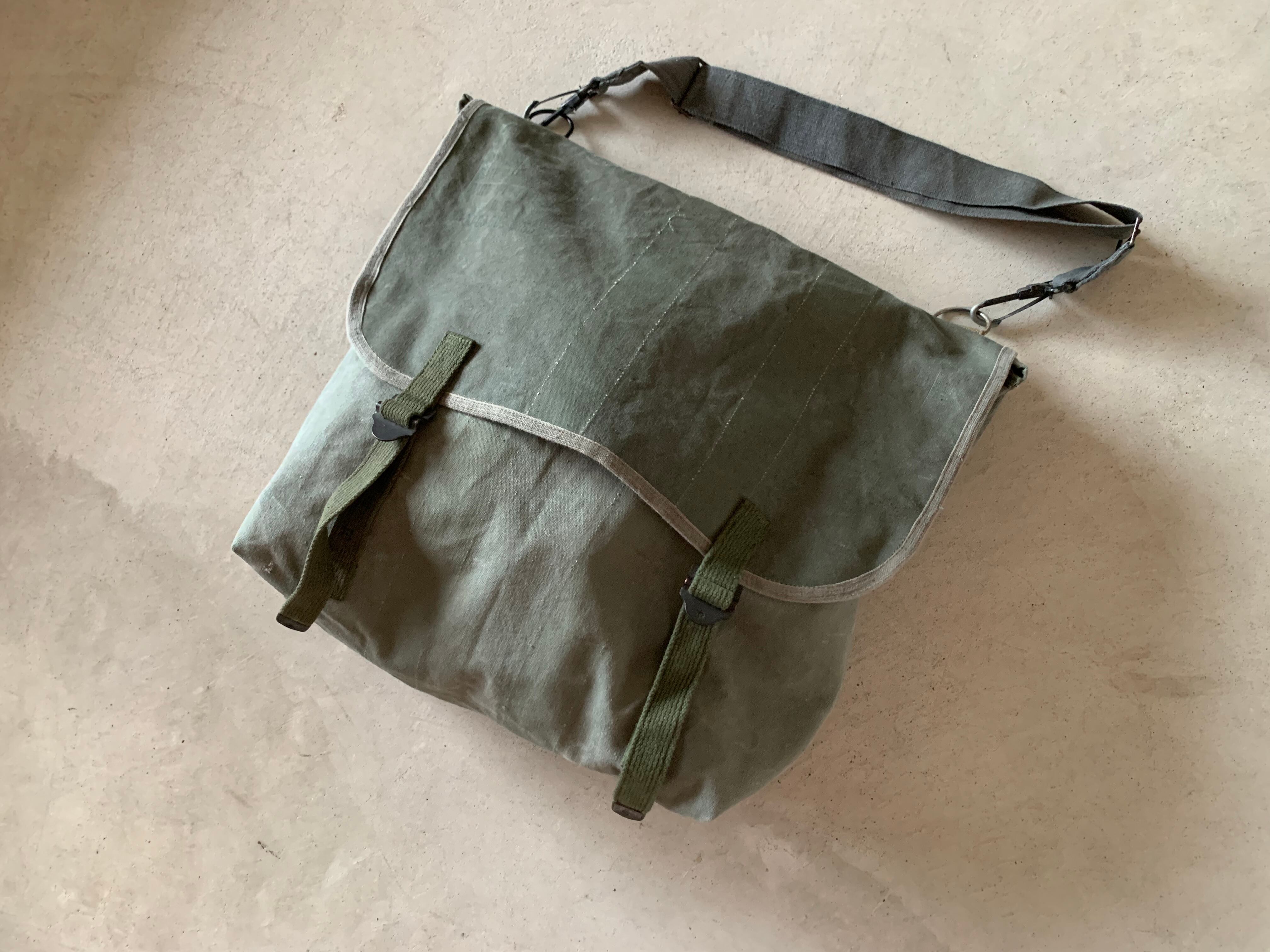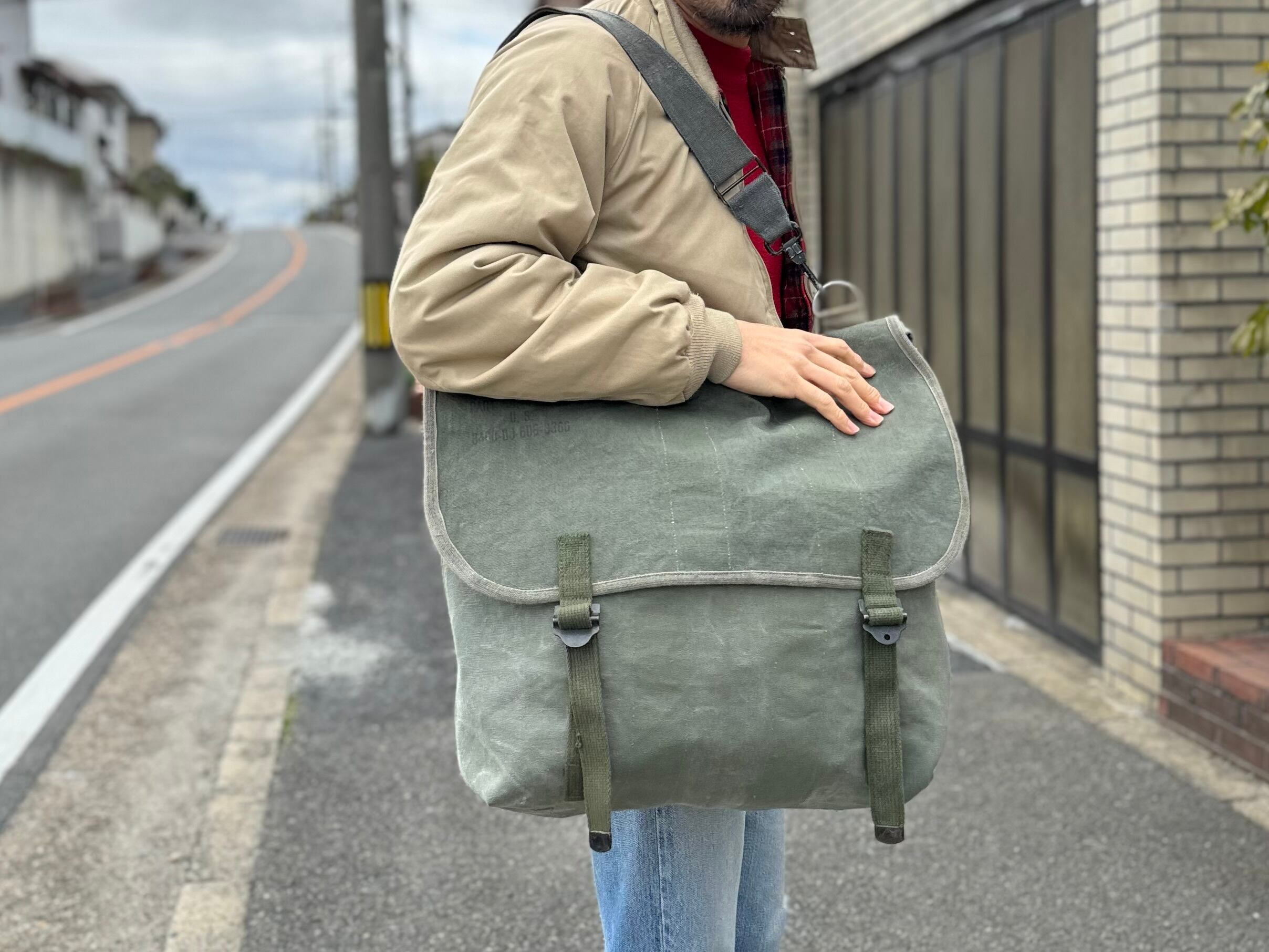 ヴィンテージミリタリー素材を組み合わせて、ショルダーバッグを作りました。