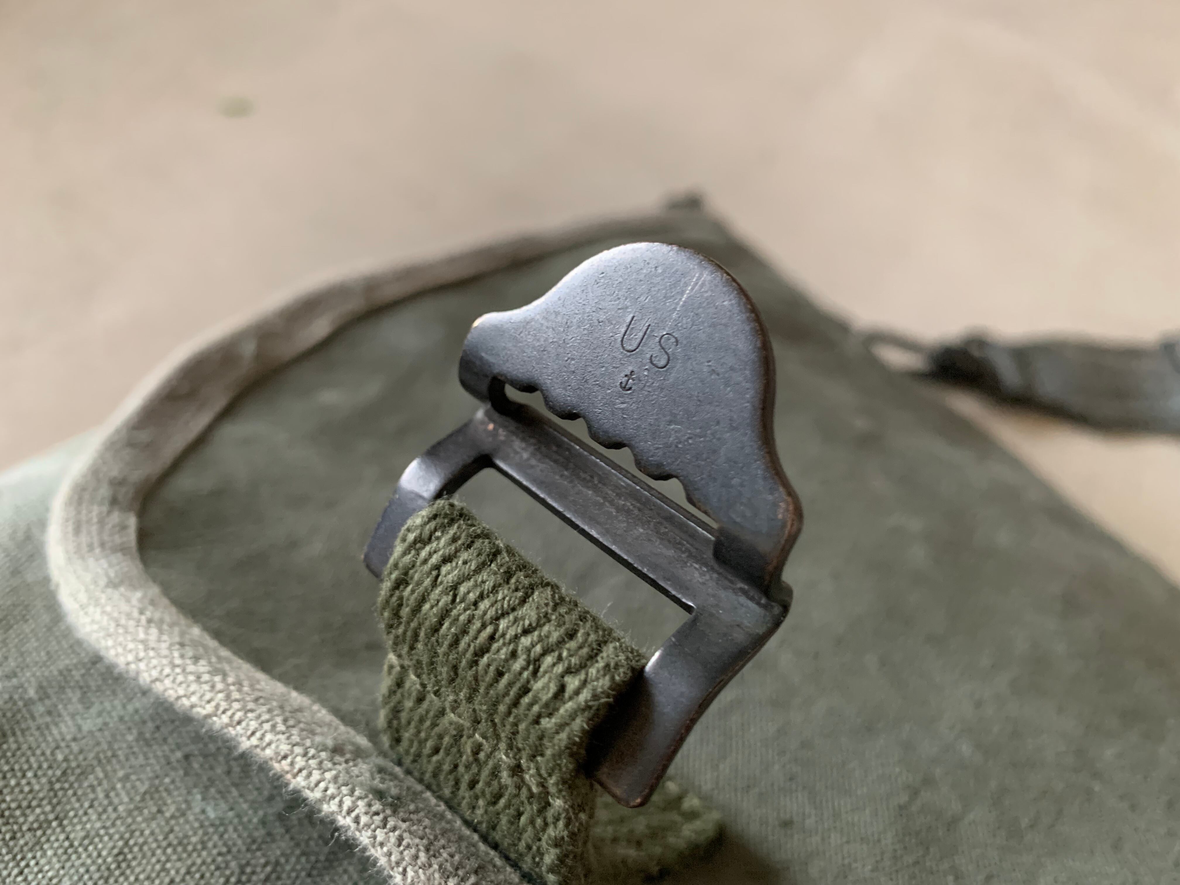 そして、フラップを止めるバックルは50年代のアメリカ軍のバッグから外した物です。バックル裏にはUSとアンカーマークの刻印が。。。これはNorth&Judd社が軍に納入した物かと推測されます。
