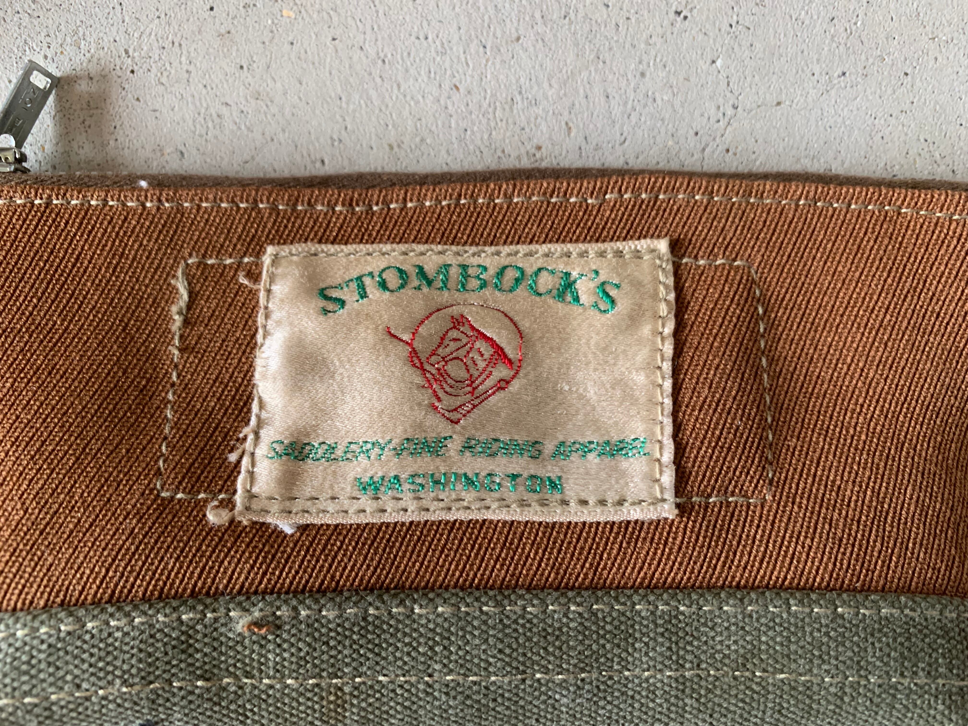 ボディーは50年代のアメリカのアウトドアメーカーのジョッパーズパンツを解体した生地です。パンツについていた2枚のタグをつけました。一つのパンツに2つのメーカーのタグがついていたので、おそらくコラボしたのかなと思われます。
