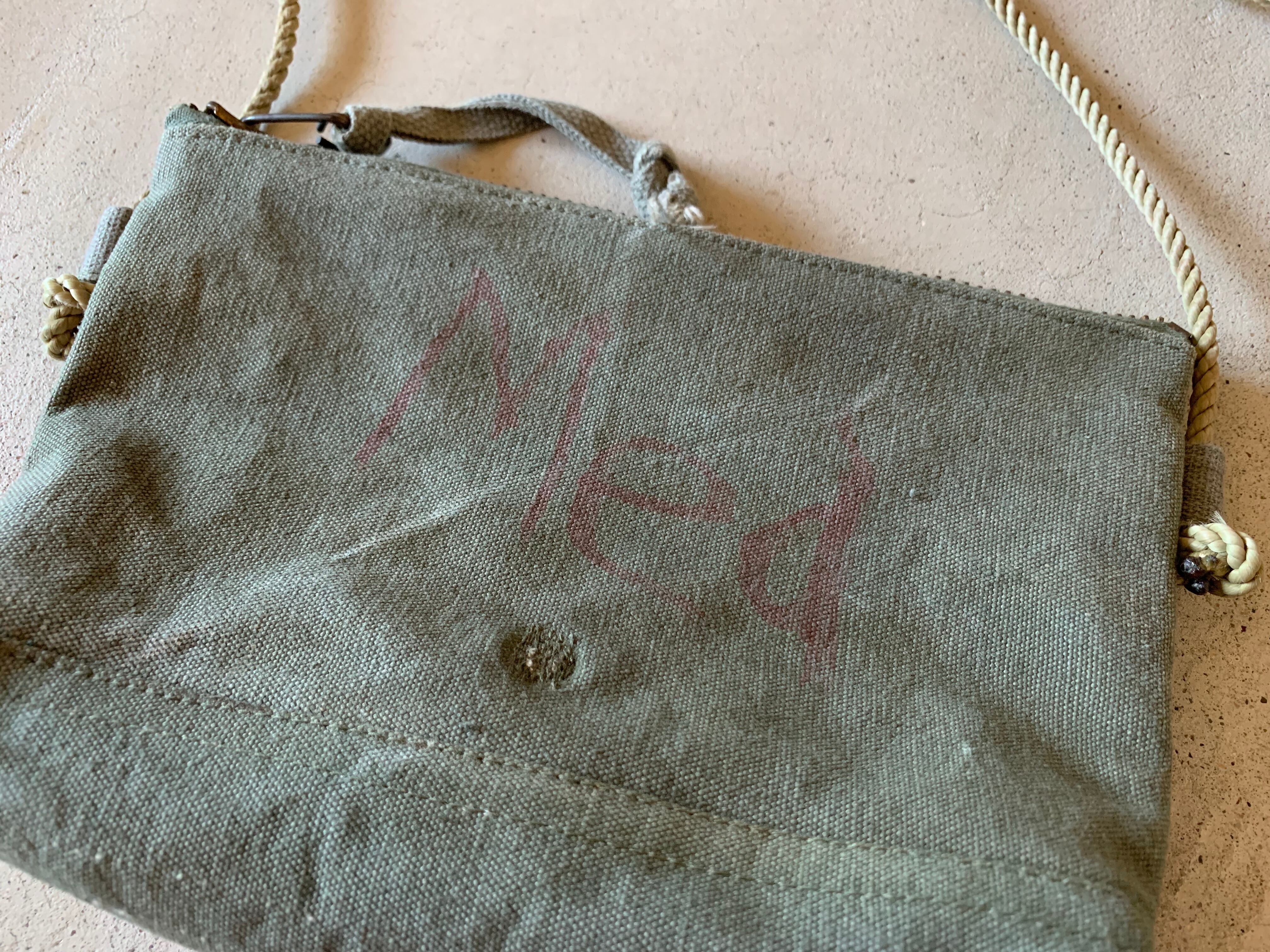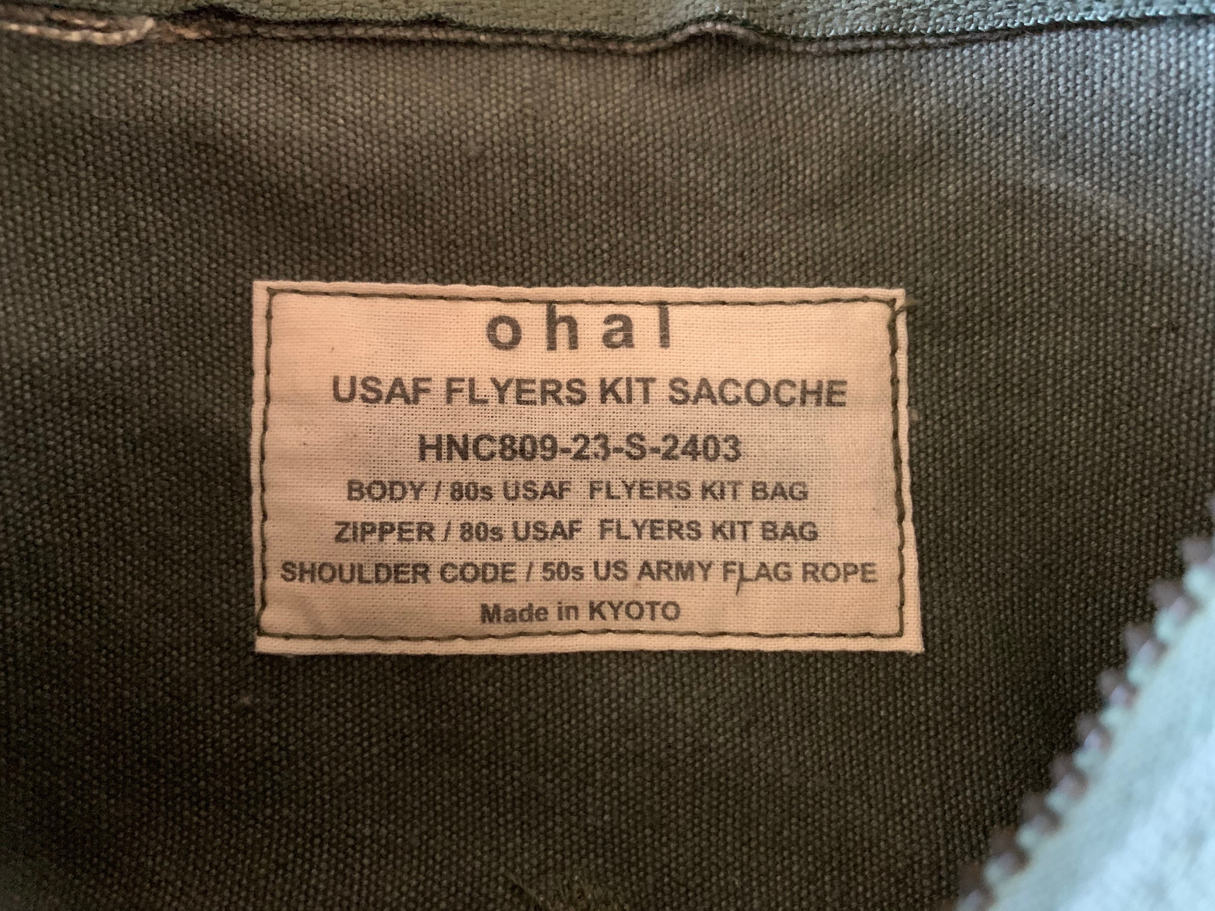 ボディーは80年代のフライヤーズキットバッグのコットンキャンバス生地。手書きで書かれた文字が良い味を醸し出しています。