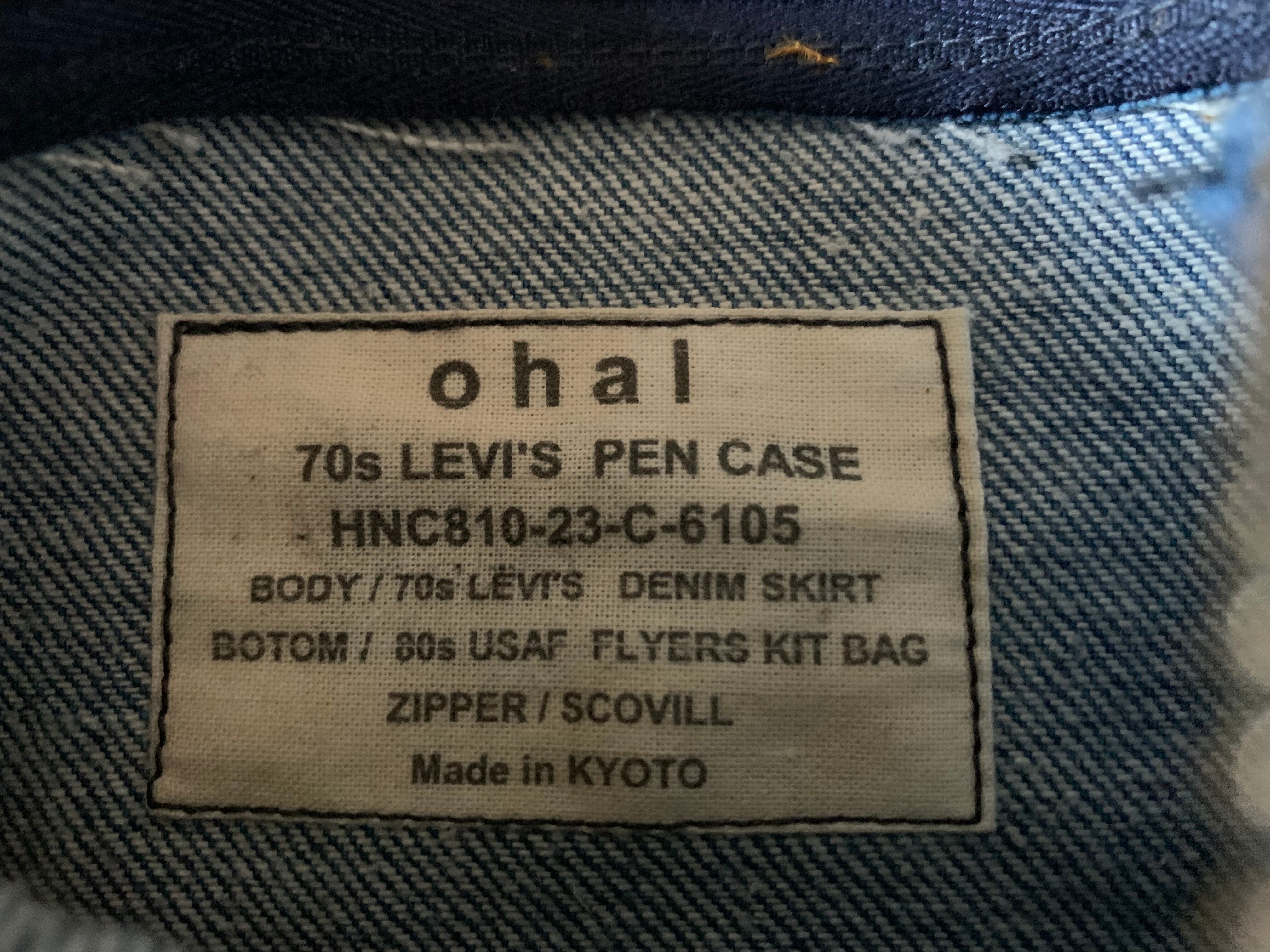 ボディーは70年代のリーバイスのデニムスカートを解体した生地です。前面にスカートについていたLEVI'Sのタグをつけました。