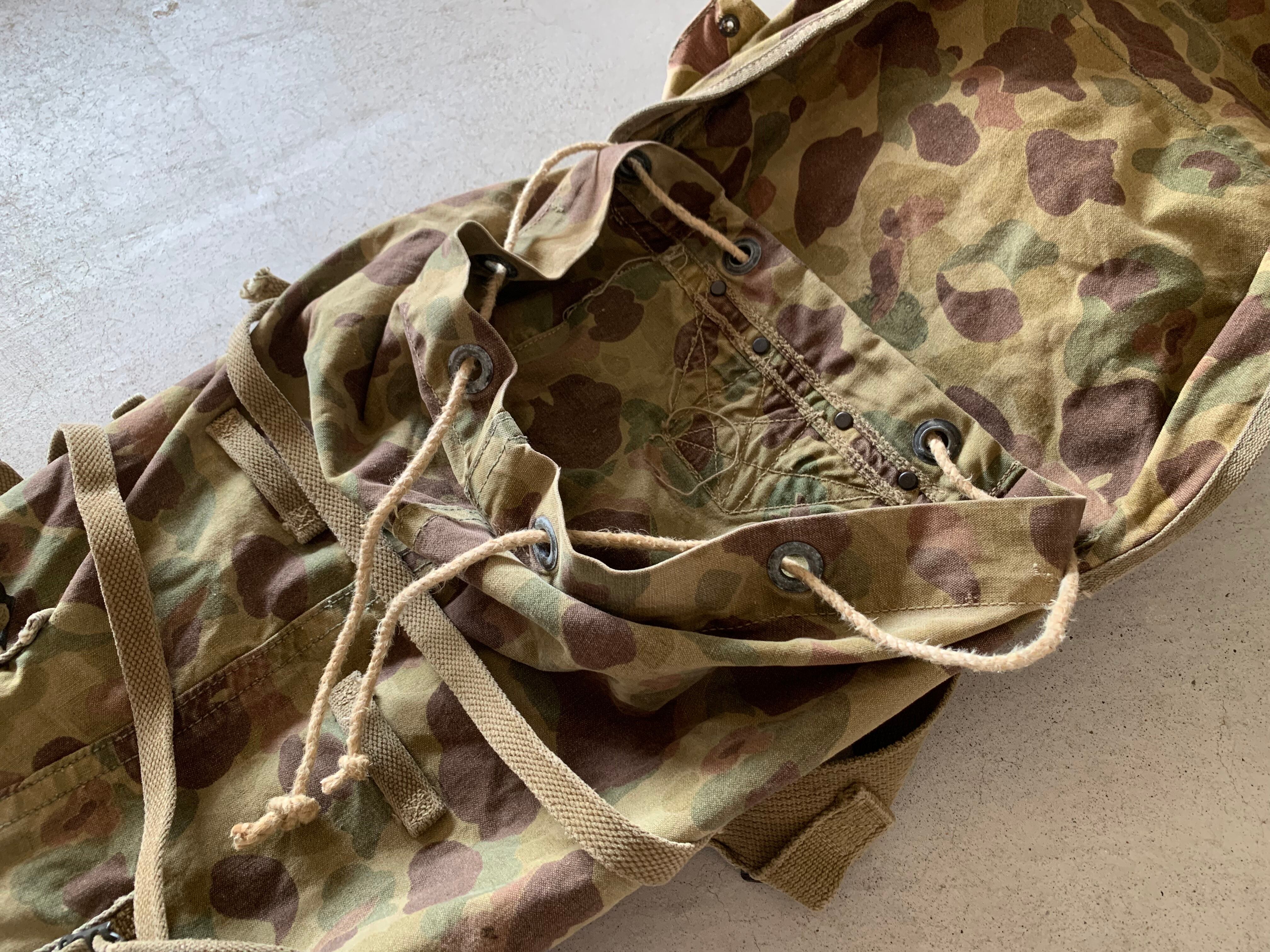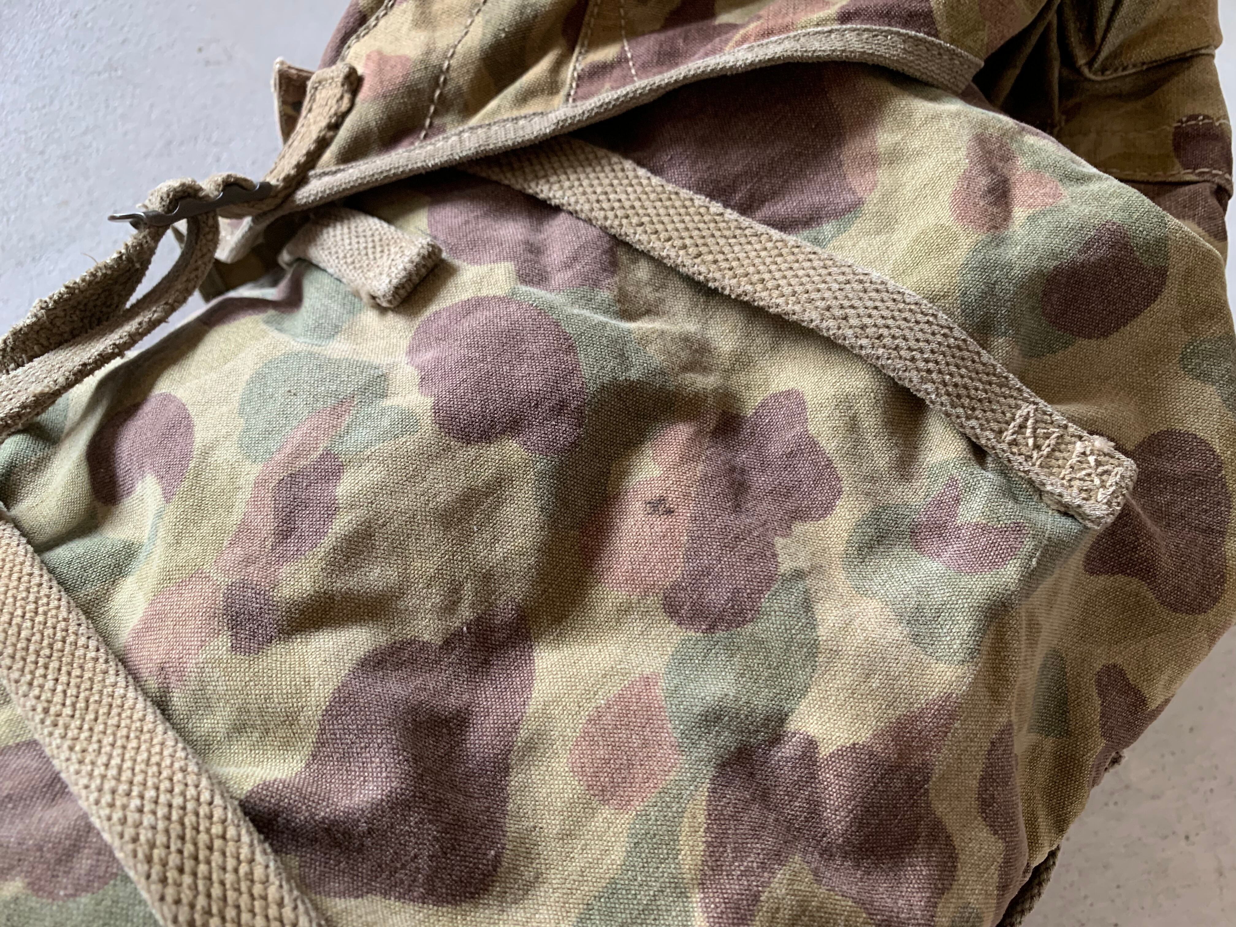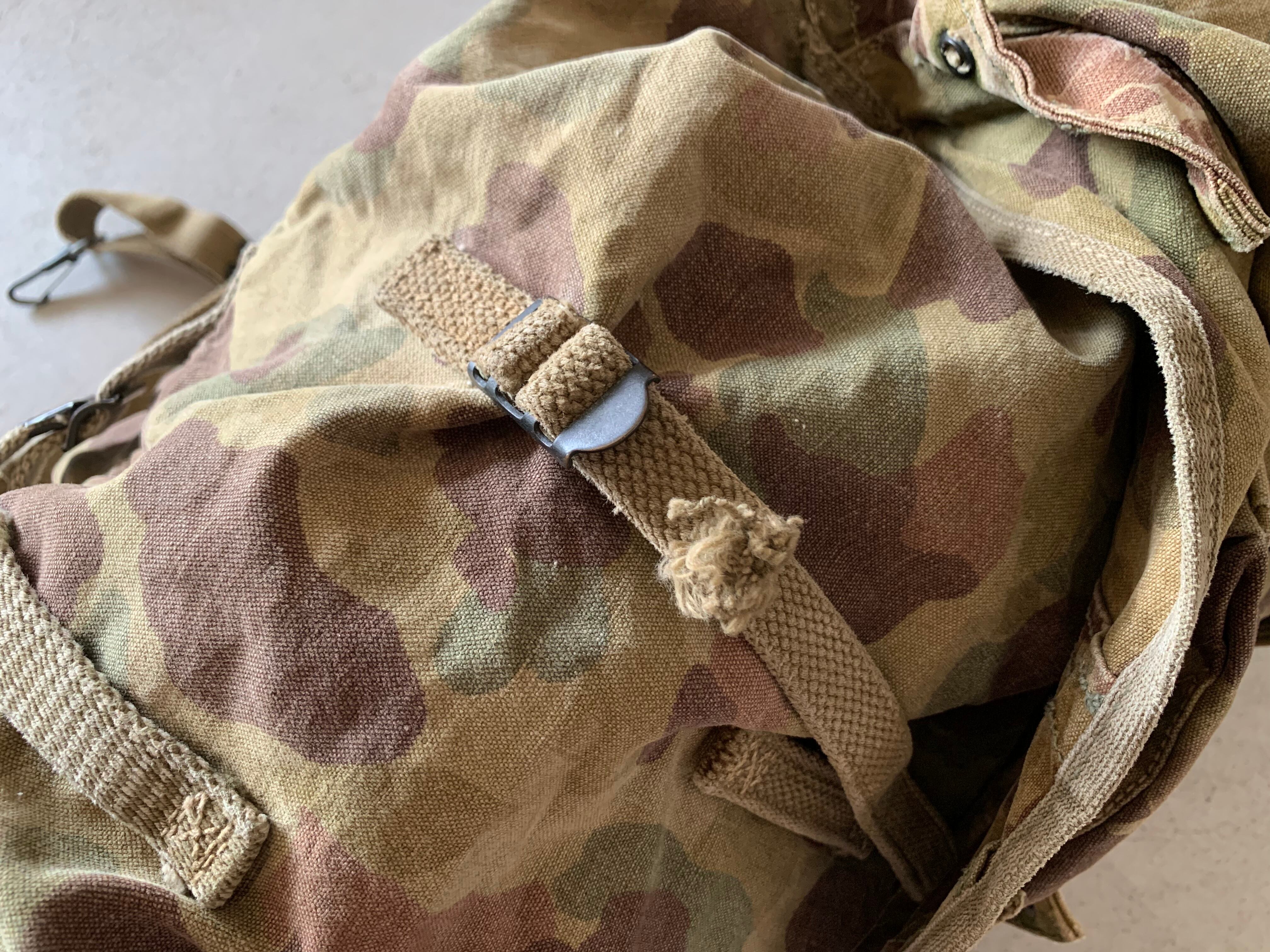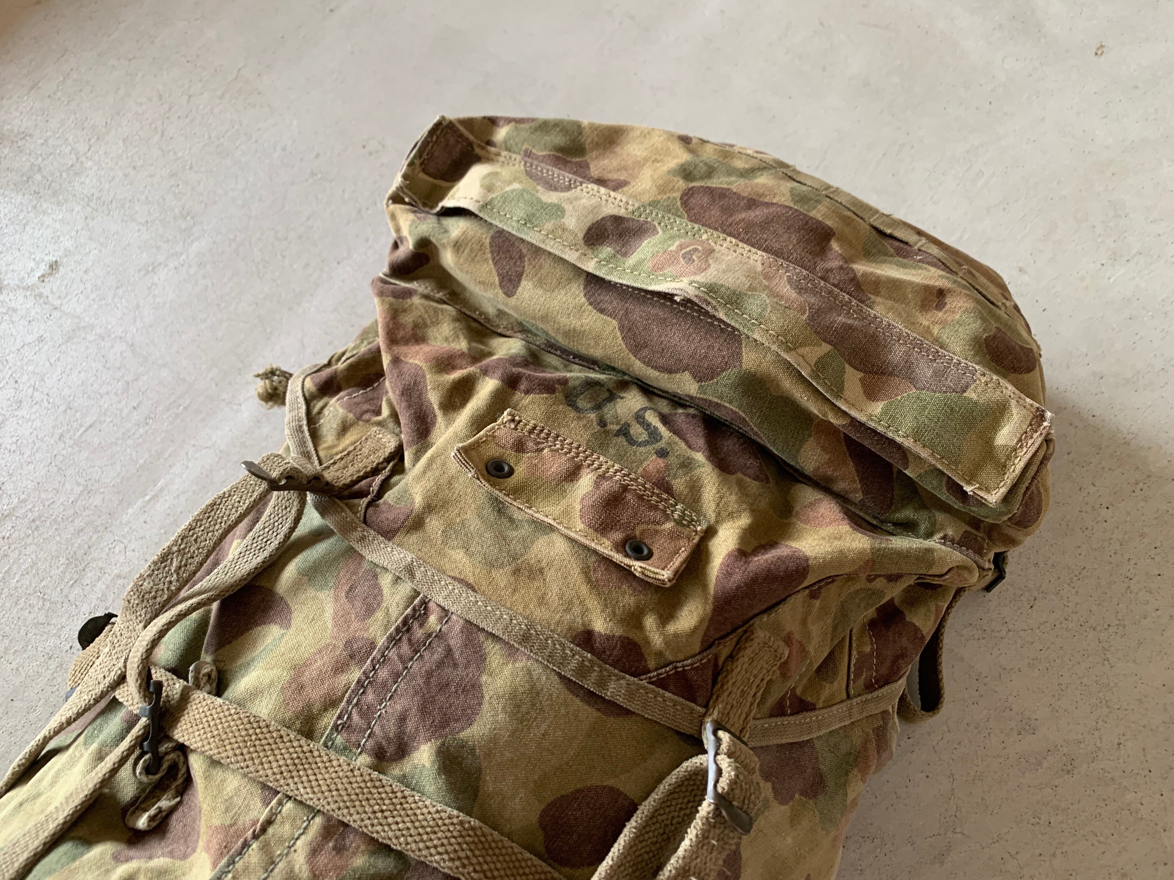 1940年代、第二次世界大戦時に採用されていた、ダックハンターカモ柄のM-1943 ジャングルパックです。