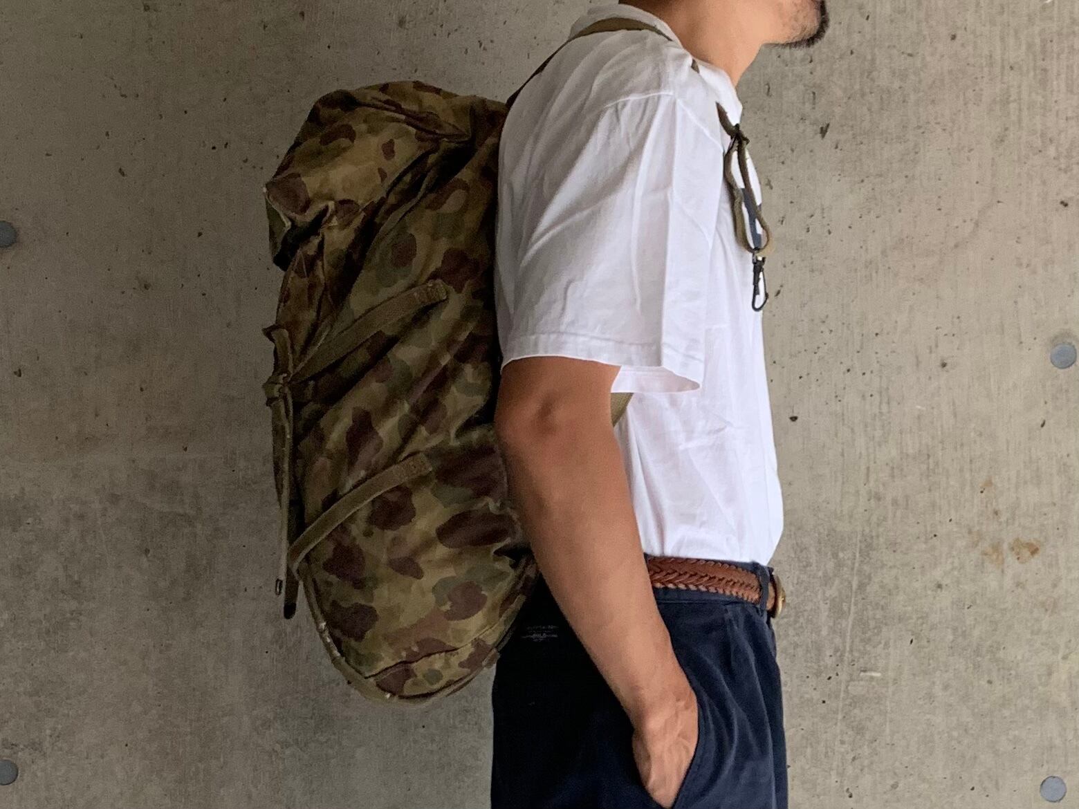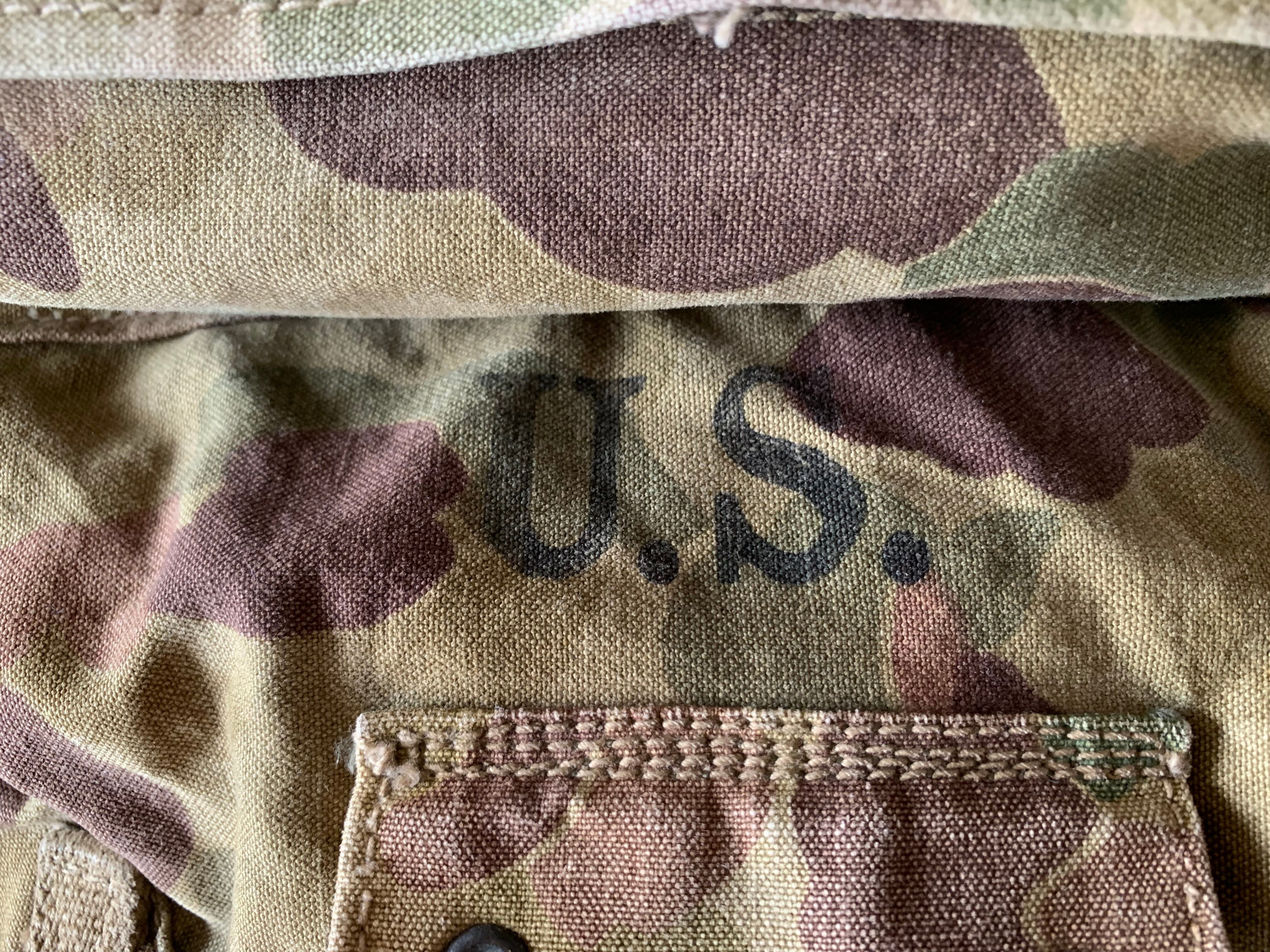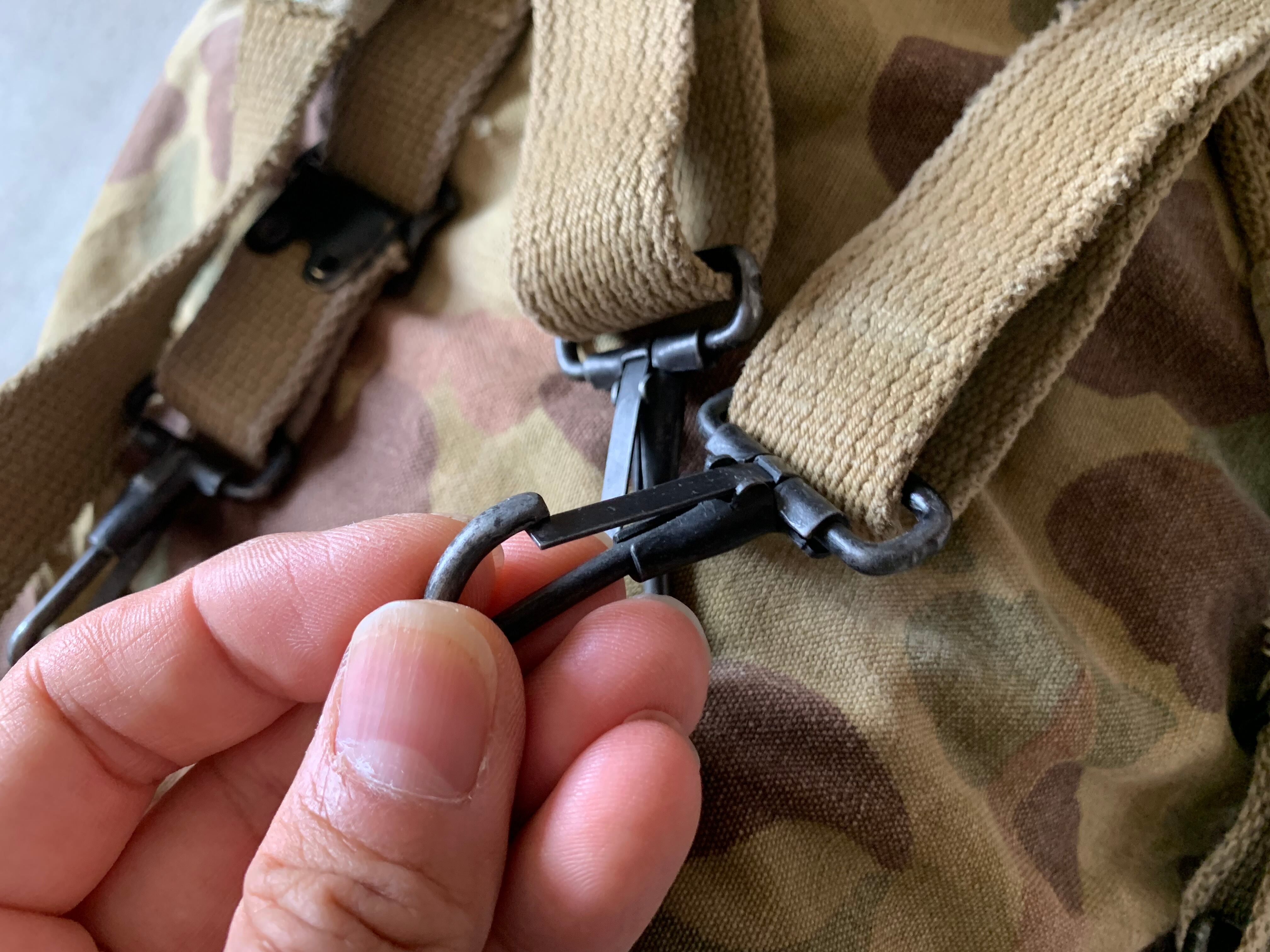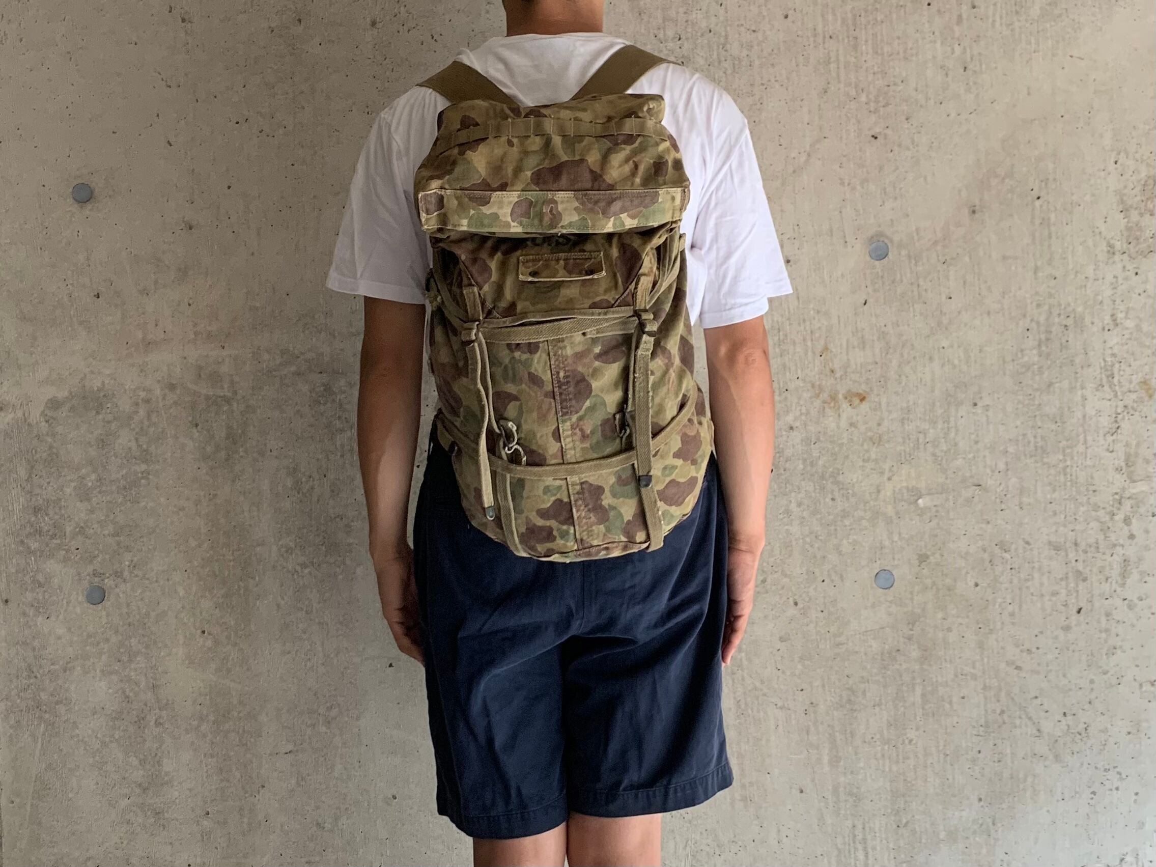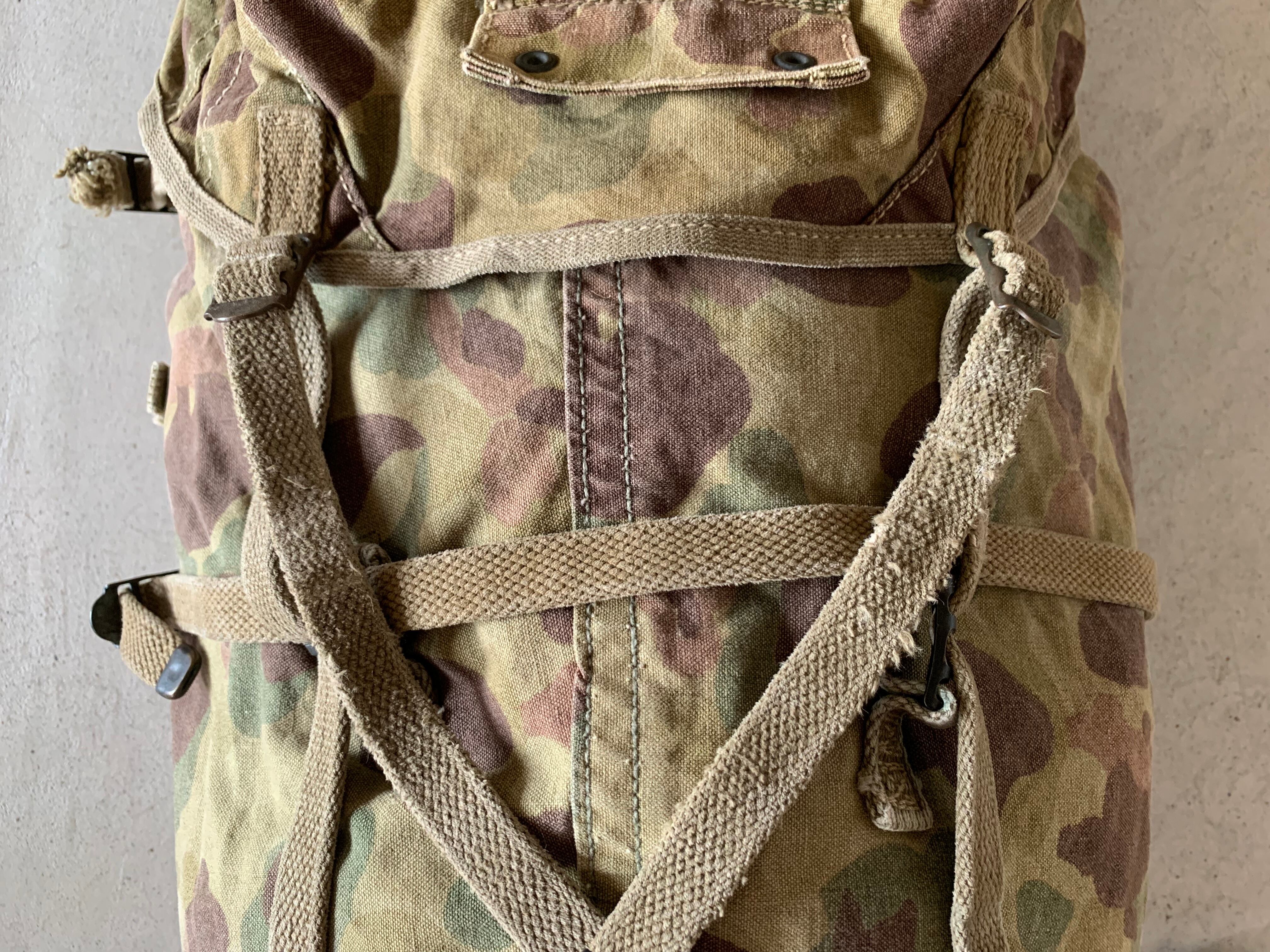 1940年代、第二次世界大戦時に採用されていた、ダックハンターカモ柄のM-1943 ジャングルパックです。