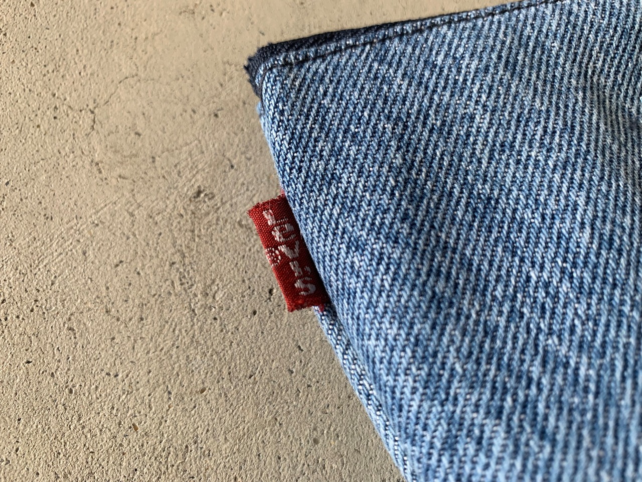 ボディーは90年代、アメリカ製のリーバイスのデニムパンツを解体した生地です。前面には“Made in USA"の記載がある、内タグをつけています。サイドにはリーバイスの赤タブをつけました。