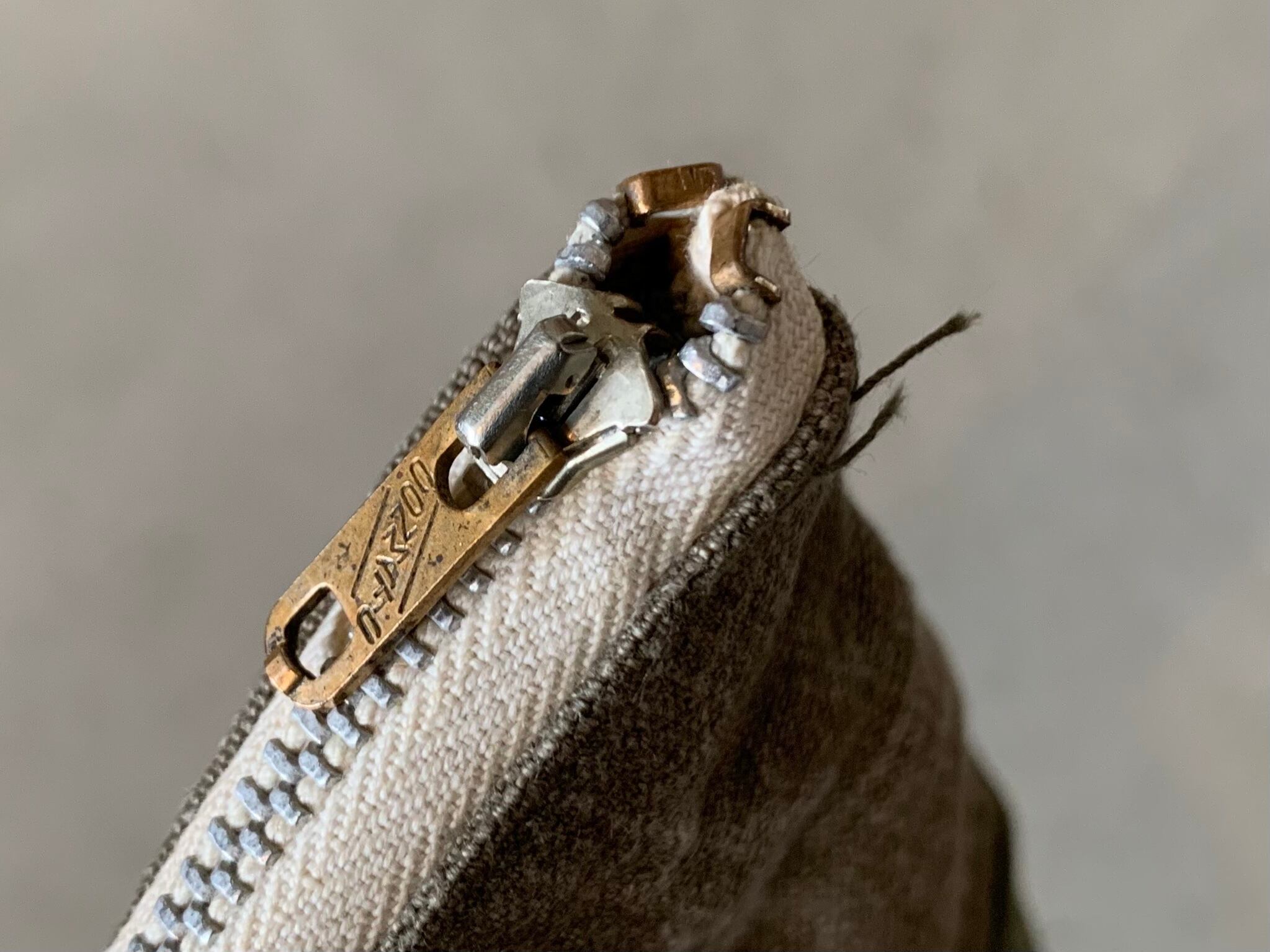 ジッパーは、40年代のコの字留めジッパー『CONMATIC』です。