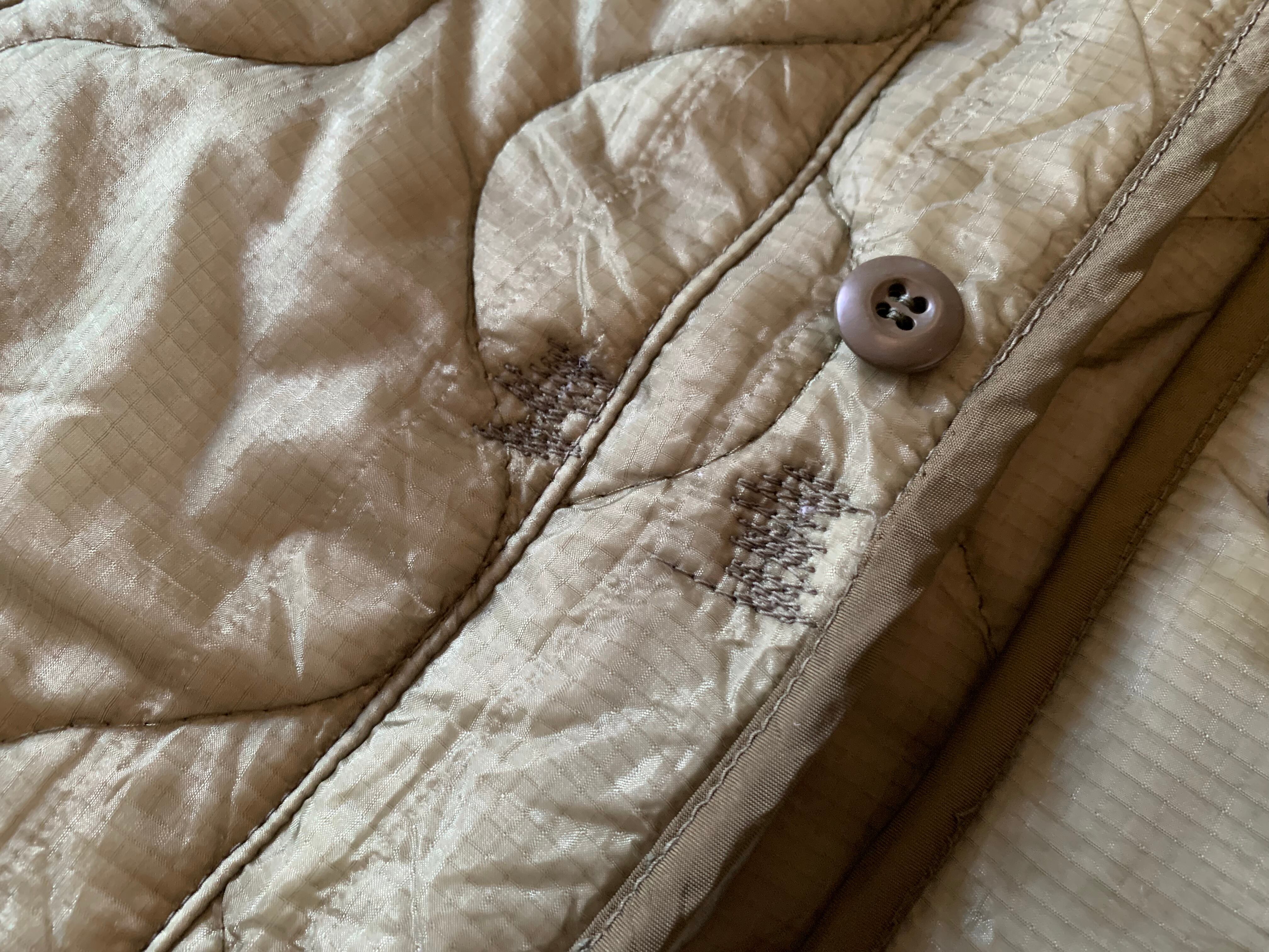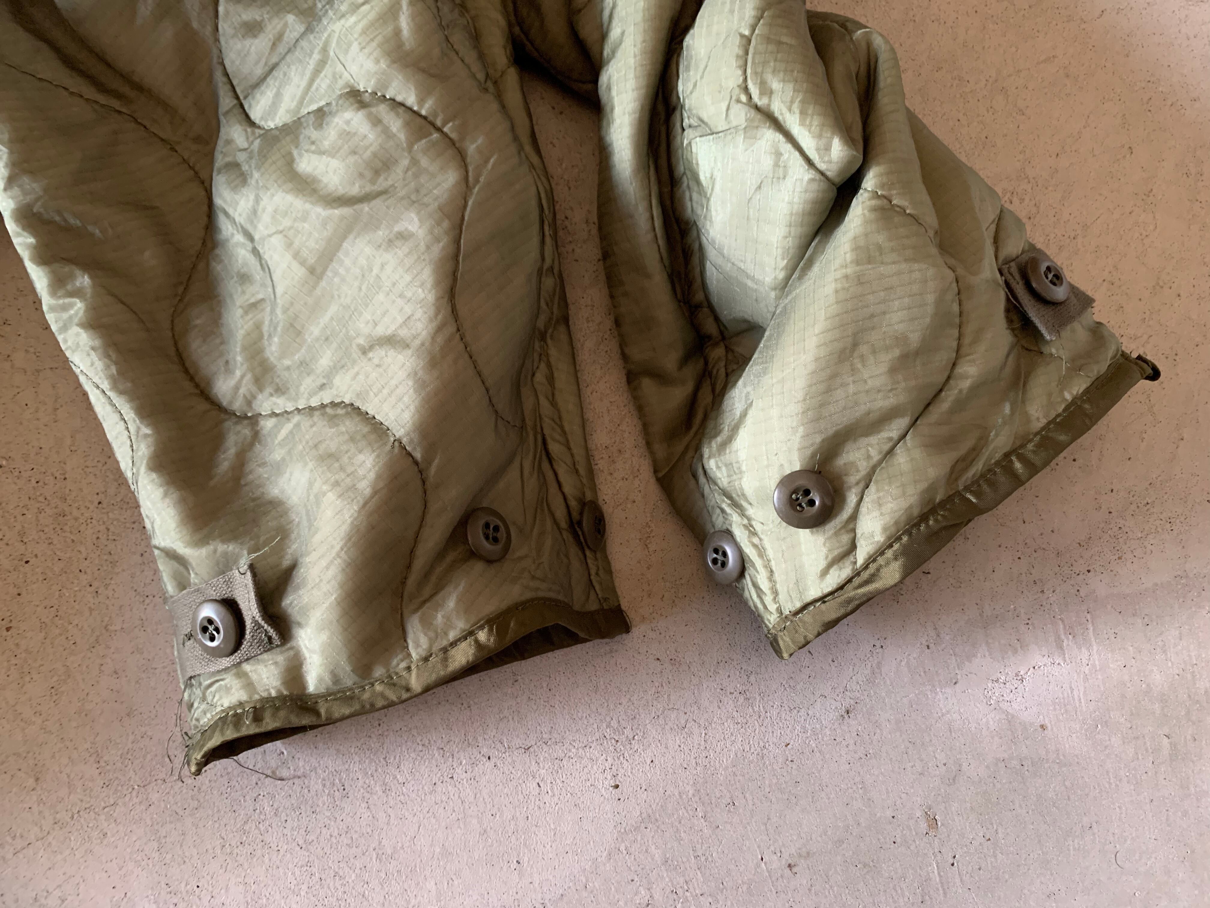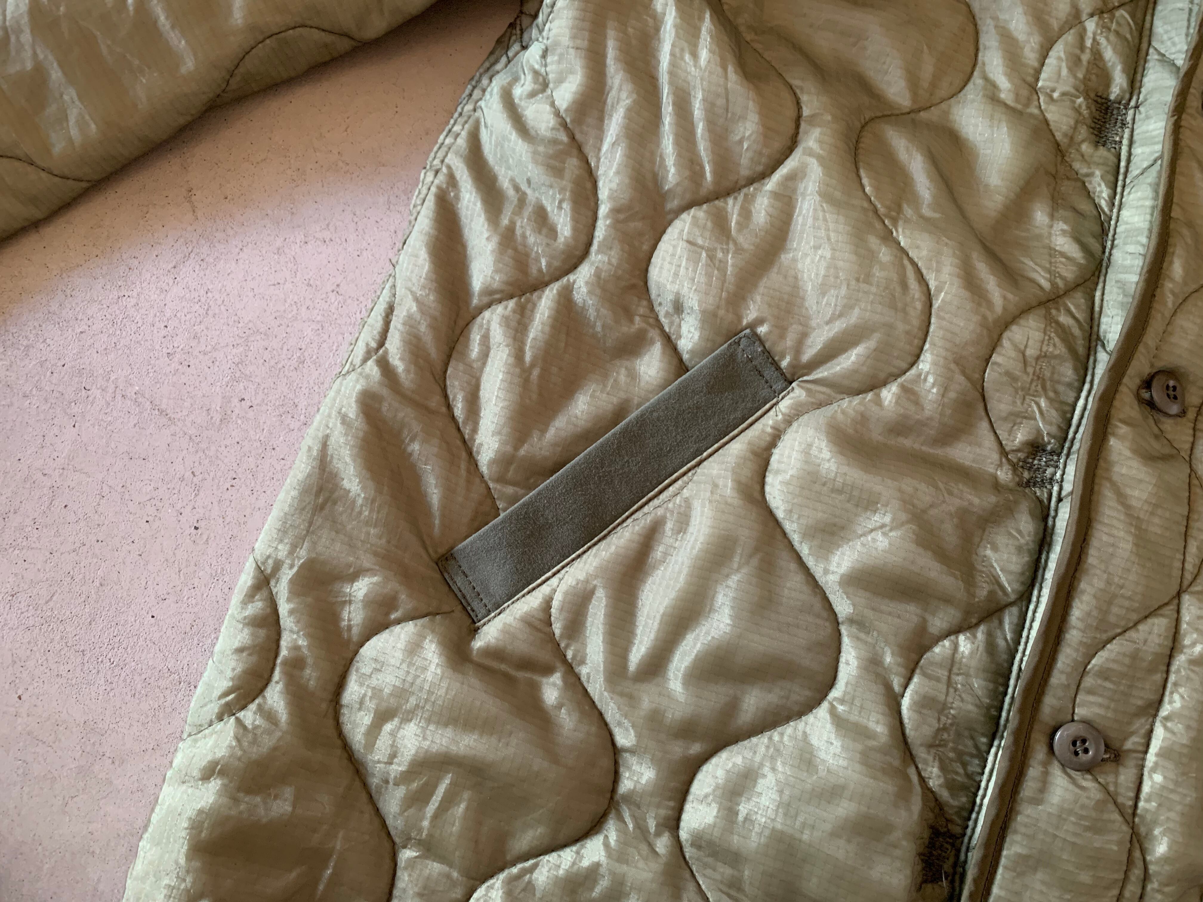ボディーは米軍の、70年代頃に納入された、M-65 Field Parkaの中に取り付ける、キルティングライナー。