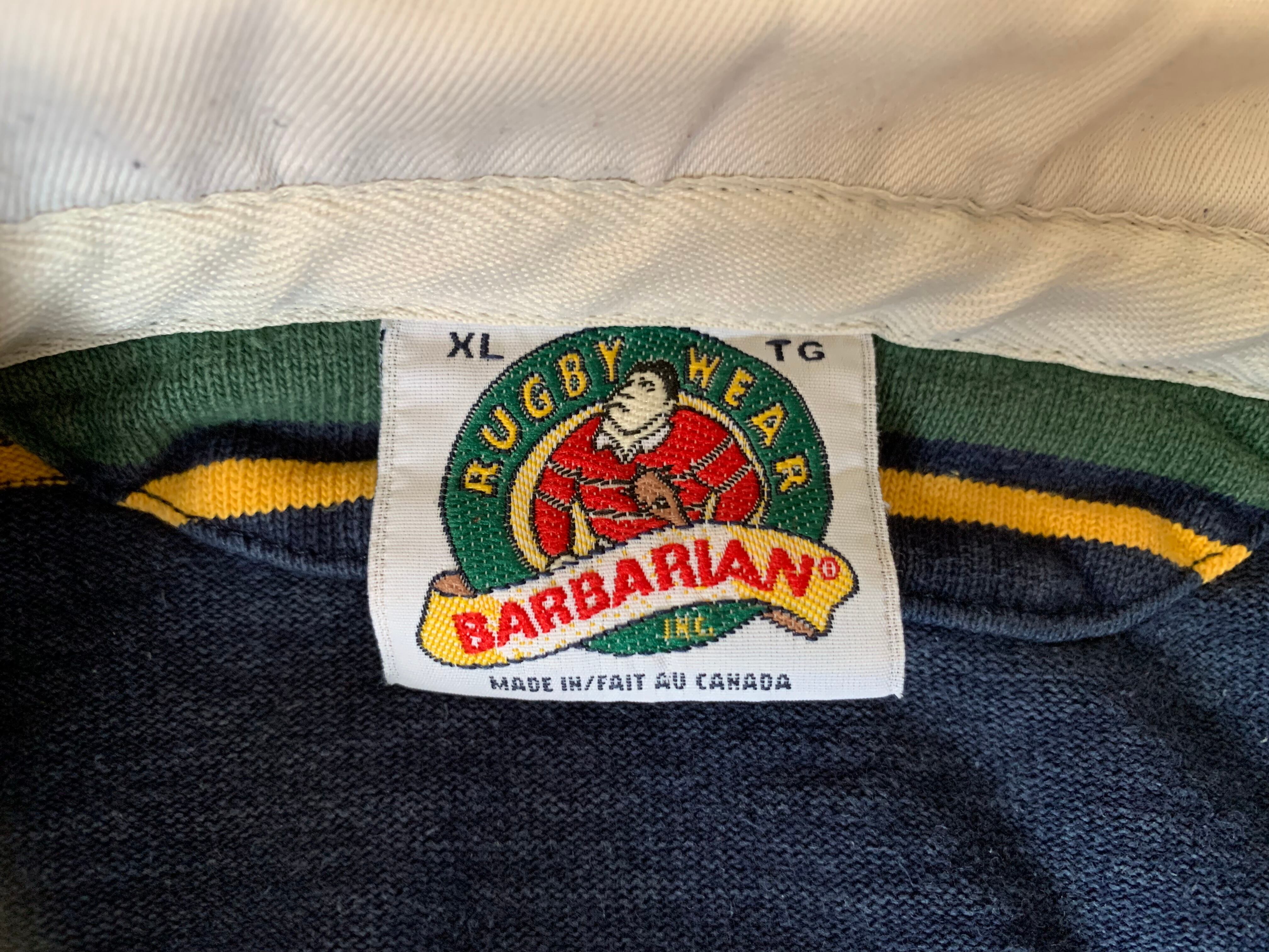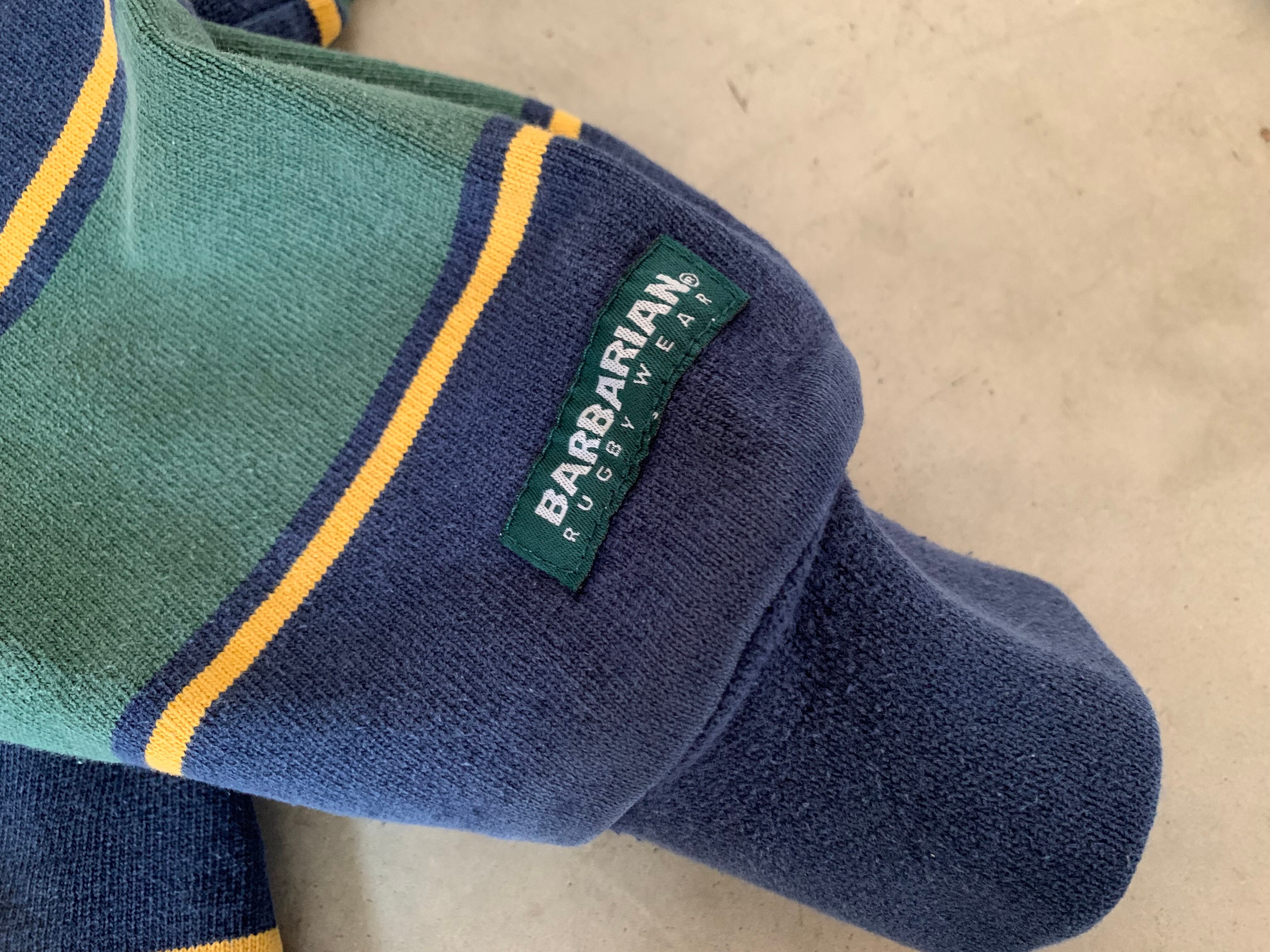 日本で流通していた物ではない、海外物のバーバリアンのラガーシャツで、このような柄、状態の物を見つけるのは、なかなか難しいかと。。。