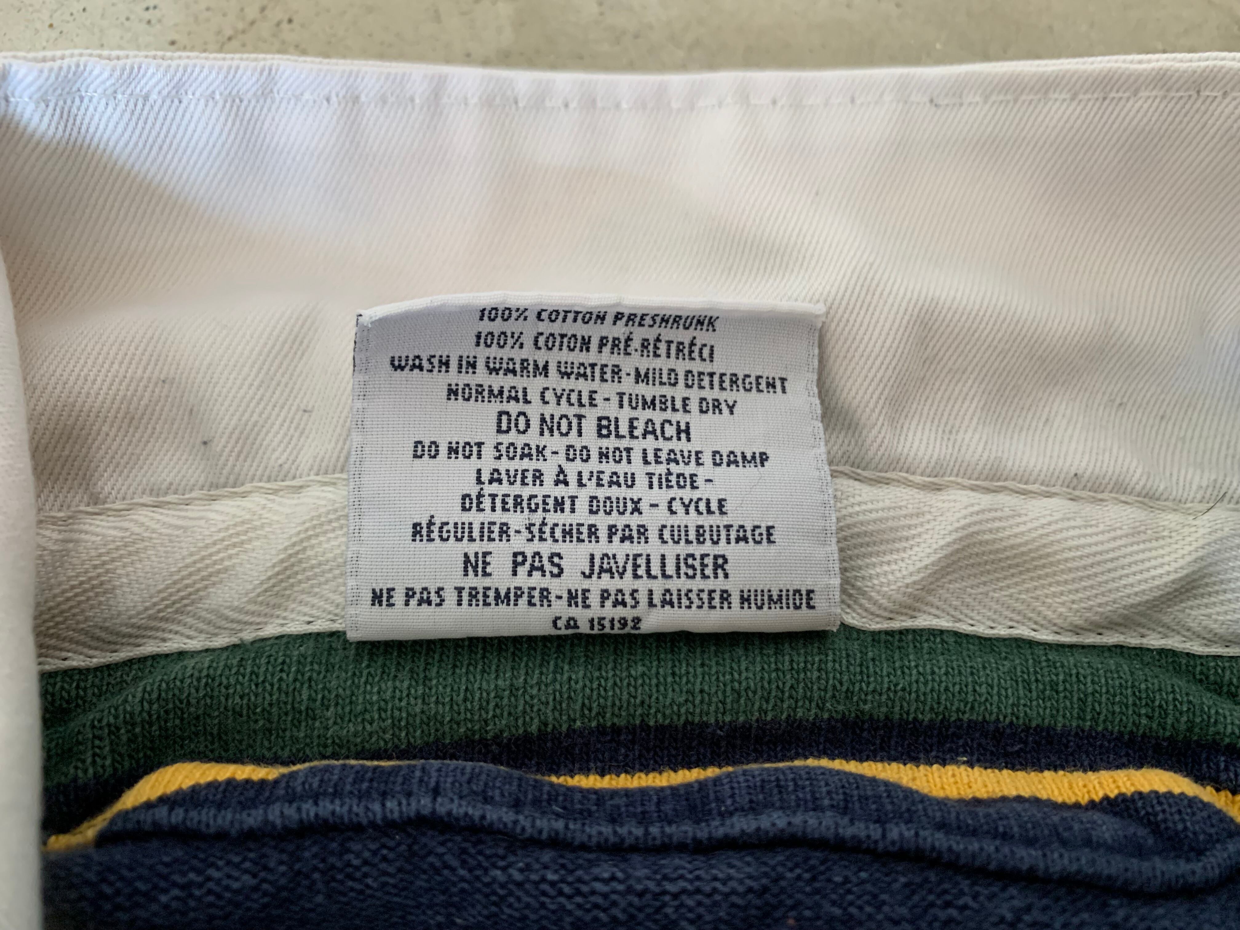 年代はそこまで古くはないですが、胸にチーム刺繍などもなく、合わせやすい落ち着いたボーダー柄。サイズもXLで適度なゆったり感。中にシャツなどのレイヤードも楽しめます。
